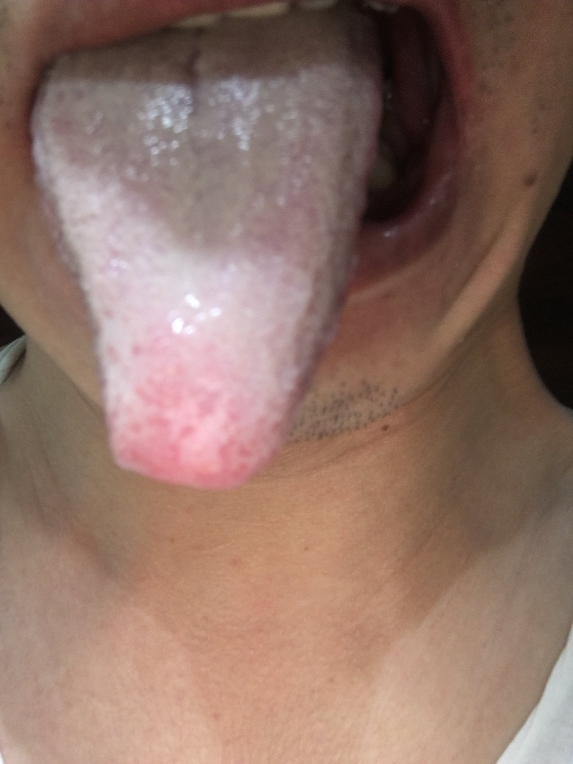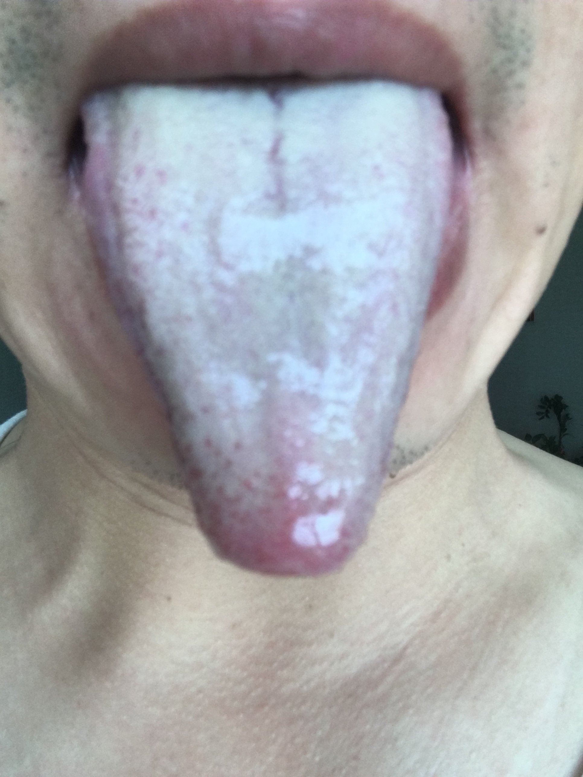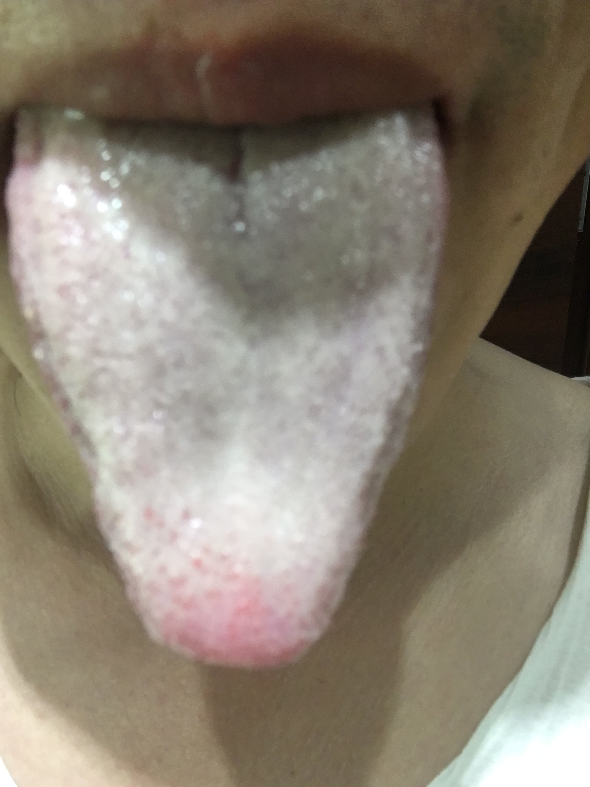 无感冒,无发热发冷。中医诊断舌红苔厚白,脉细,湿气严重。