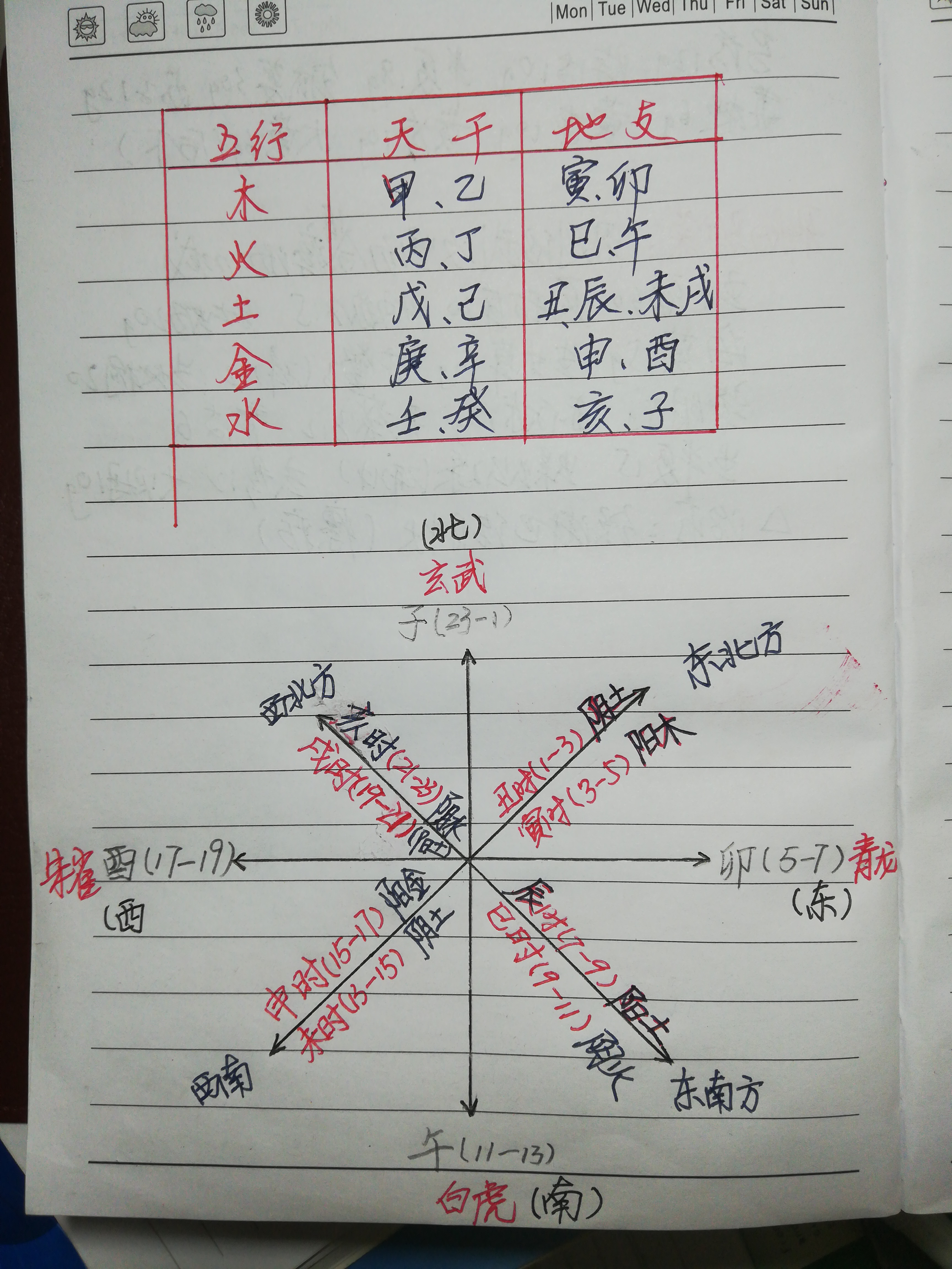 古人研究认为:7一9点为辰时,足阳明胃经运行之时,为阳土,对应东南方;13一15点为未时,手太阳小肠经运行之时,为阴土,对应西南方;戍时19一21点,为手厥阴心包经运行之时,为阳土,对应西北方。