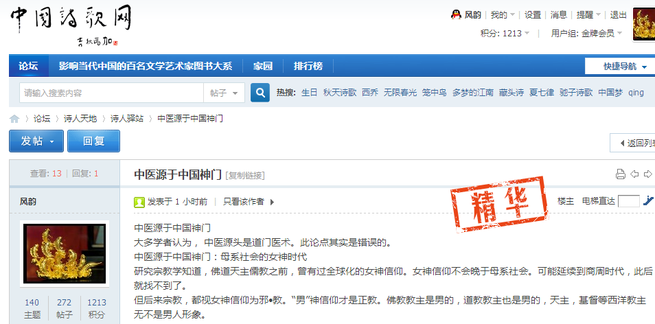 不可否认,道教人确实发展了中医药。比如辅行决,主是道士所著。孙思淼还叫孙真人呢。道教爱把有成就的道士叫真人。古代也有人把张仲景叫张真人的。这样,中医就深深地打上了道教的烙印了。以至于后人认为中医源于道门或道教,似乎顺理成章了。风韵2018-8-3