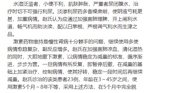 麻黄有六大功效:“发汗解表,利水消肿,宣肺透邪,止咳平喘,温经通阳,活血化瘀”,这些正是慢性肾病治疗的大方向,只是慢性肾病不适合用这么峻猛的药,宜缓疏通渗,赵绍琴教授的肾病验案的处方就可以看出这个特点。