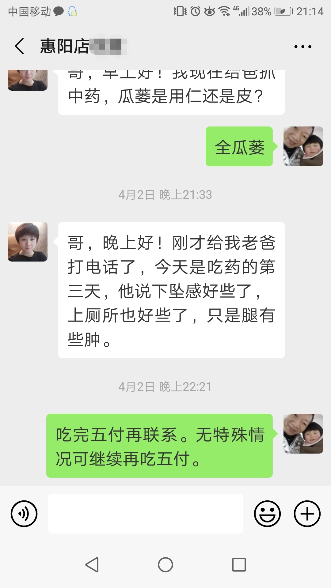 半月前,到惠州的惠阳去了一趟,老妹朋友的父亲疾病缠身一年多,邀我帮看看。做为医生看病正常不过,但不能抵损人家吧。心里这样告诫自己。病人慢性痛苦面容,色晦暗,弯腰驼背叉开腿走路,不数步而痛难,续坐,歪歪扭扭的,坐正了亦痛。近而闻及口臭异常,舌暗紫有齿痕,苔厚腻,脉虚涩滑。述腰痛腿痛数年,经针灸推拿而效不彰,继而下腹坠胀疼痛,诊为“疝气”行手术(具体不明)症反渐加,双下肢肿胀。其存欲死之心。择督脉、足太阳行肘尖推拿点按弹拔等手法后,症状稍缓。但终因年老体弱且现代检查不全,放弃复位手法治疗。遂择中药(在其女手机上书写后发与我)并嘱之行导引之术。内伤为病,虚盛者,补虚为先,兼以温通,三付稍效,不更方共服十付,效彰。加强祛湿化瘀之力,减山茱萸量,加牛膝苍术。
