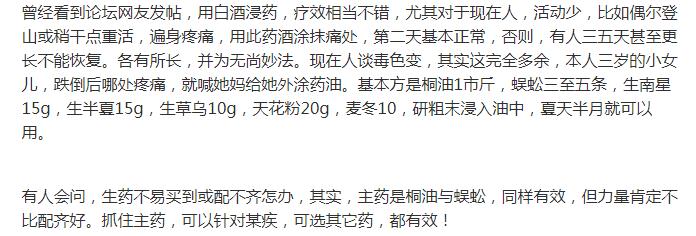 自己经常要电焊,有时候一不小心,就会给烫伤。廖老师的万金油自己也用了五六次了,每次烫伤后有时会起泡查上廖老师的万金油,几分钟后就不痛了。为什么这万金油疗效那么好呢?最后还谢谢廖老师,无私献出那么好的方子造福网友