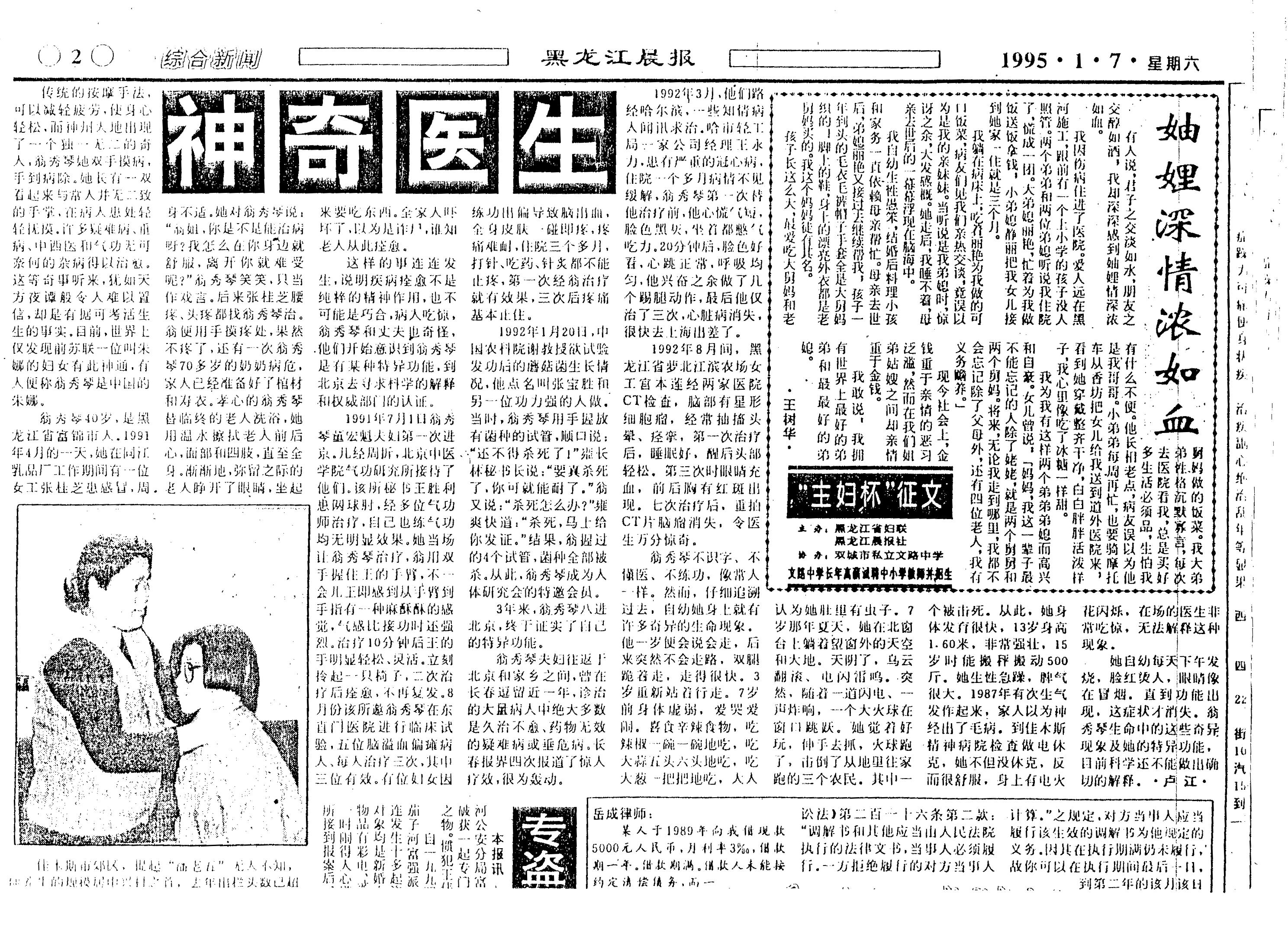 “仅此一例”的“不依靠任何常规的医疗手段,仅凭人体特异能量对病人进行治疗的特异治疗功能”翁秀琴;绝无仅有的从其母翁秀琴遗传相同功能的董强、董艳!