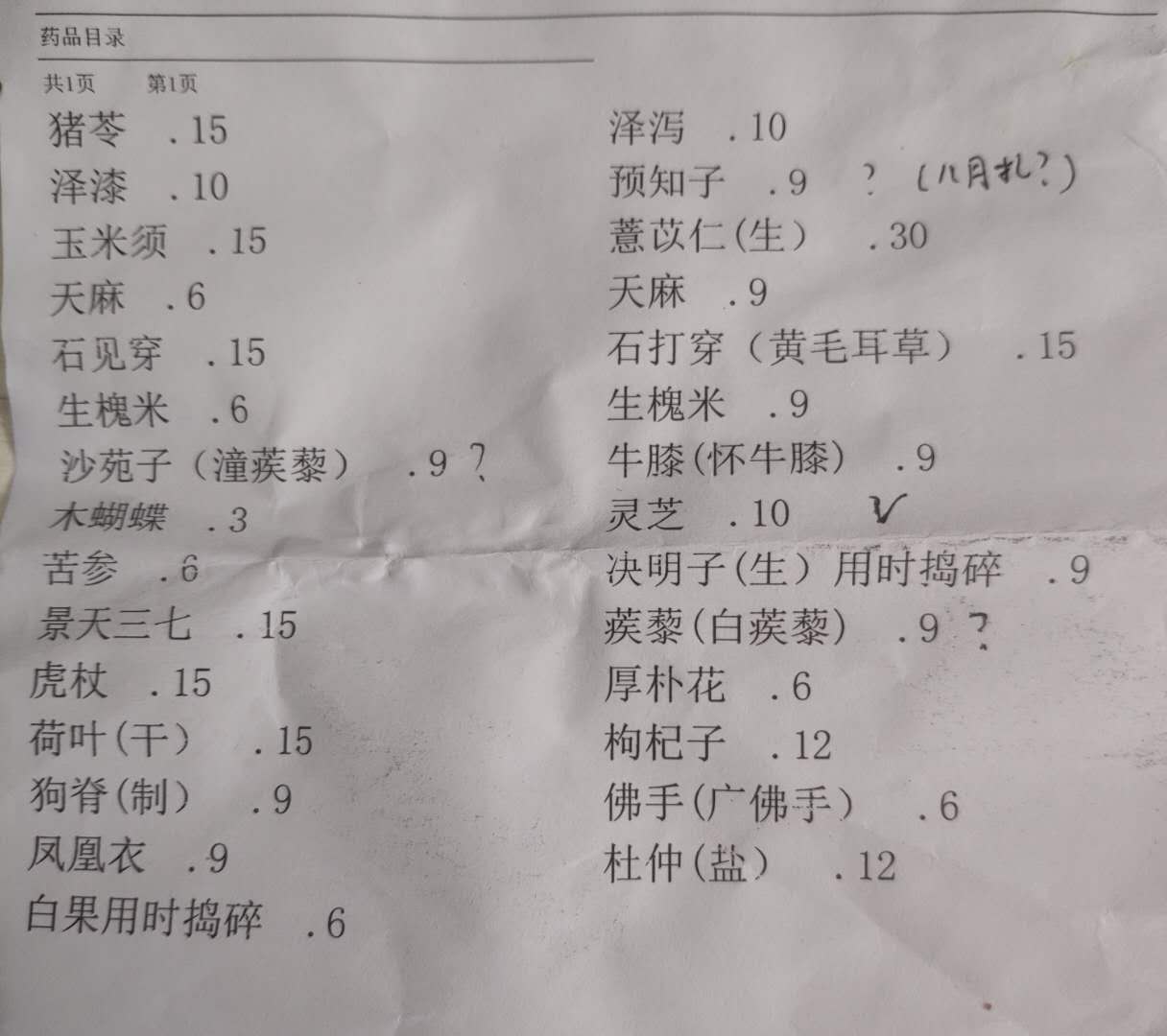 2.打印的药方中有沙苑子和蒺藜,但是手写药方中好像没有。