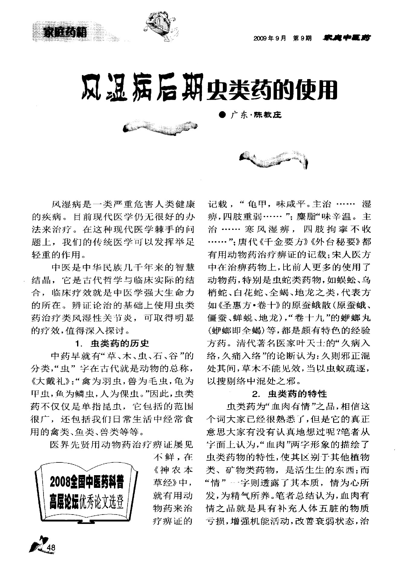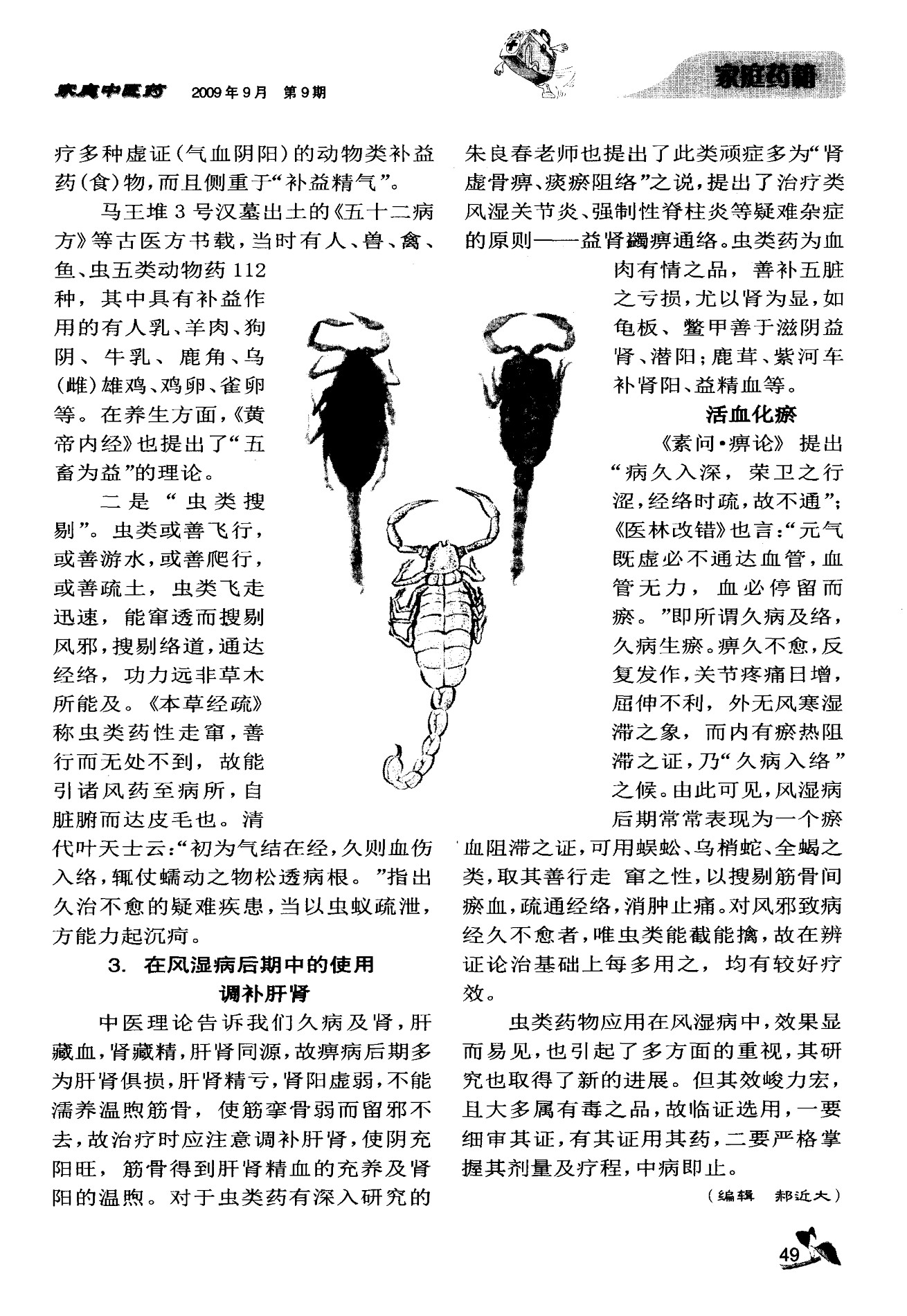 虫类药在风湿病中的应用浅析——学习运用朱良春老师经验体会