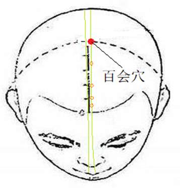 前发际到后发际为12寸,百会穴在后发际上7寸。人的发际有高有低,更准确的取法是头顶后的一小片平坦区的中点。倪海厦老师说:两个耳朵耳尖的地方往上到头顶中心点,再往后五分的地方有一个凹洞,凹洞可以摸到,这就是百会。