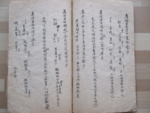 中华医学源远流长,青蒿素的发现,表明中草药和西医技术及标准结合获得的药物取得的成果得到了全球的认可。古医书承载了历代名医的成就,是中医传承发展的载体,内容涉及妇科、儿科、内科、外科、五官、养生、疑难杂症、医案医论、以及古代针灸、偏方、验方等几十种,有的里面附有插图,详细描绘了人体经络、穴位的等结构,其所记载的一些诊疗方法、疑难杂症以及药方,对于现代医学研究有很大的参考价值。历经岁月洗礼,其破损和纸张的老旧见证了其历史的积淀,具有非常明显的历史过渡性特征,充满岁月之痕迹和浓浓的历史沉淀感,具有很高的经济价值、艺术价值、实用价值和收藏价值。(总计50件-包括46本手抄本、两个脉枕、两个捣铜和研钵).