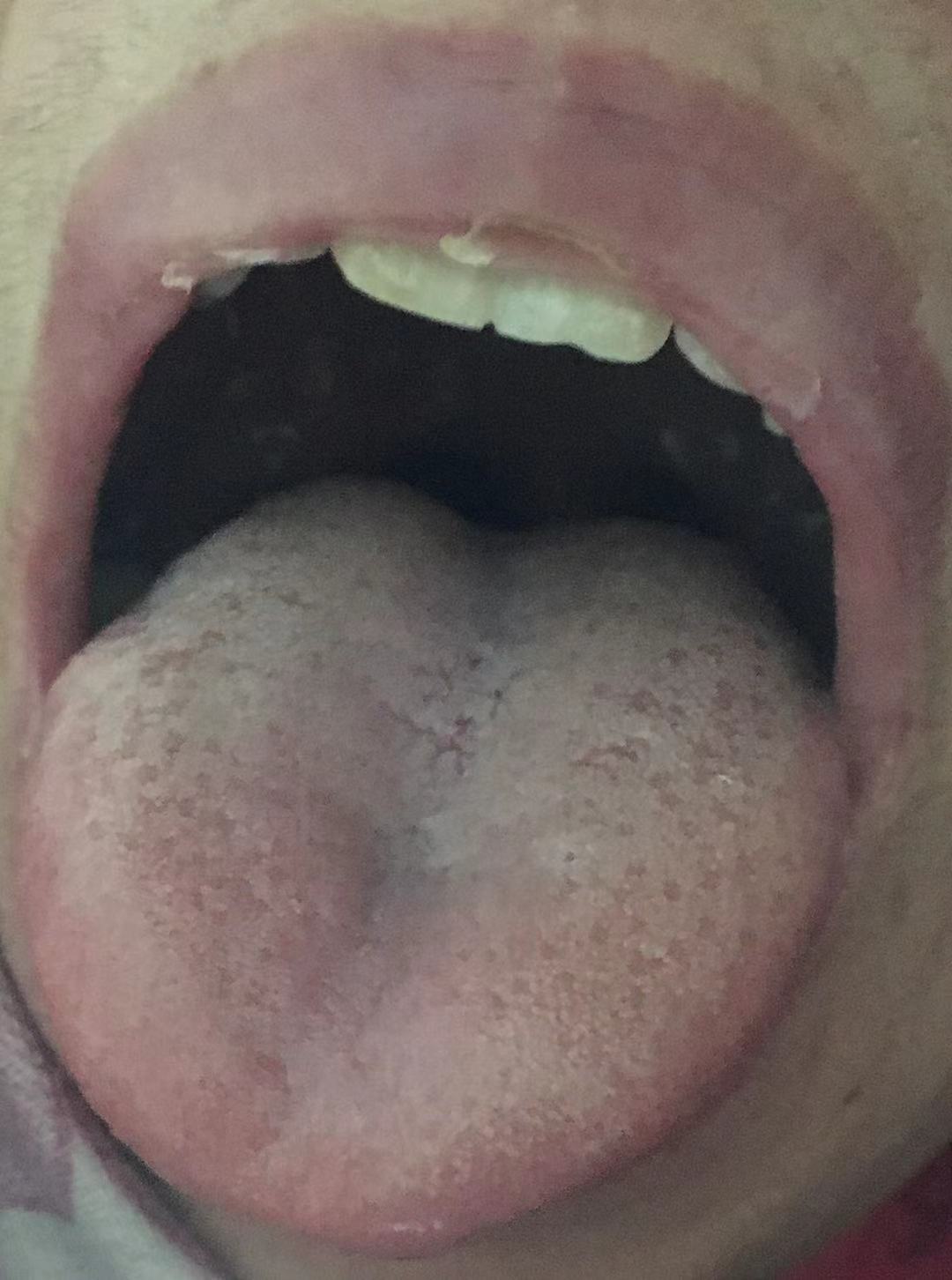 从舌头看 是中焦脾胃虚弱 导致体内瘀滞 老年人气血虚衰 服药以补为主 四君子汤加鸡内金 陈皮 当归