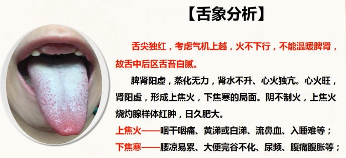 江海余生 说: 那不是不算红,那是暗淡!舌面也有颗粒的。 如果是虚寒应该是粉红色的,而且注意看唇色,也是暗淡,嘴唇蜕皮发干,舌面有泡泡都是无津之象。 你们还要补气?气热烁津,津液更伤! 点击展开... 我们都觉得是无津,分歧在于你觉得是上焦热,导致汗出伤津,我觉得是下焦寒,脾不运化导致体内缺水,其实这两个并不相悖,因为可以同时存在,治法上,我更喜欢补脾来生津,至于这个津液上氶之后能不能熄心火,我不确定,只是起码能解决下焦问题。如果说用寒润的方法从上焦治,导心火入小肠,也是一种方法,只不过我不熟,肯定没法给人推荐的。