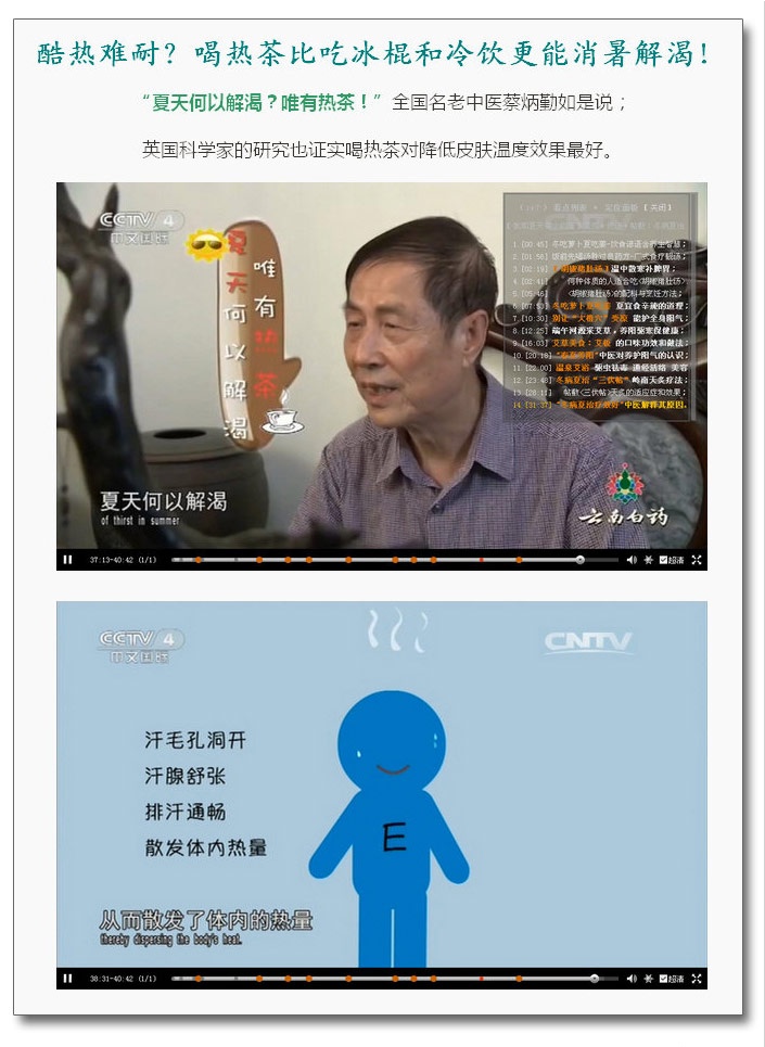“夏天何以解渴?唯有热茶!”,这是全国名老中医蔡炳勤的实践体会,而英国科学家的研究也证实喝热茶对降低皮肤温度效果最好: