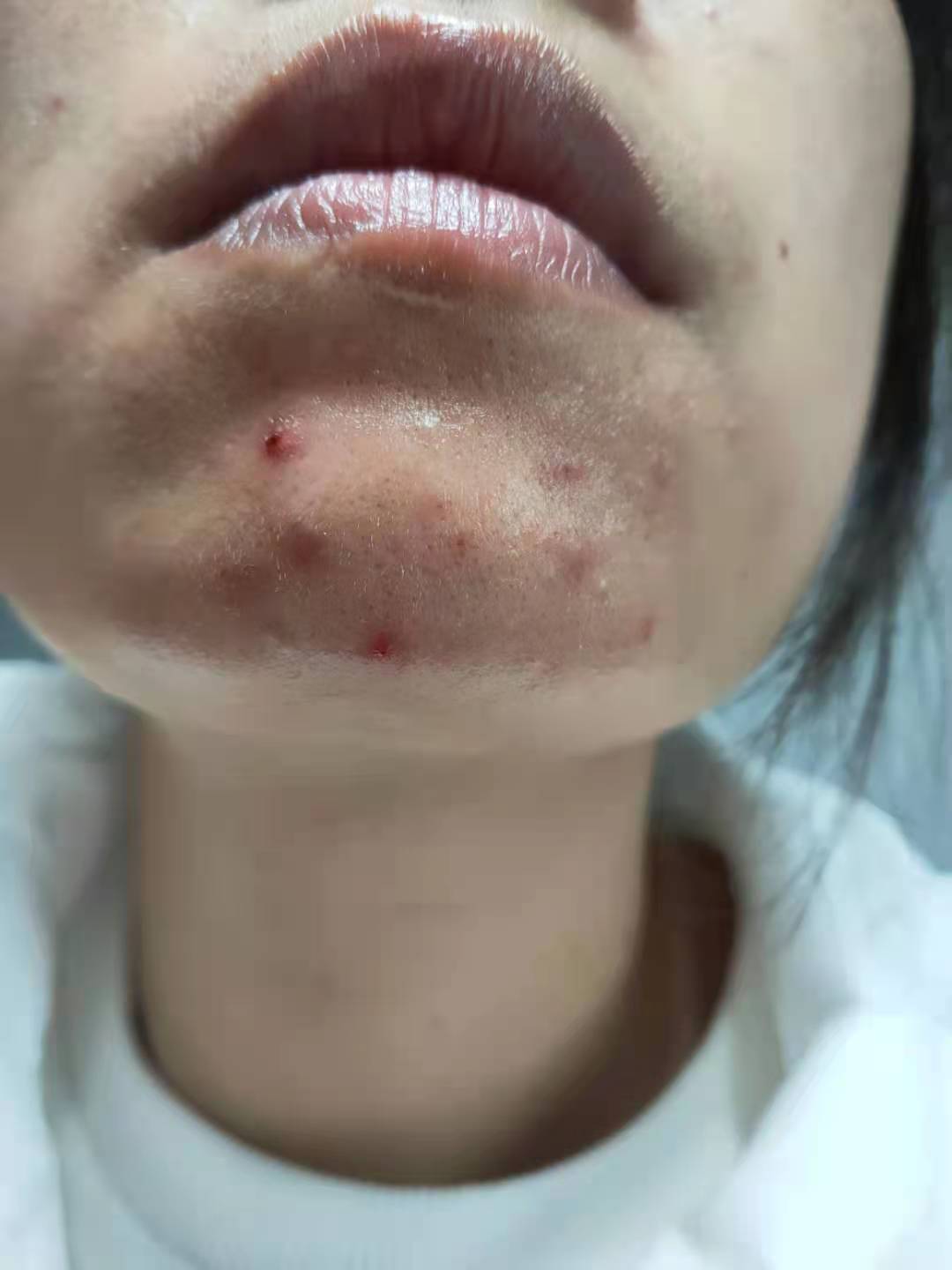 现在的最痛苦、最明显的主要症状是: 从上个月经开始下巴冒痘,是那种红种硬疙瘩的痘痘,一开始很痛,一直不冒白头,到现在已经快20天了,不断地长,越长越多,右脸颊偶尔会冒几个小红点。我属于混 合性皮肤,T区油。在姨妈前容易长溃疡,姨妈期间腰痛,腹痛,有血块。肚子凉凉的。属于那种中度的吧。不是轻微不舒服那种。。经常都有腰酸痛的现象。喝水后容易跑厕所,有时晚上也起夜一次。曾经有中医说我是属于上热下寒,是心肺脾胃热重,生殖泌尿系统寒湿重。