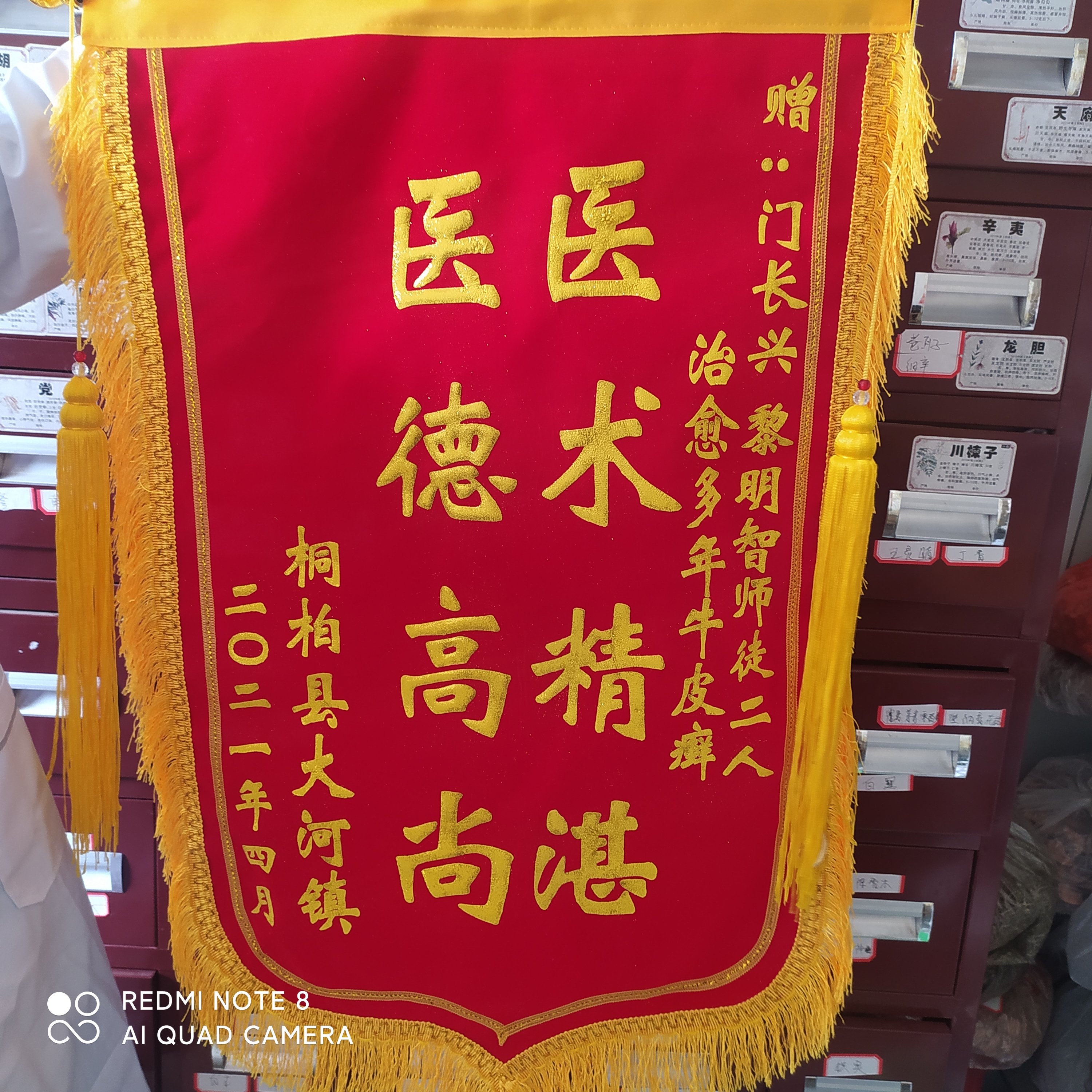 从2021年1月2号第一次来,到今天4月27号来送锦旗,终于治好了折磨他4年多的牛皮癣。