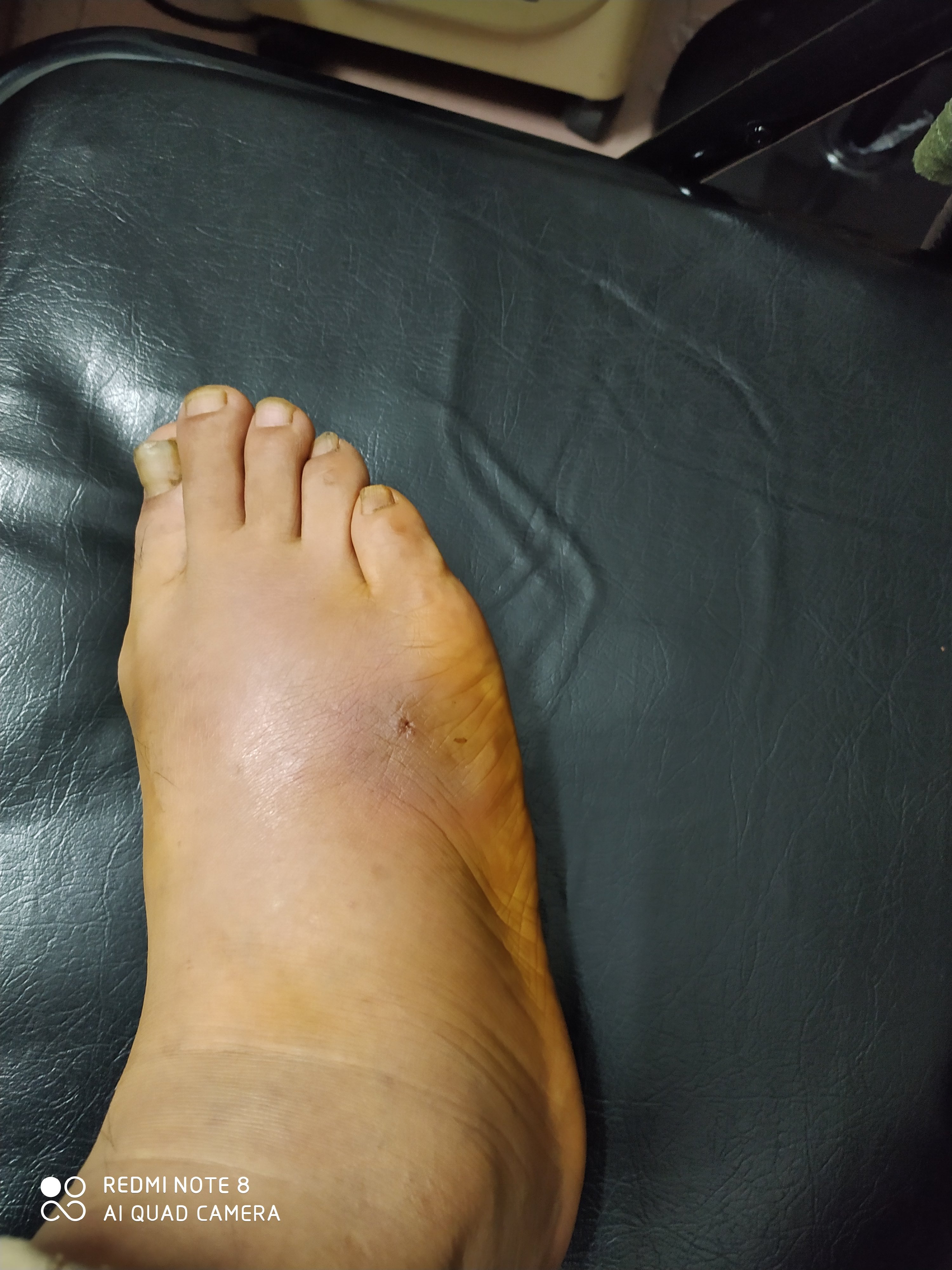 最近脚背两处地方先出现红色一片而且灼痛,几天后脚背开始肿,服了阿莫西林,痛减了,走路有点痛而已,不知道这是疮还是什么?怎么治疗?最近广东这边疫情反弹不想跑医院.那三处小伤口并非疮口,也不是那些小伤口导致的。
