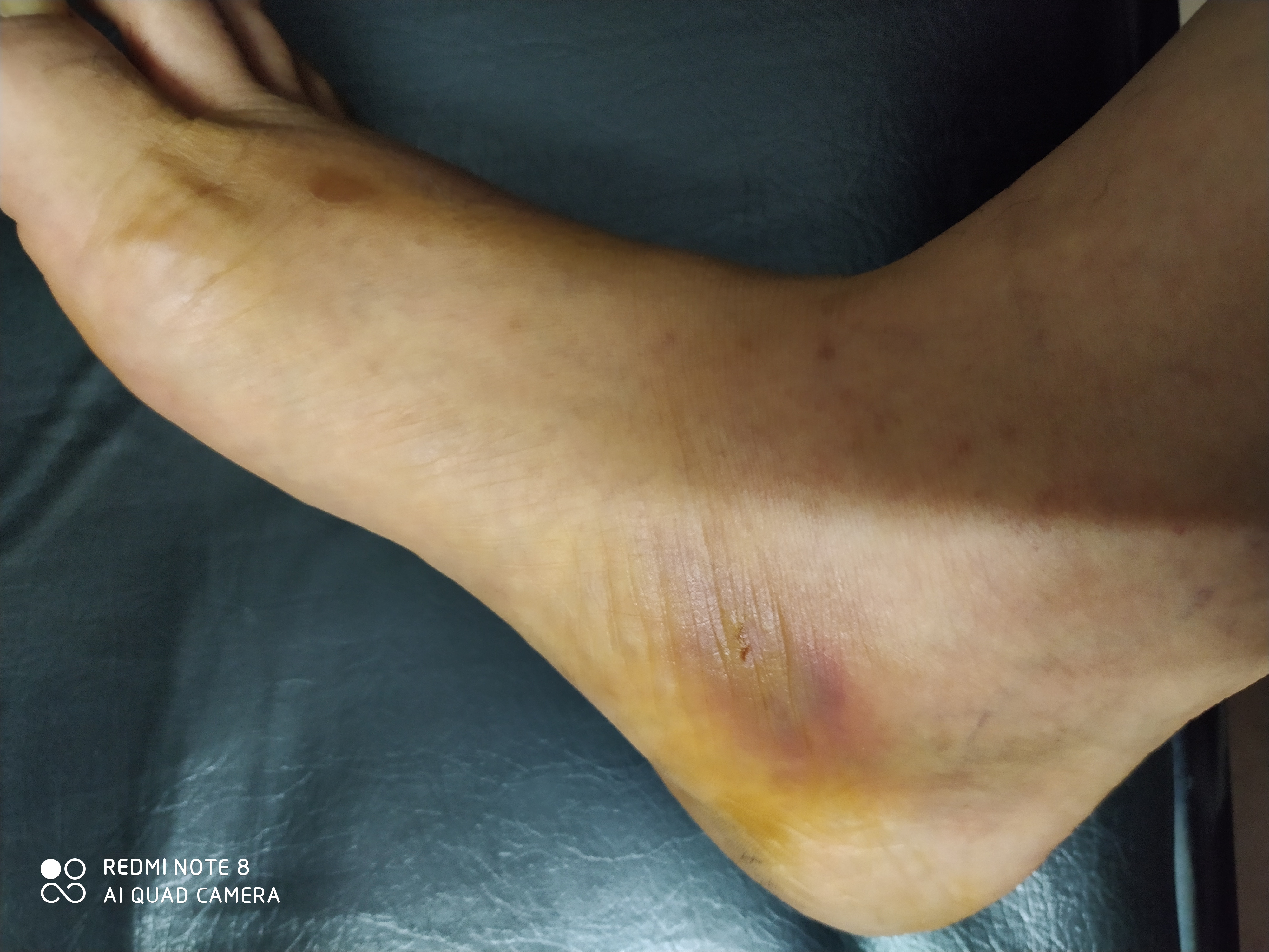 楼主红肿瘀青的部位在{然谷}与{照海}之间,都在肾经上。​