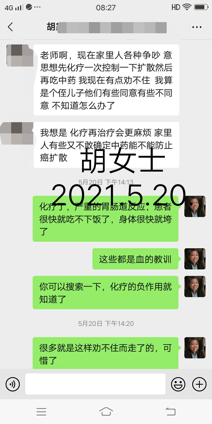 我想是:化疗再治疗会更麻烦,家里人有些又不敢确定中药能不能防止癌扩散。
