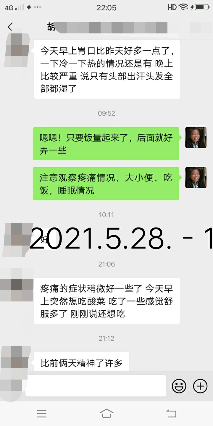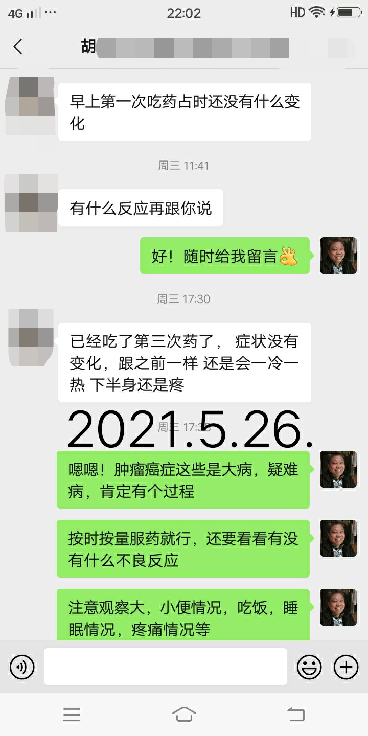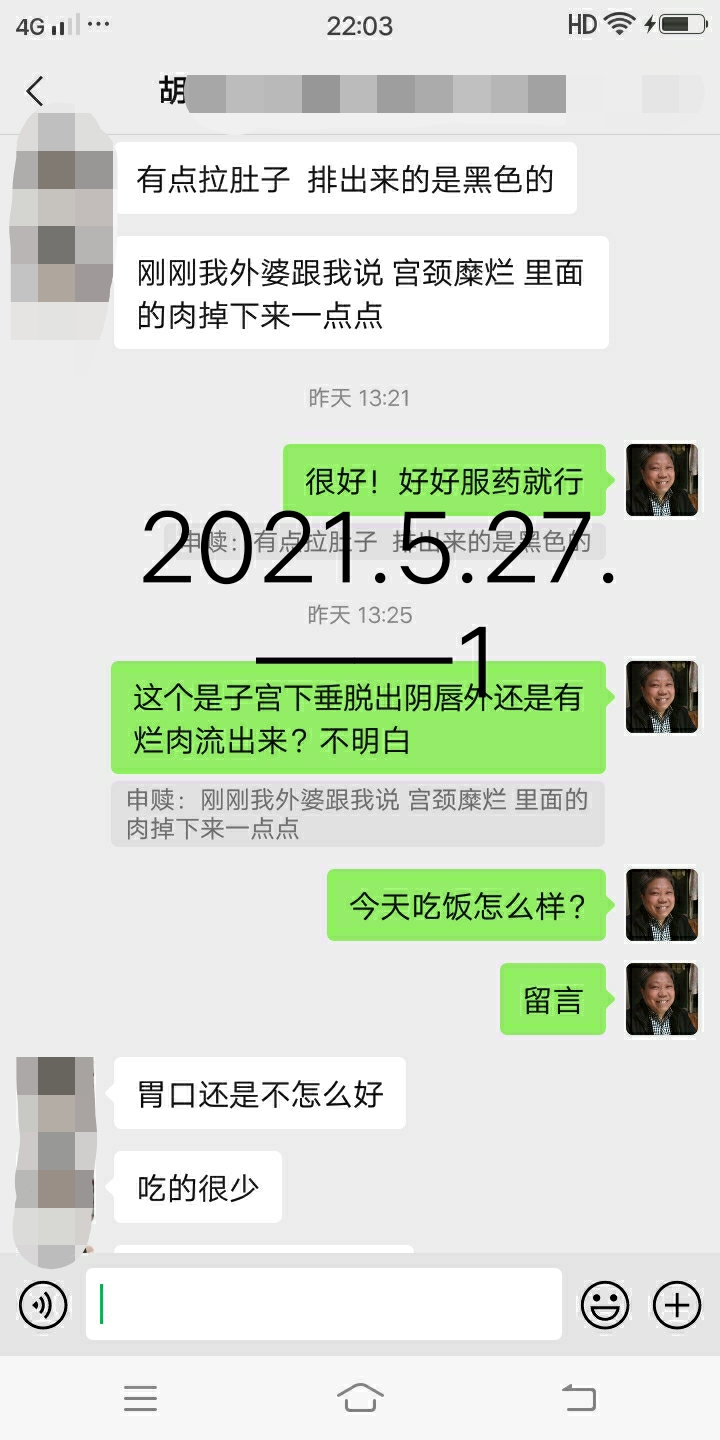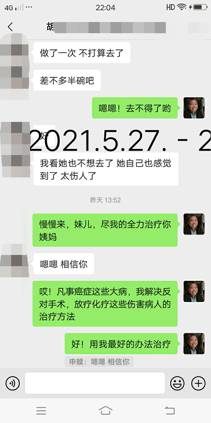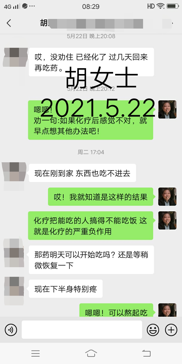 5.22.晚20:08,姨侄女:哎,没劝住,已经化了,过几天回来再吃药。