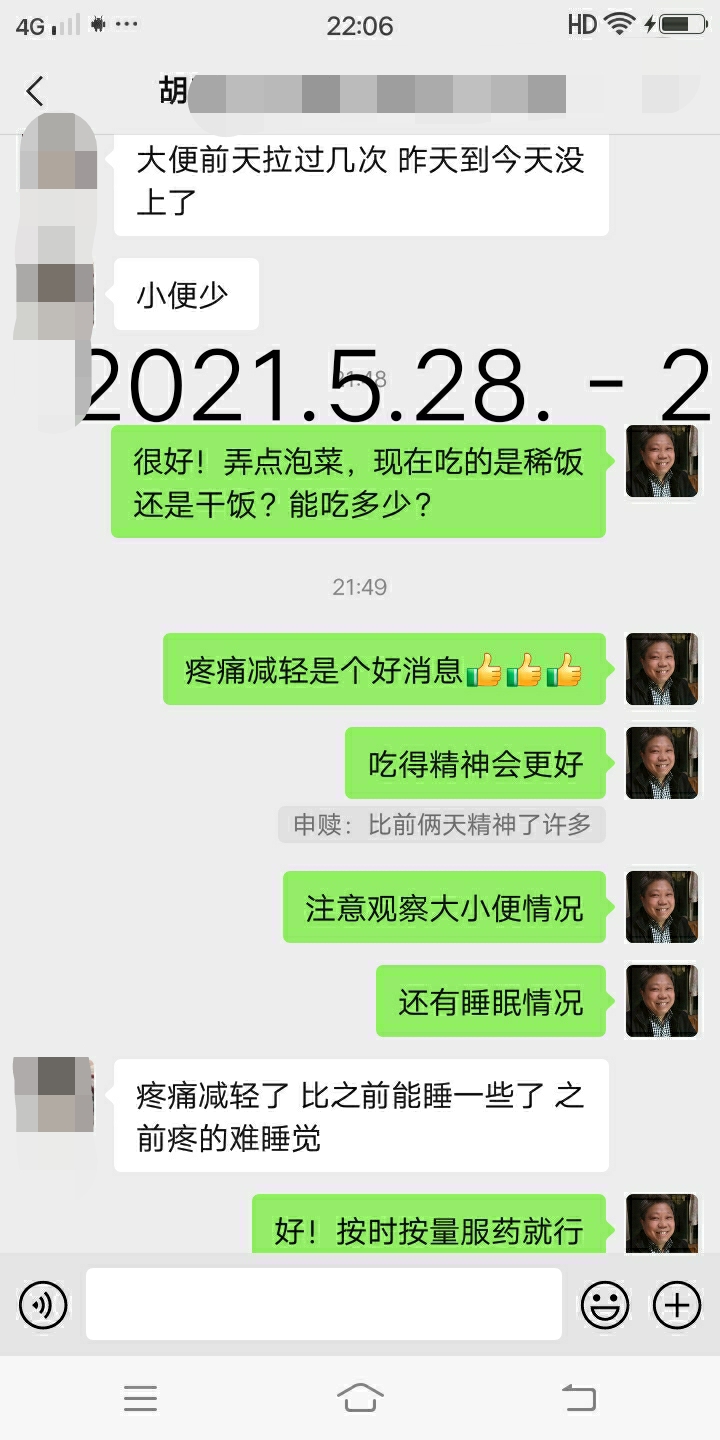 比前俩天精神了许多,大便前天拉过几次,昨天到今天没上,小便少 ,疼痛减轻了,比之前能睡一些了,之前疼的难睡觉。