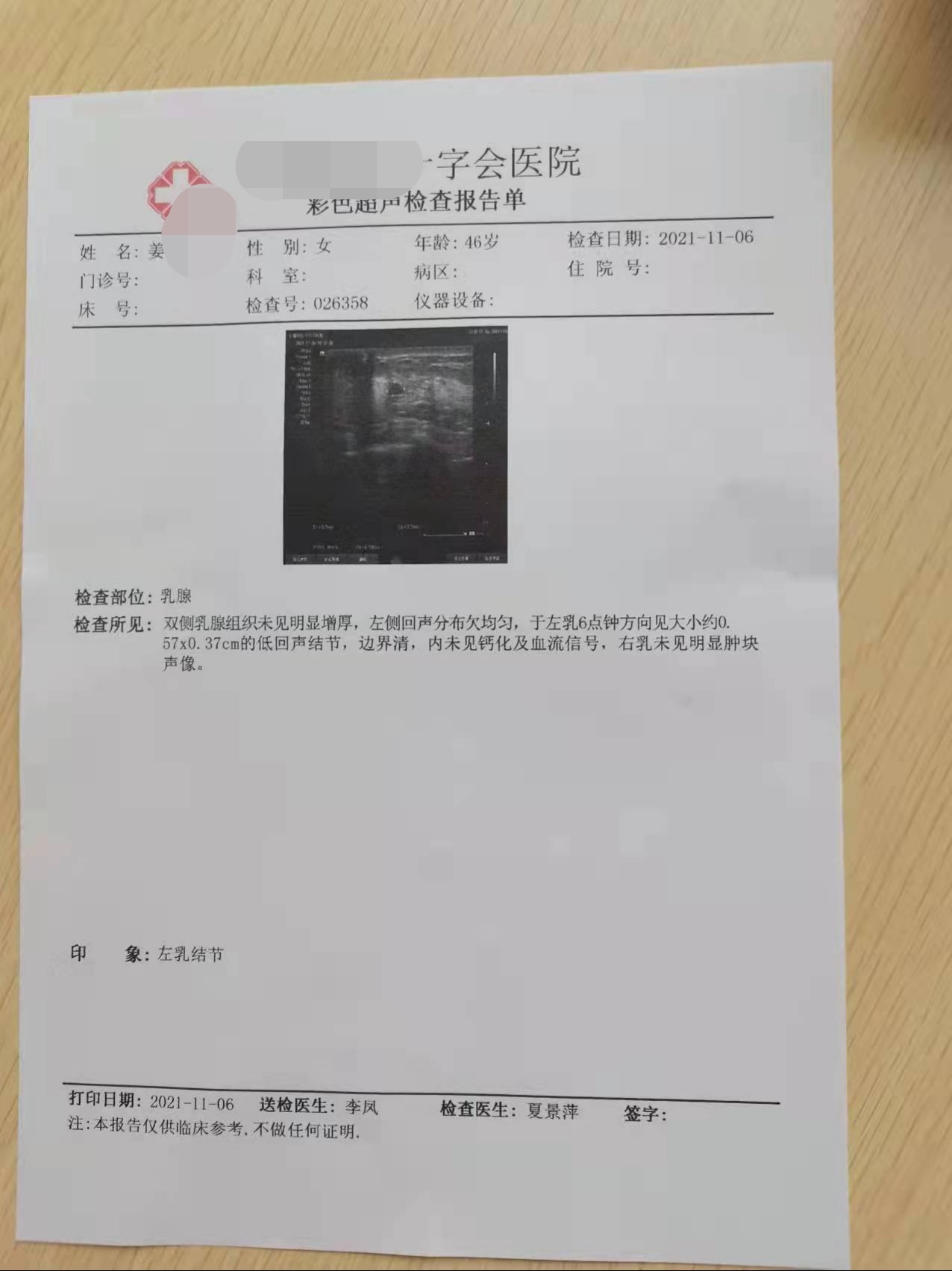 1.就是左乳结节由2021.3.20.的0.65*0.44cm,到2021.11.6.缩小到0.57*0.37cm了。