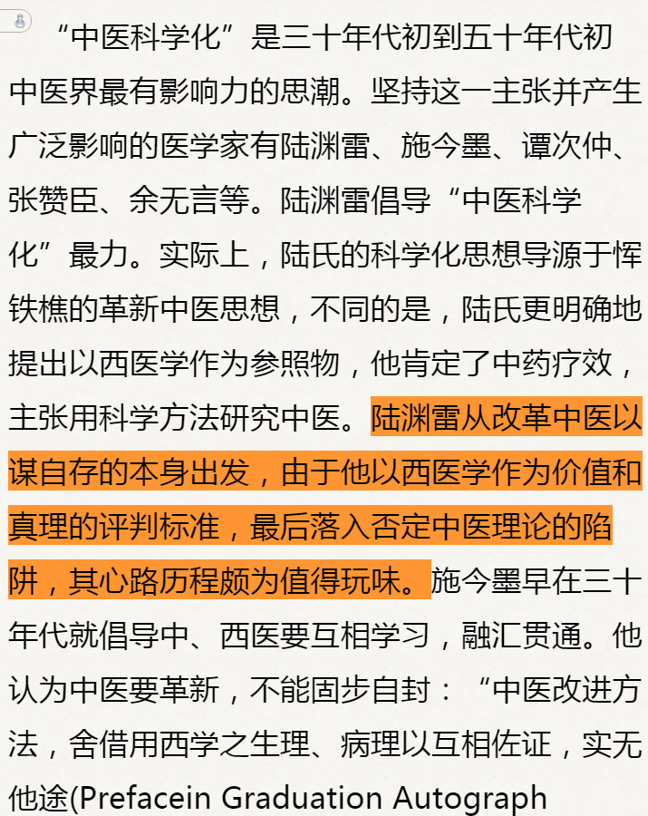 陆渊雷从改革中医以谋自存的本身出发,由于他以西医学作为价值和真理的评判标准,最后落入否定中医理论的陷阱,其心路历程颇为值得玩味。.jpg