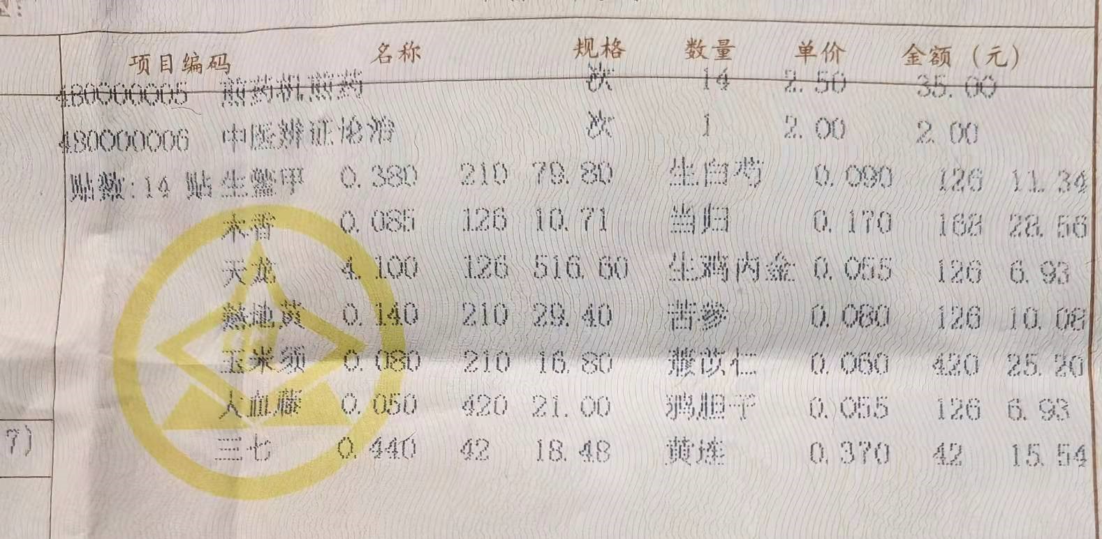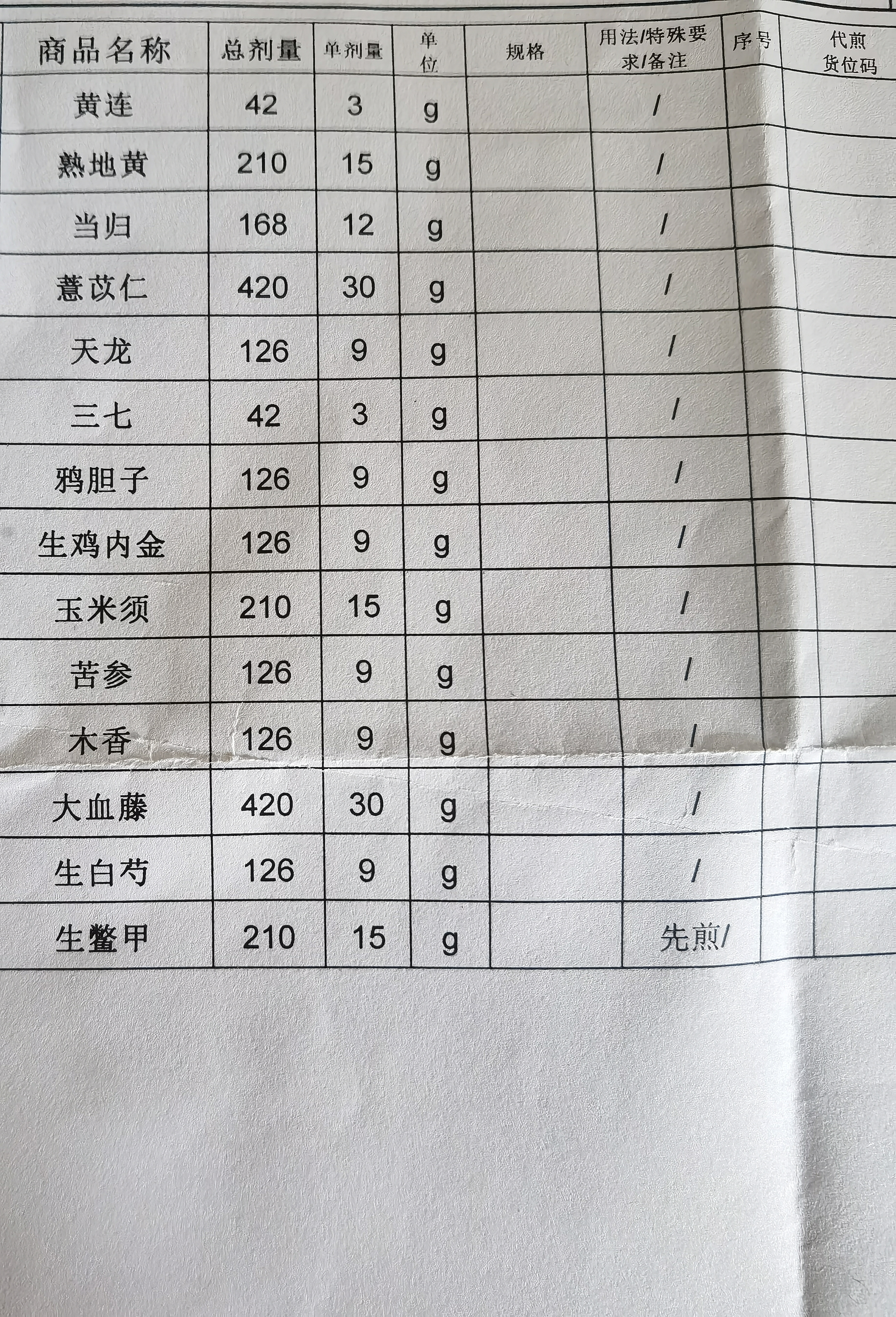 我错了,4.1是价格,126g才是14贴药量蜈蚣还是壁虎并未进一步说明,药物是医院代煎的。