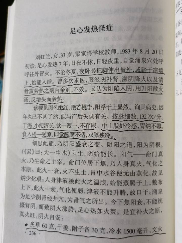 2、后背、腰部、臀部冷痛、酸痛,就像坐在冰水里,头颈、四肢麻冷(从肢上部冷到手腕、脚踝),尤其脚麻,此外还常有四肢、肩膀等部位游走性疼痛(胀痛、刺痛感均有);上述寒症右侧明显比左侧严重,奇怪的是近期偶有左掌心发烧的情况,时间不定;