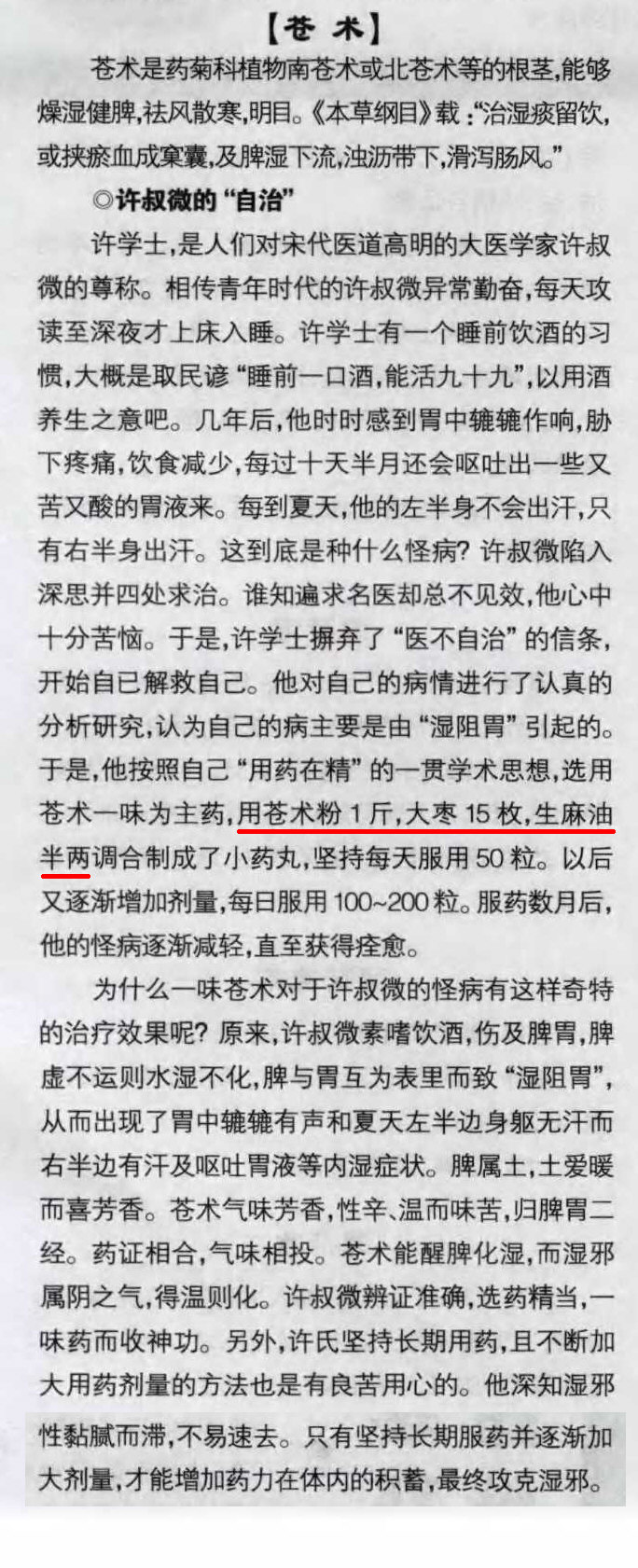 许叔微因为长年睡前饮酒造成脾虚湿阻,导致左半边身体夏天也无汗,气化不利。