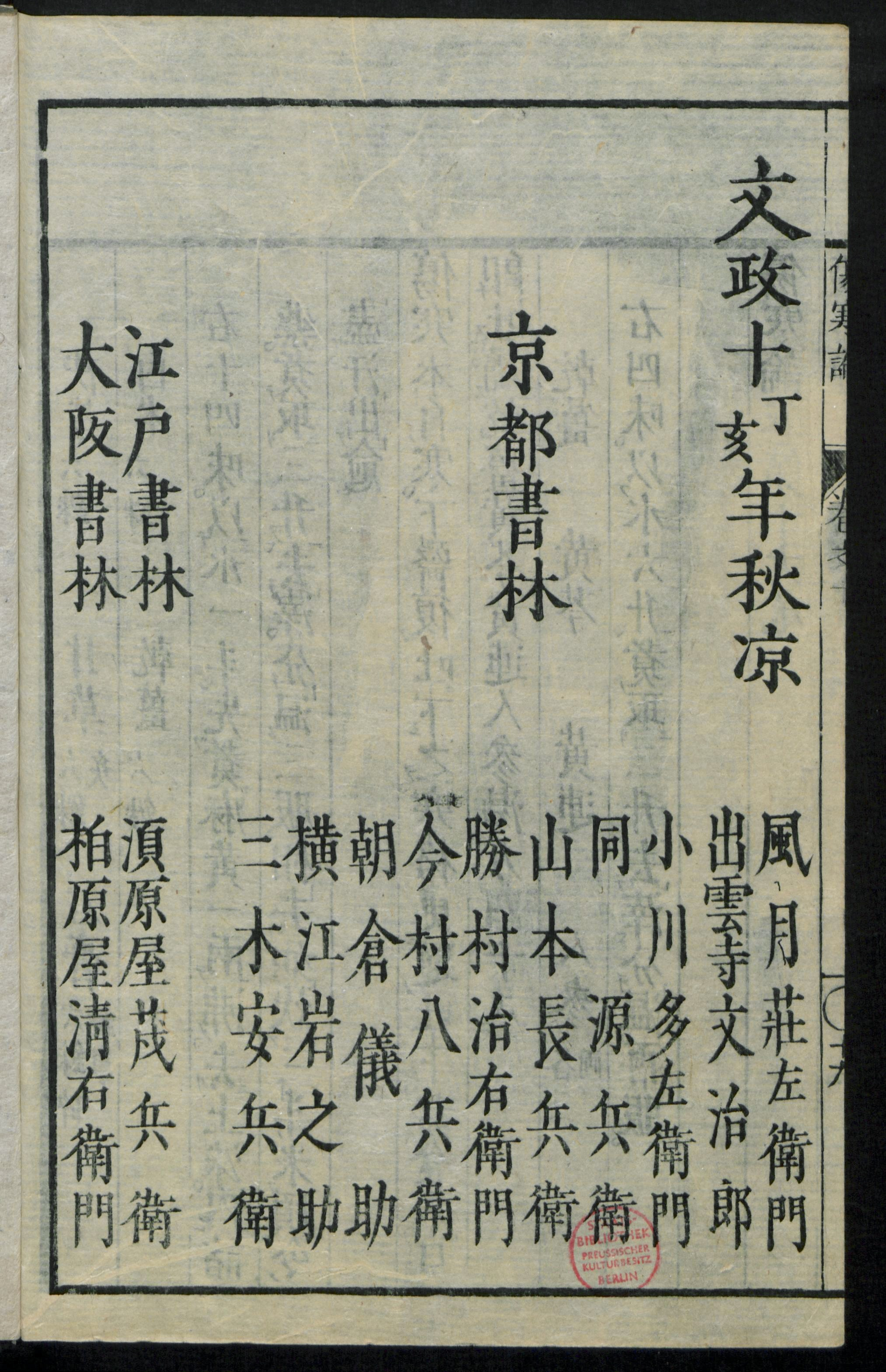 宋板伤寒论 全10卷 汉·张机撰 日本文政10年 (1827年) 风月庄左卫门等13家书肆翻刻本 柏林国家图书馆数字化