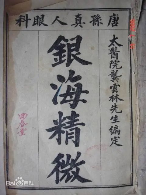 宋以后人托名孙思邈撰。撰年不详。道家以“目为银海”,故名。内容比较实用,但也掺杂一些祝由的内容。现存三种明刻本、二十种清刻本及多种石印本。1949年后有排印本。