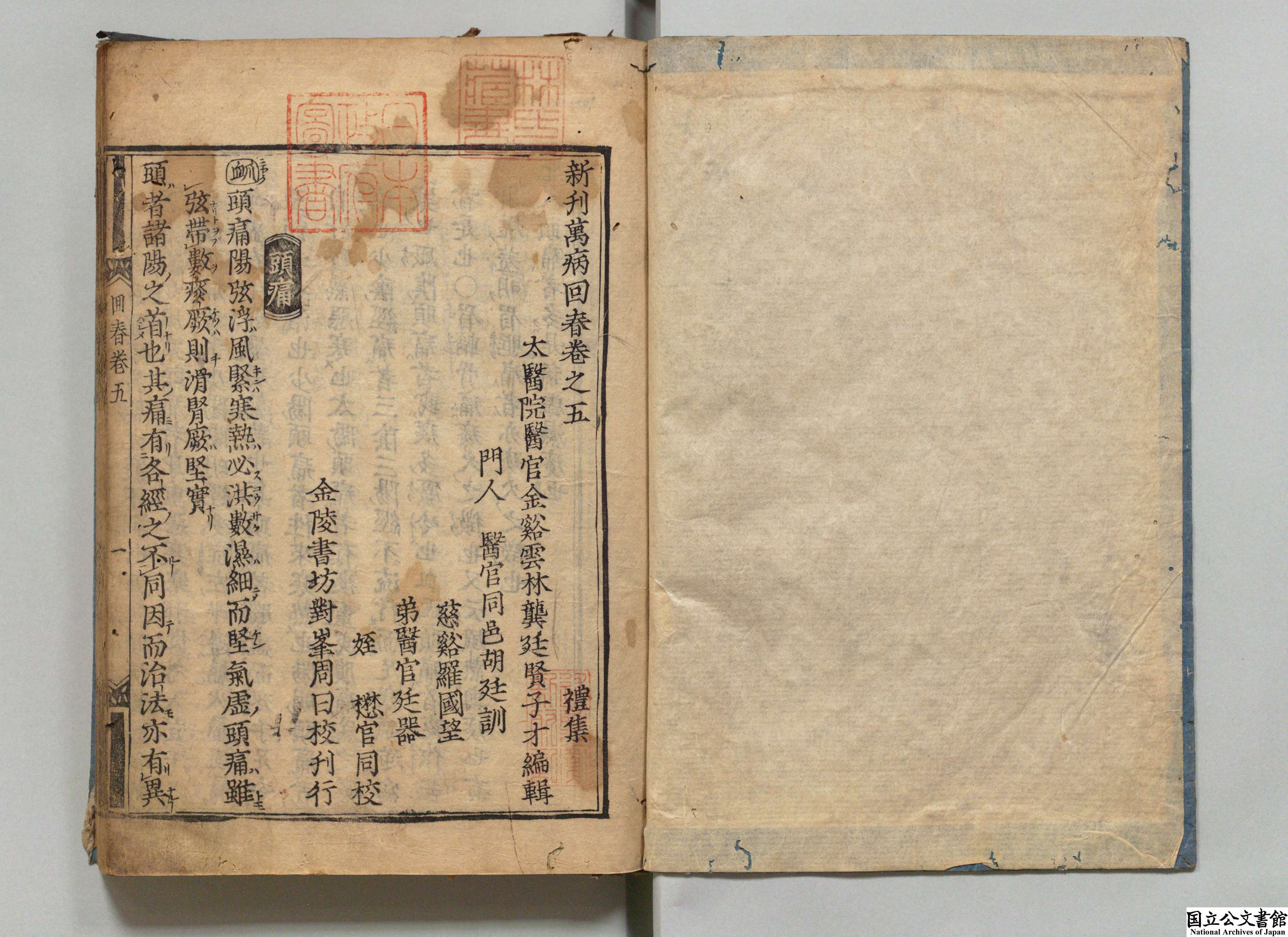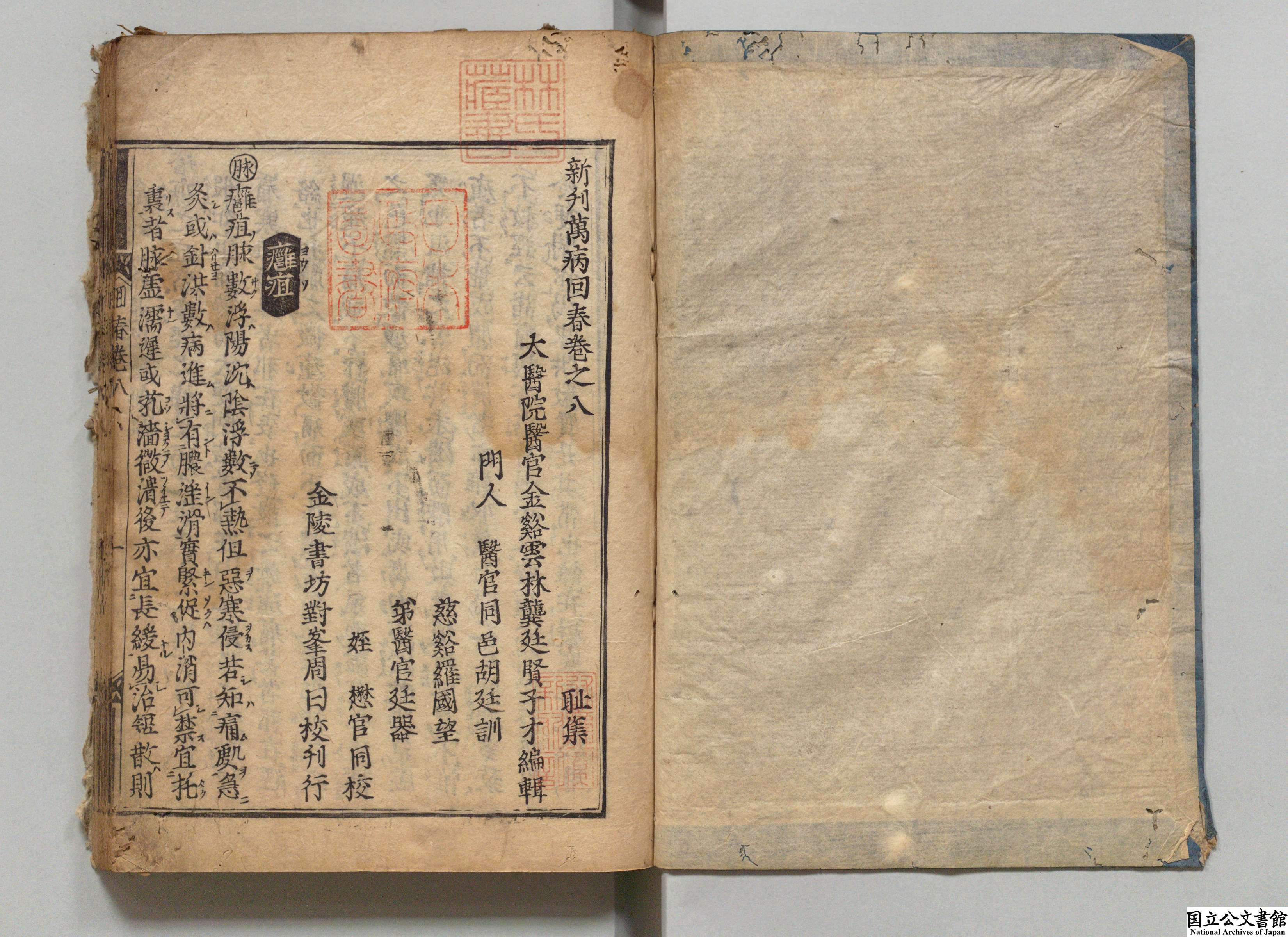 新刊万病回春 全8卷 明·龚廷贤编撰 日本江户时期刻本 林家 (大学头) 旧藏 日本内阁文库数字化