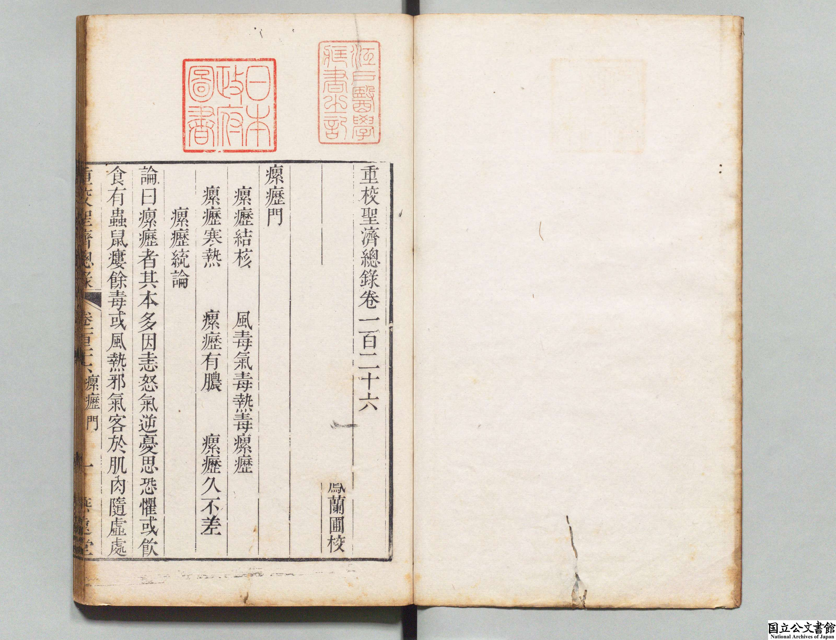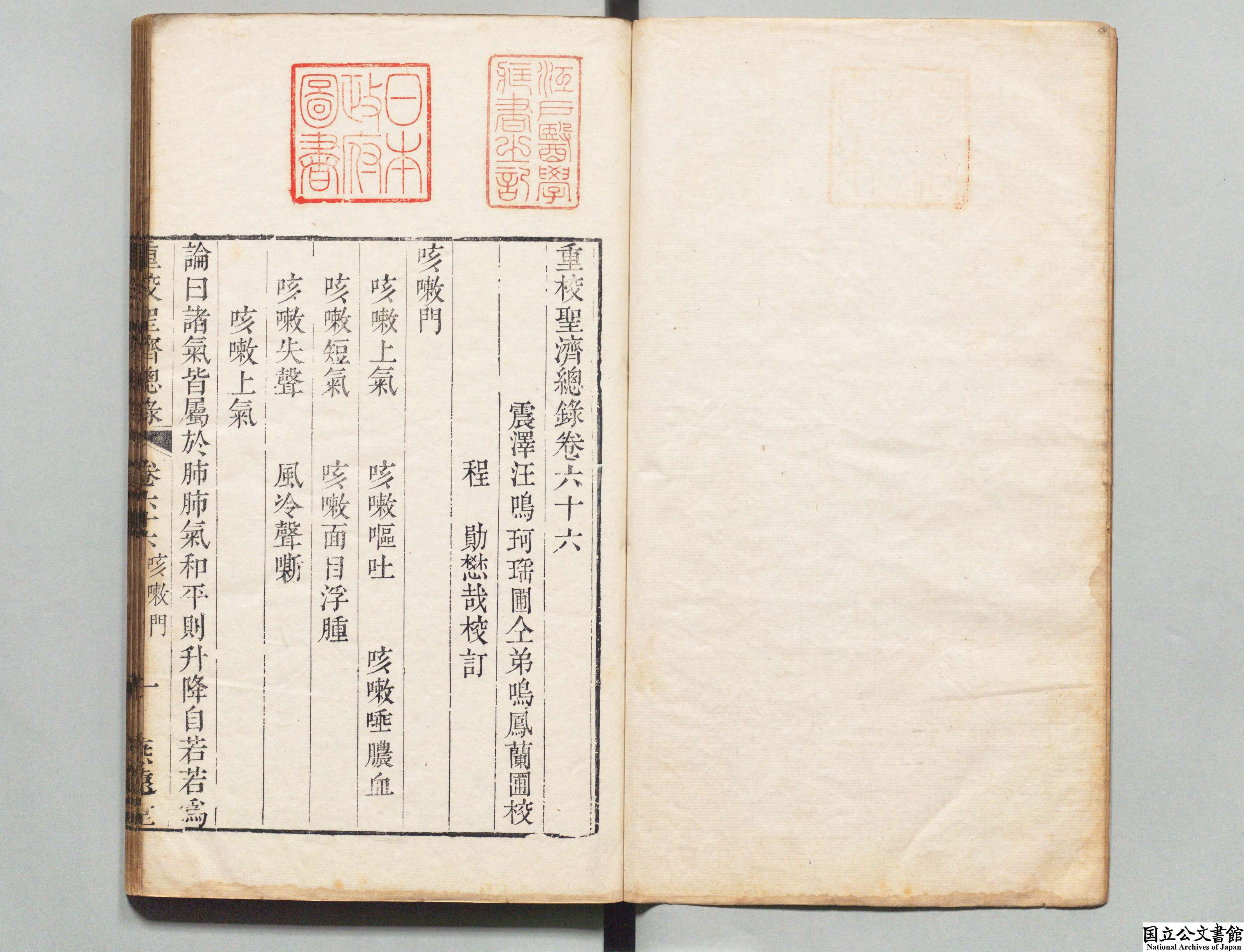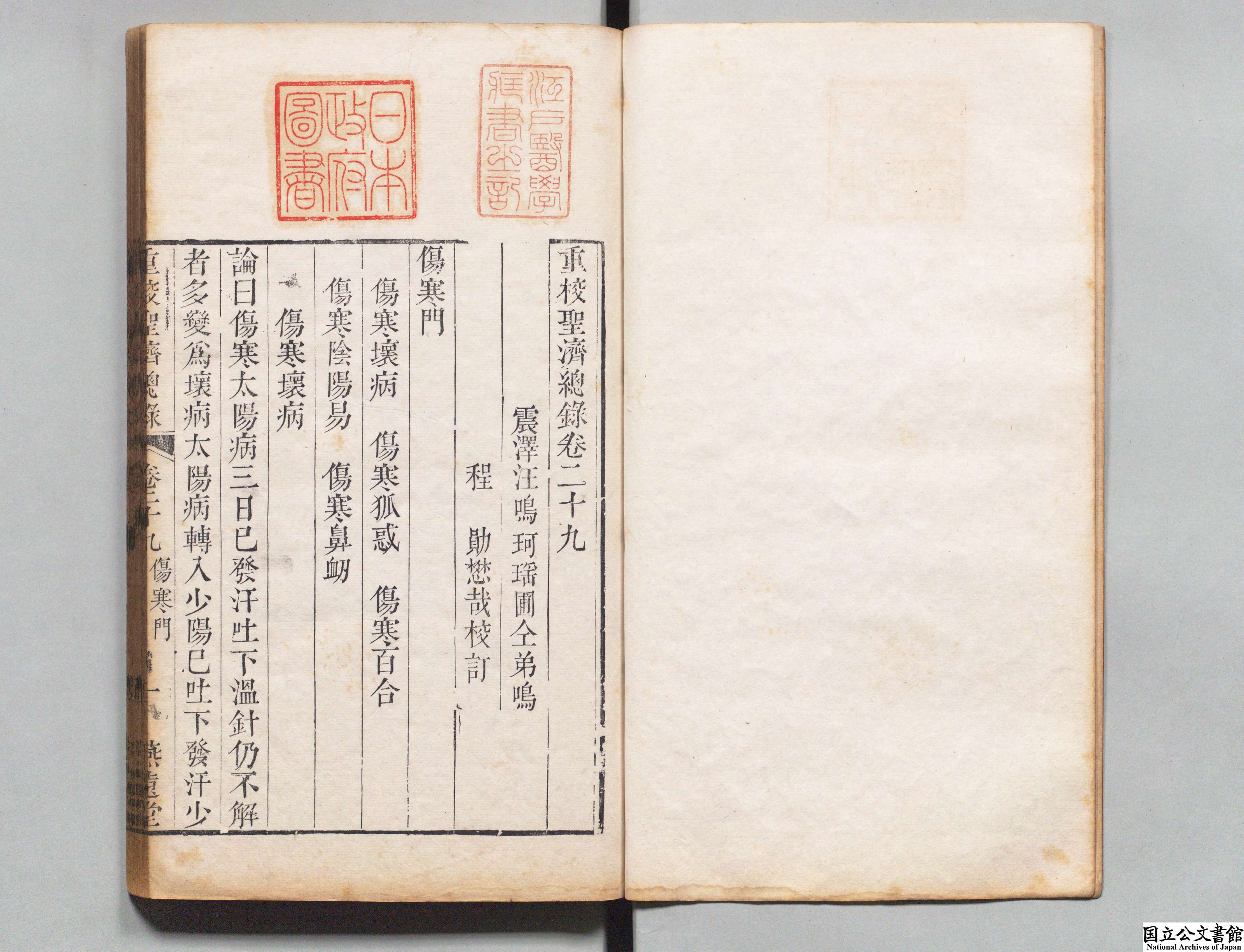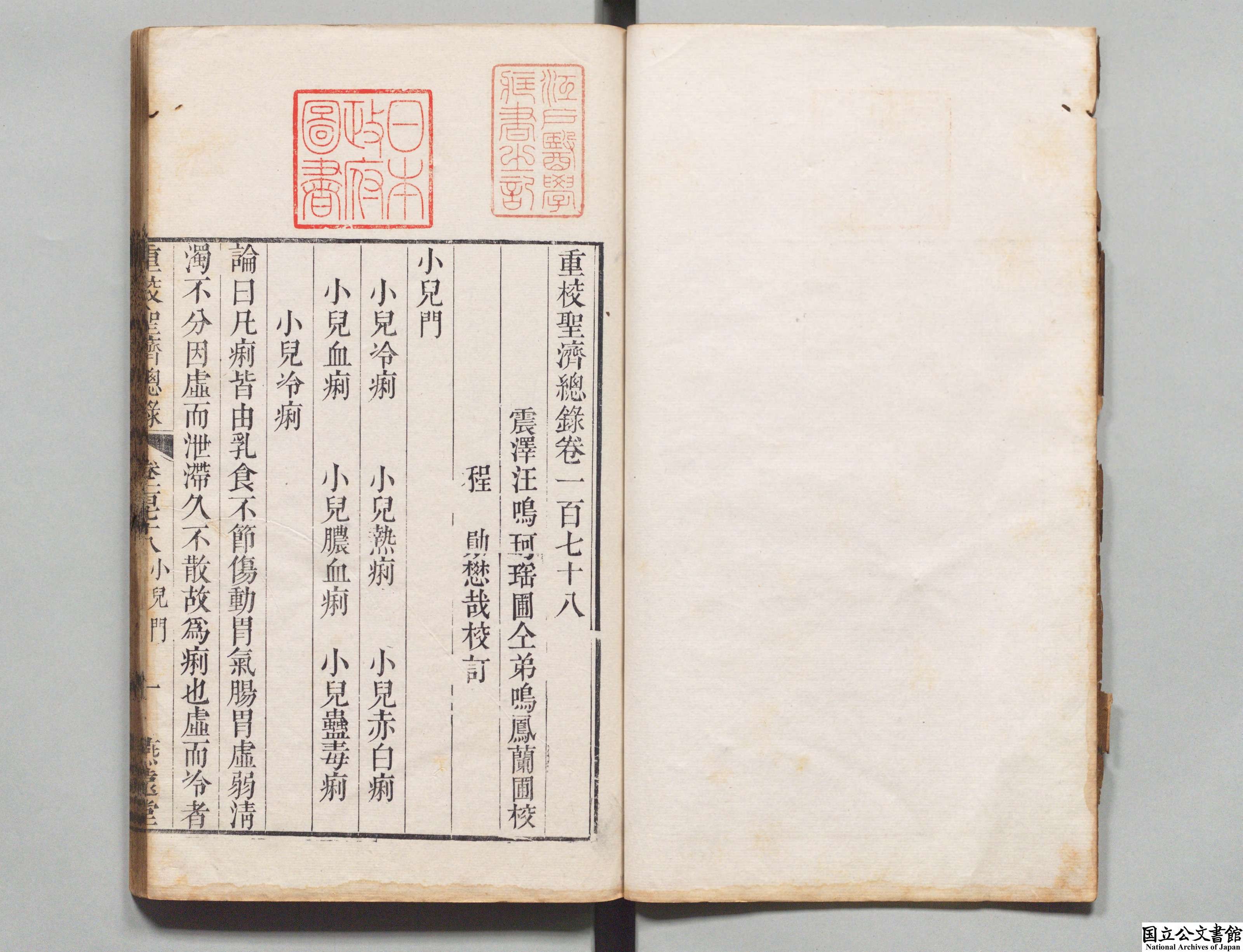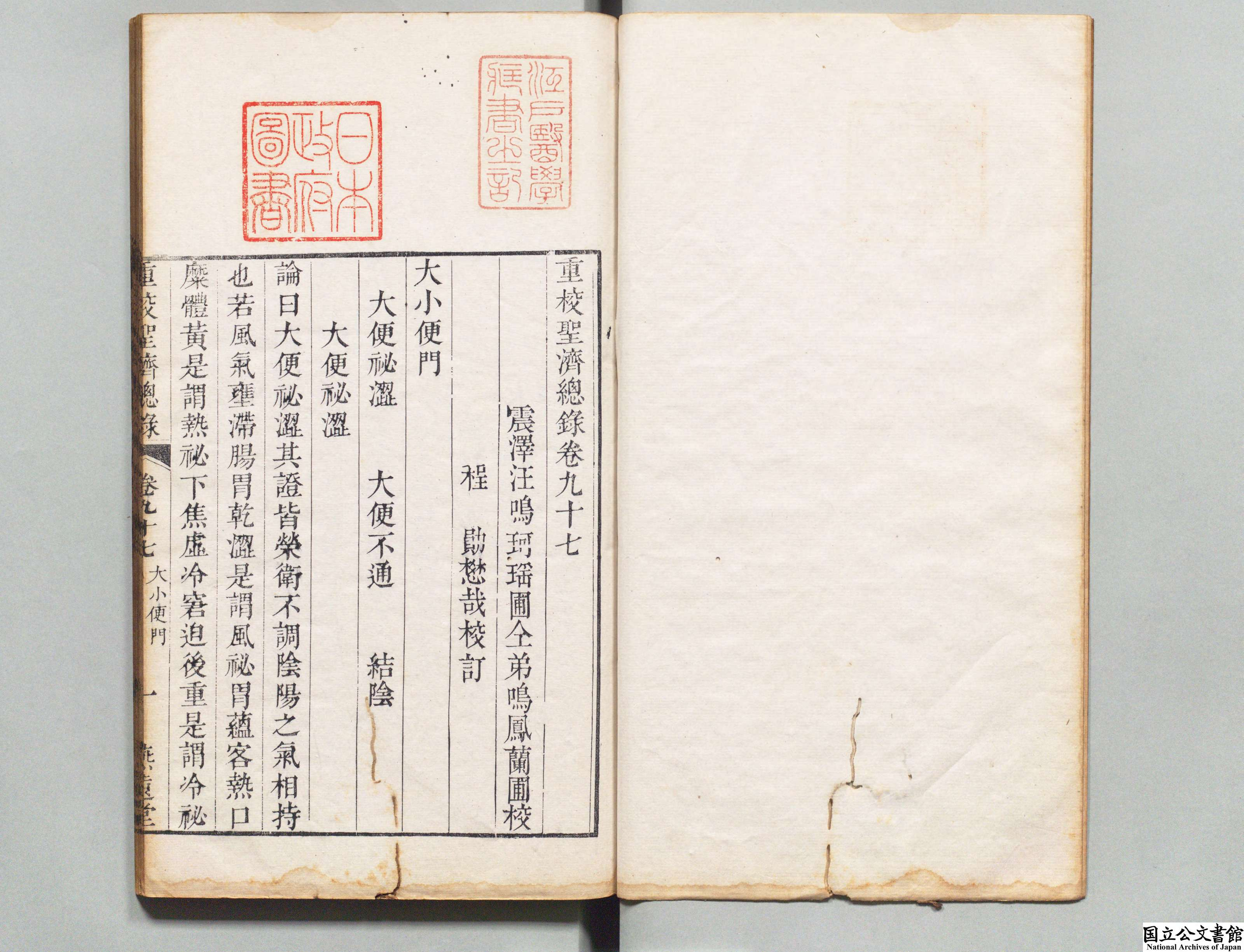 重校圣济总录 全201卷 有缺 宋徽宗赵佶敕编 清·汪鸣珂校订 清乾隆54年 (1789年) 平川燕远堂刻本 江户医学馆旧藏 日本内阁文库数字化
