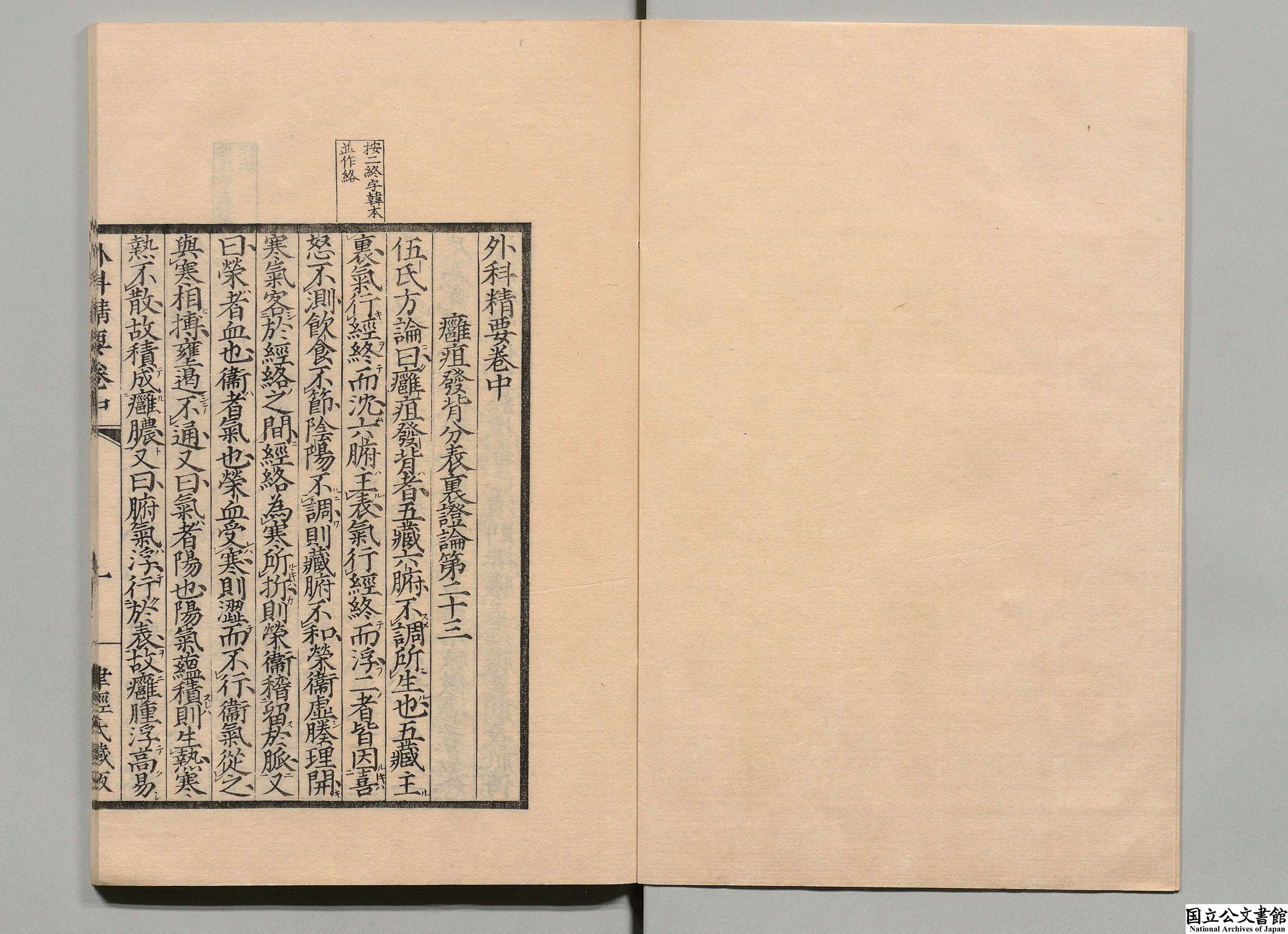 外科精要 全2卷 宋·陈自明撰 日本·津轻健寿校订 日本宽政11年 (1799年) 刻本 红叶山文库旧藏 日本内阁文库数字化