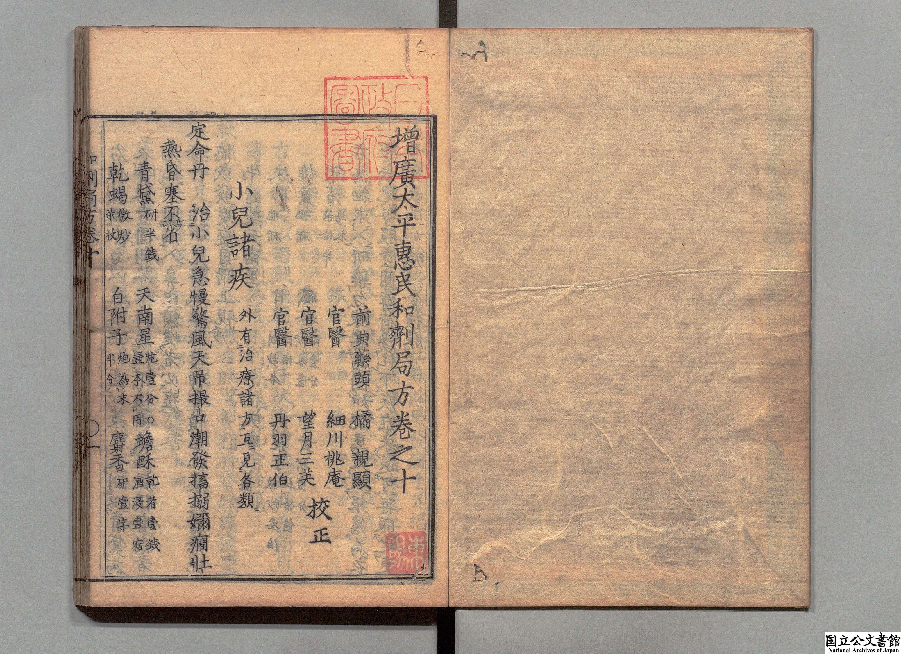 增广太平惠民和剂局方 全15卷 宋·陈师文编 日本宽政01年 (1789年) 刻本 昌平坂学问所旧藏 日本内阁文库数字化