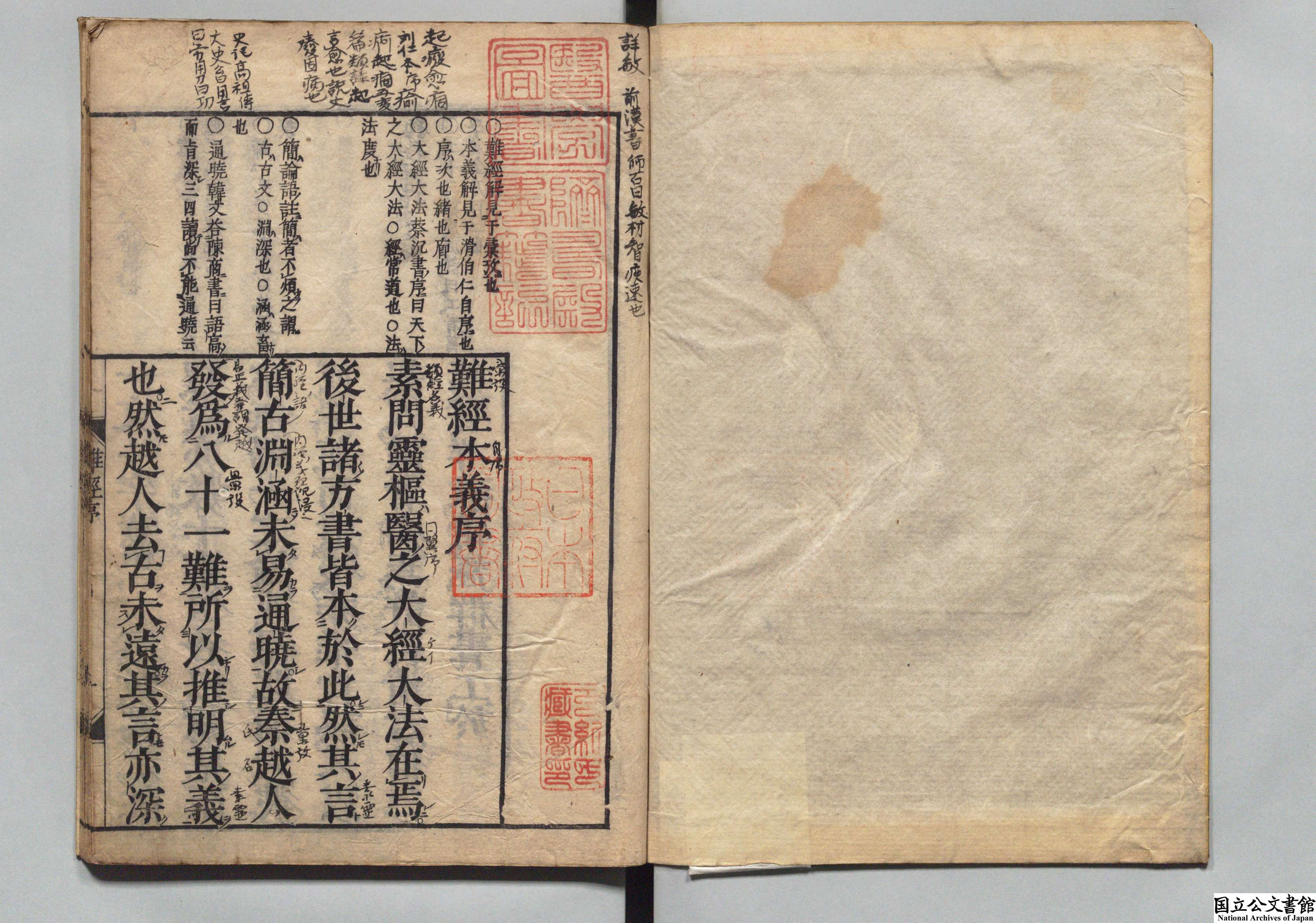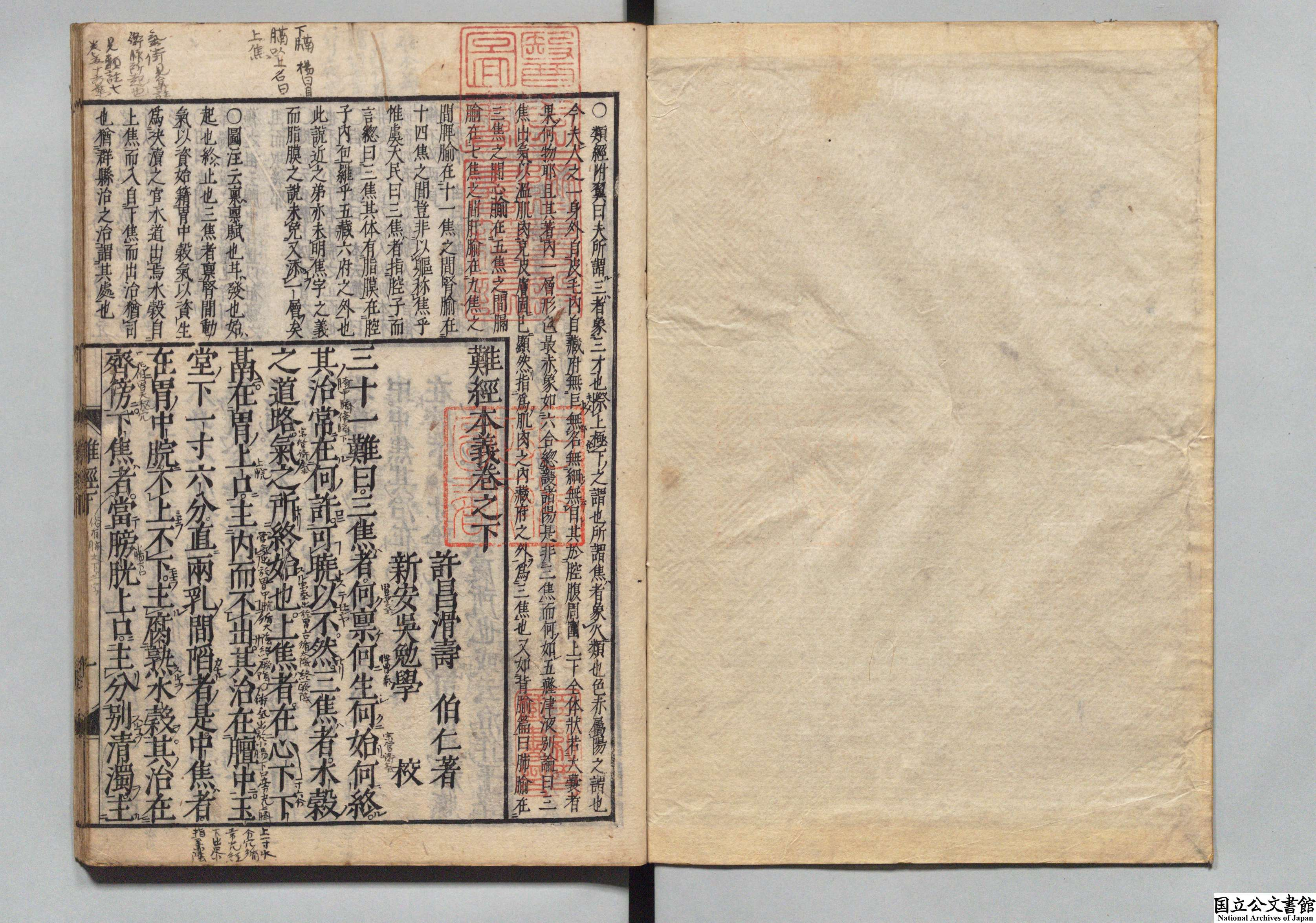 难经本义 全2卷 元·滑寿撰 明·吴勉学校订 日本万治03年 (1660年) 刻本 江户医学馆旧藏 日本内阁文库数字化