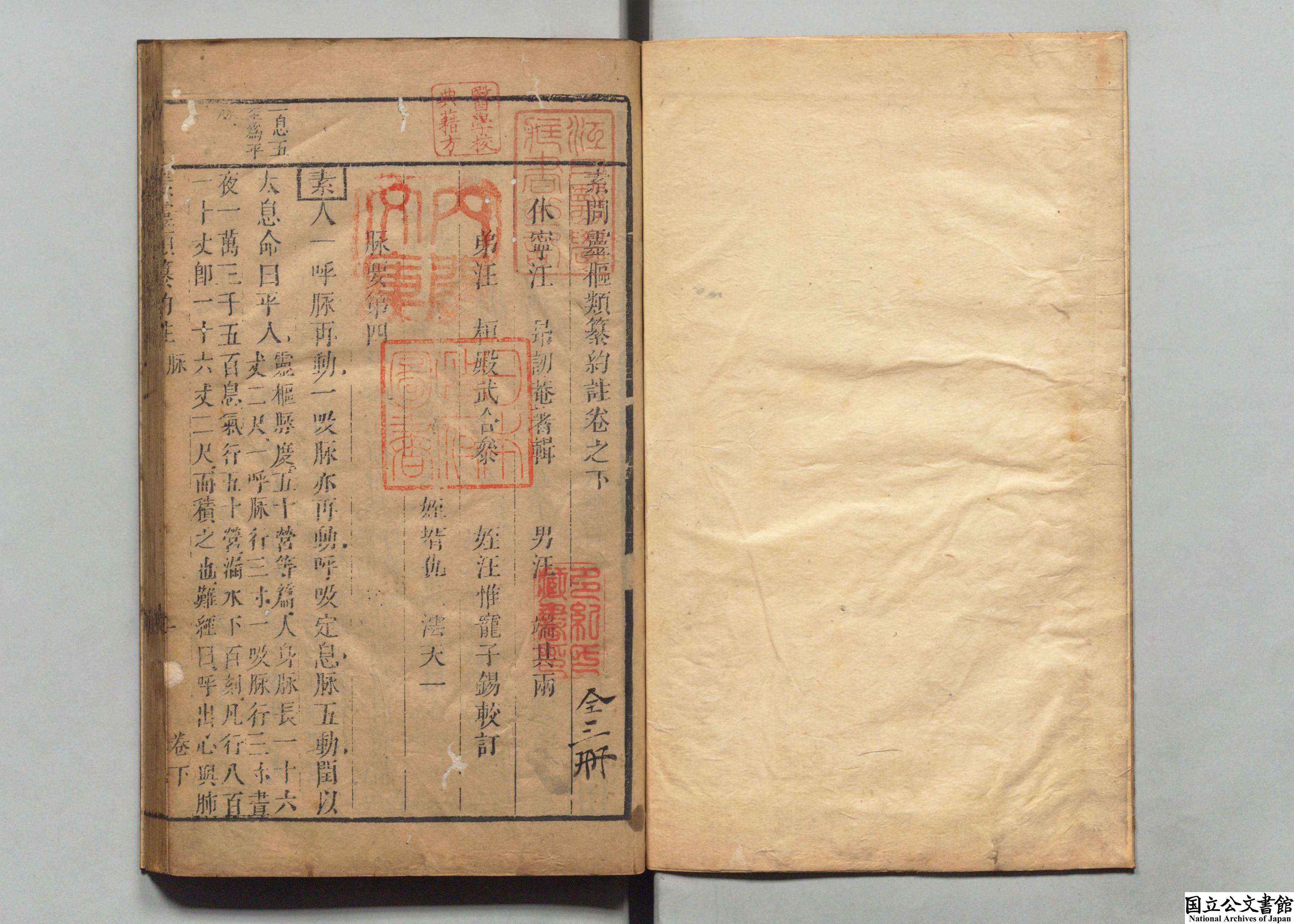 素问灵枢类纂约注 全3卷 清·汪昂撰 清乾隆23年 (1758年) 刻本 江户医学馆旧藏 日本内阁文库数字化