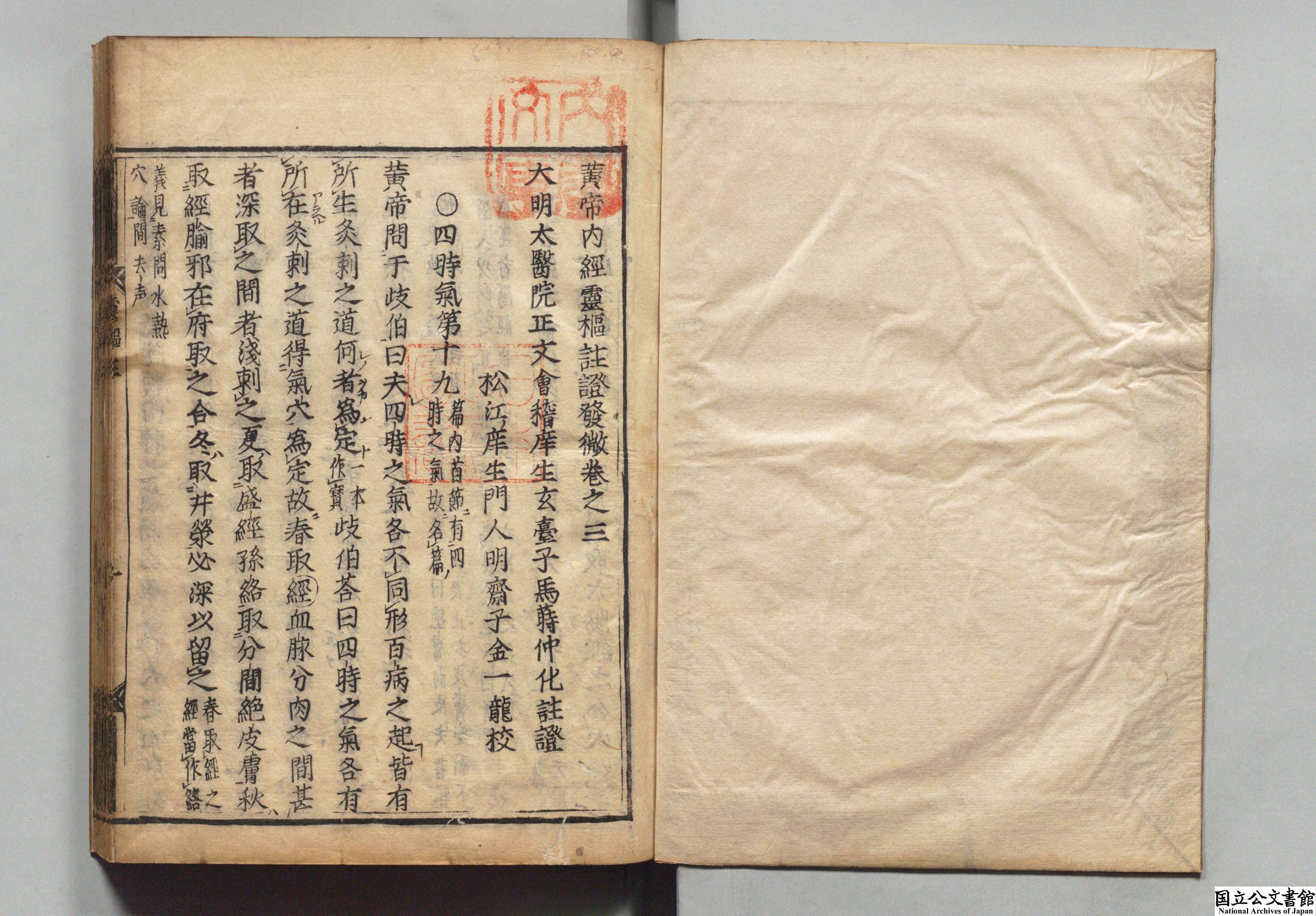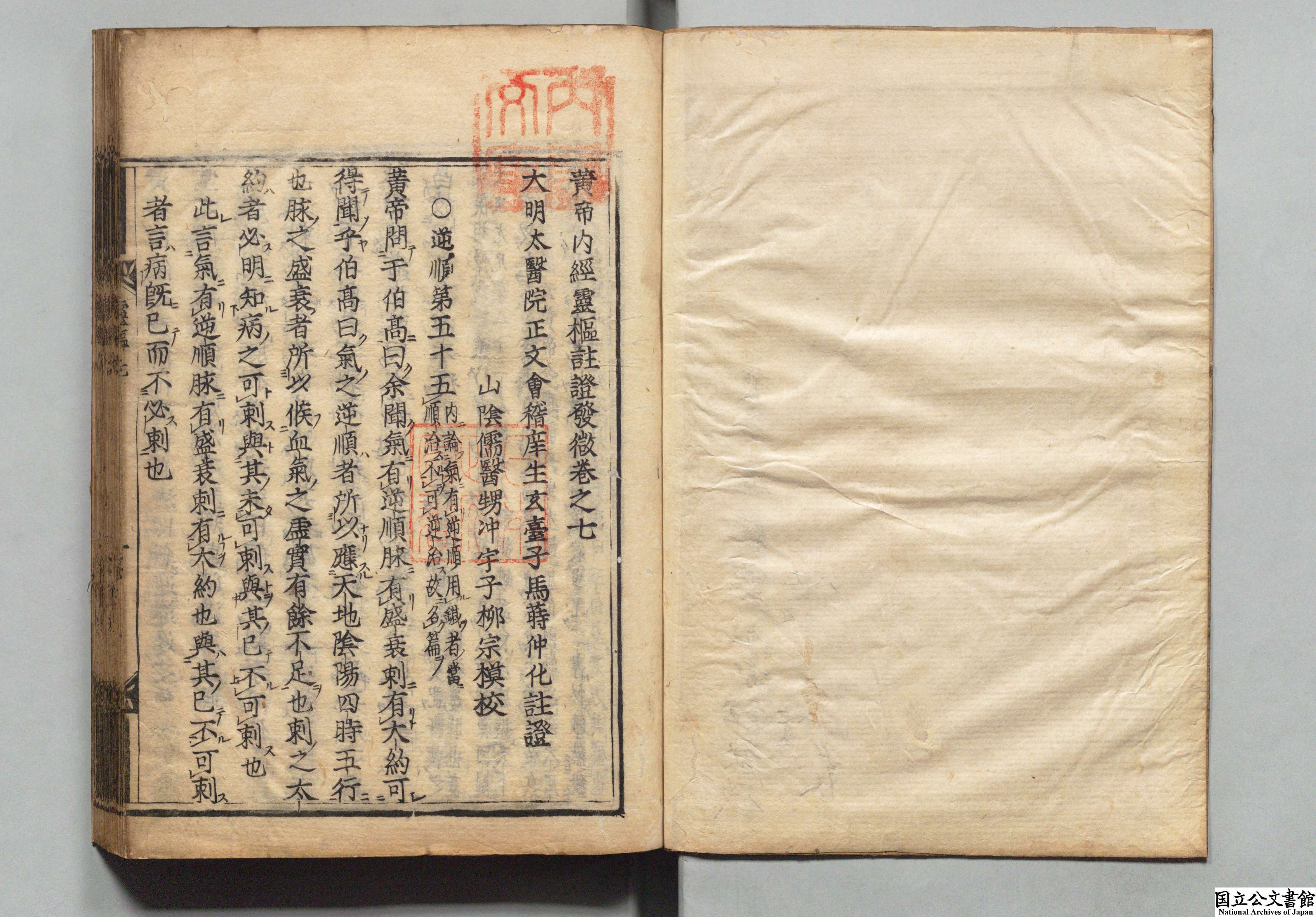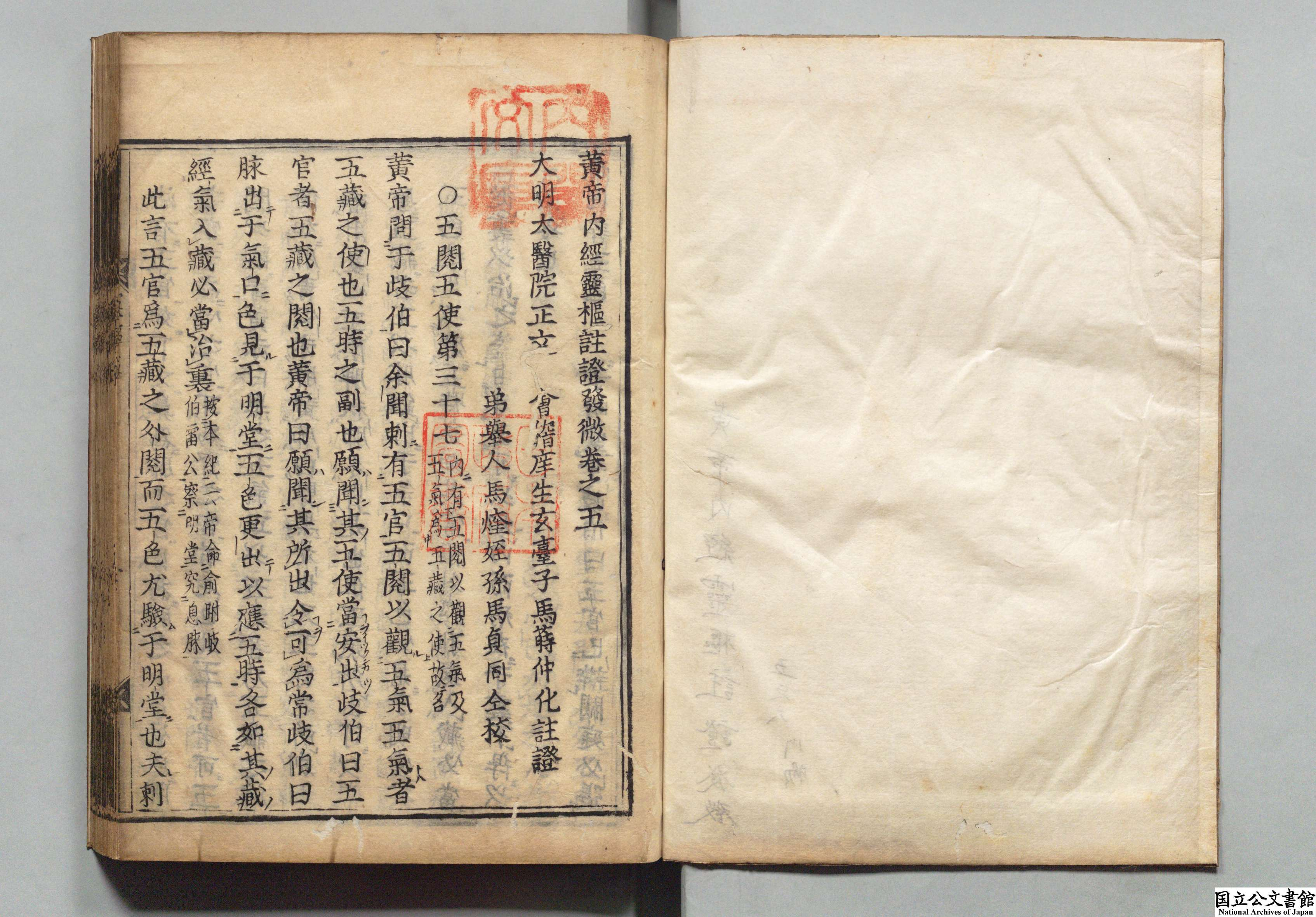 古籍数字化 黄帝内经灵枢注证发微 全9卷 明·马莳撰 日本宽永05年 (1628年) 刻本 昌平坂学问所旧藏 日本内阁文库数字化 PDF 下载