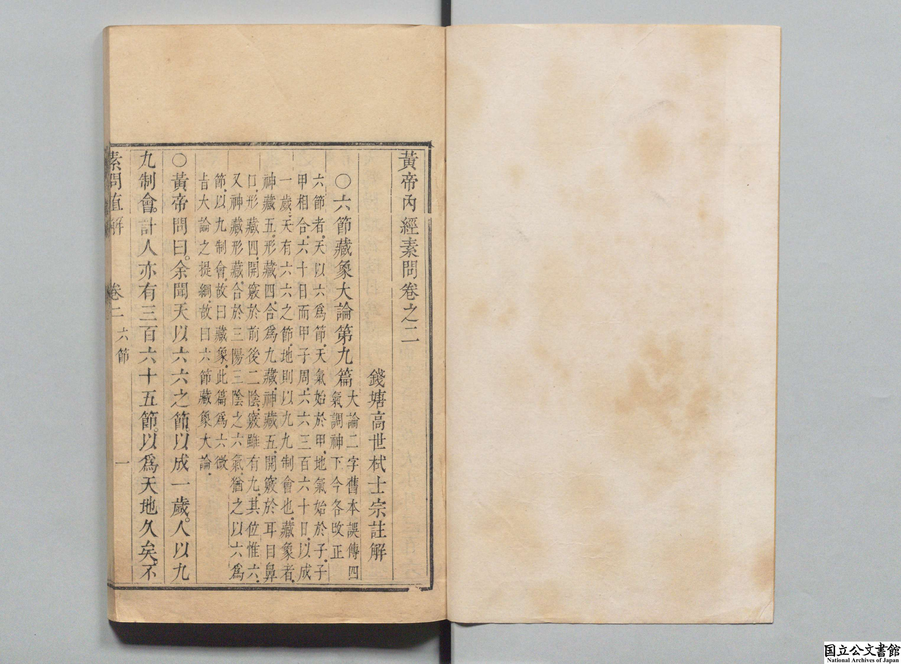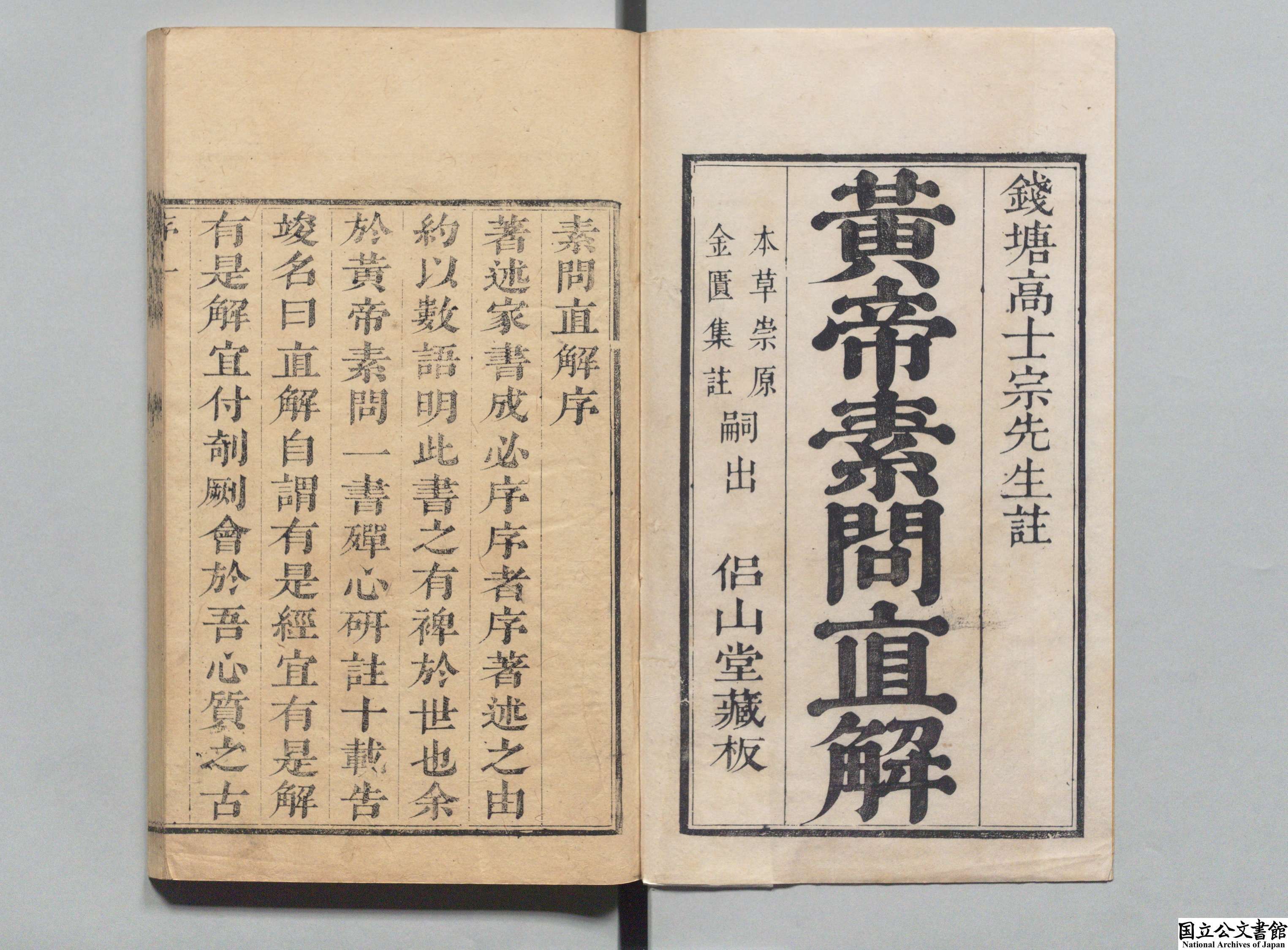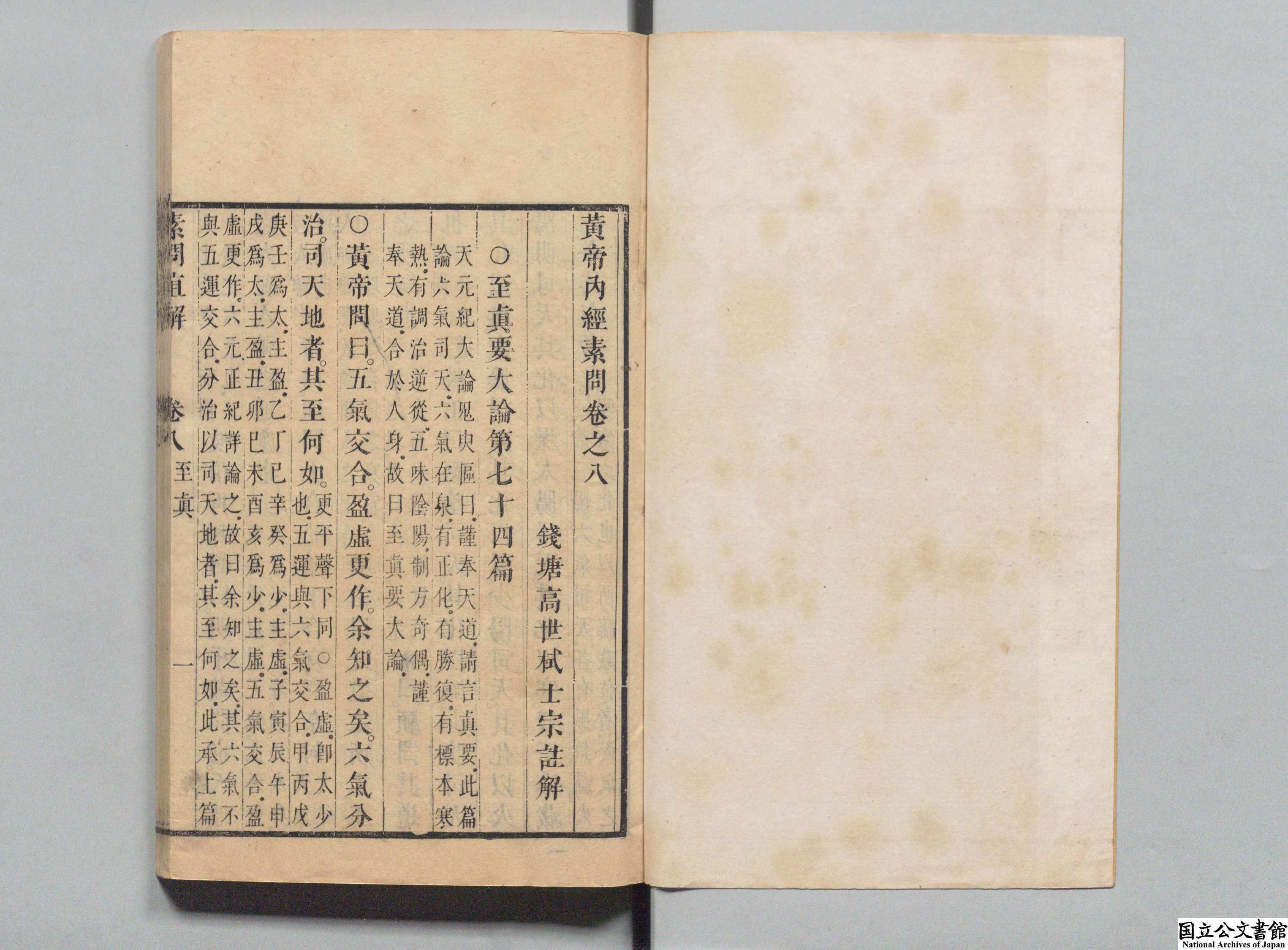 黄帝内经素问直解 全9卷 清·高世栻著 清康熙34年 (1695年) 初刻本 红叶山文库旧藏 日本内阁文库数字化