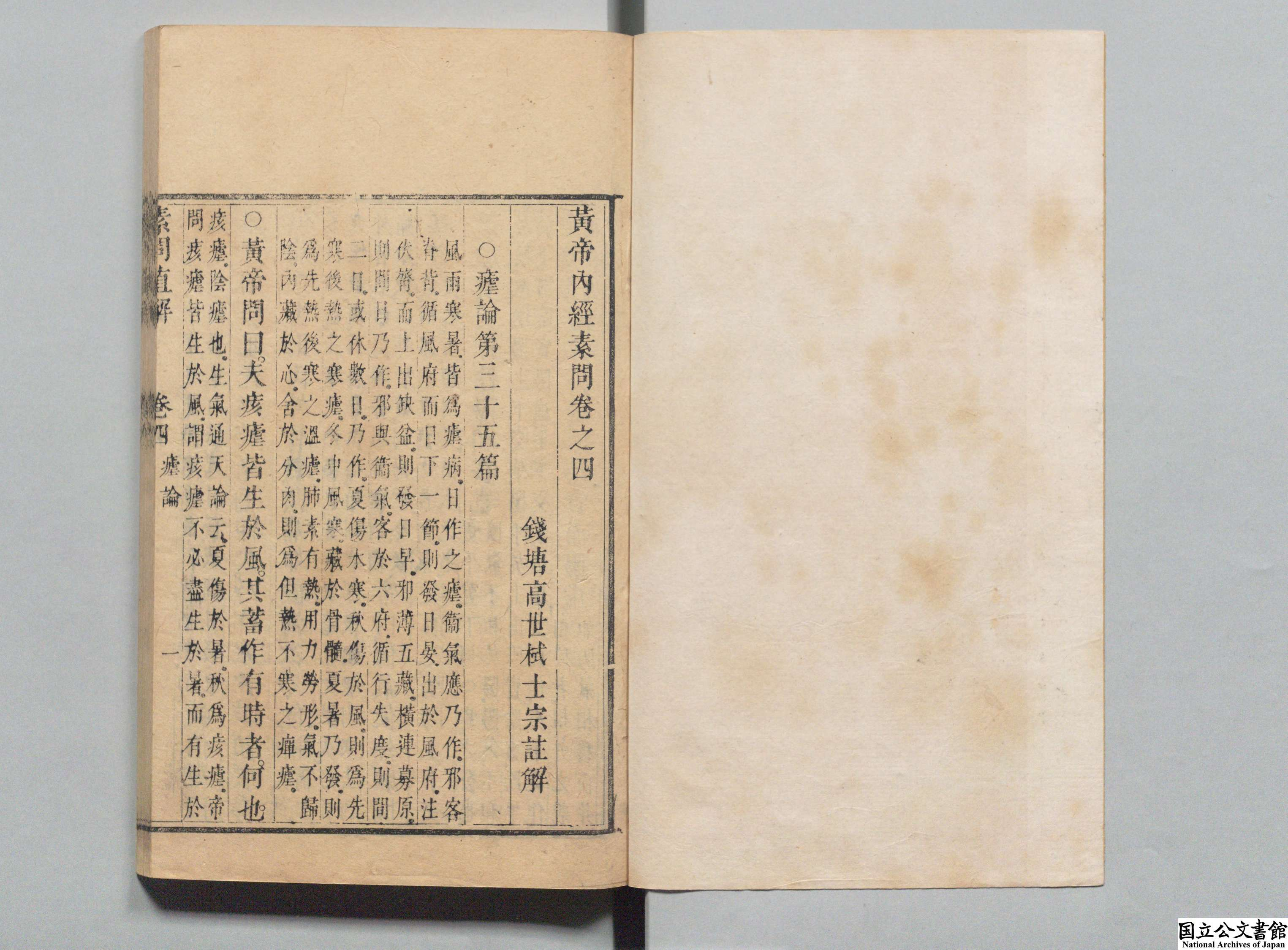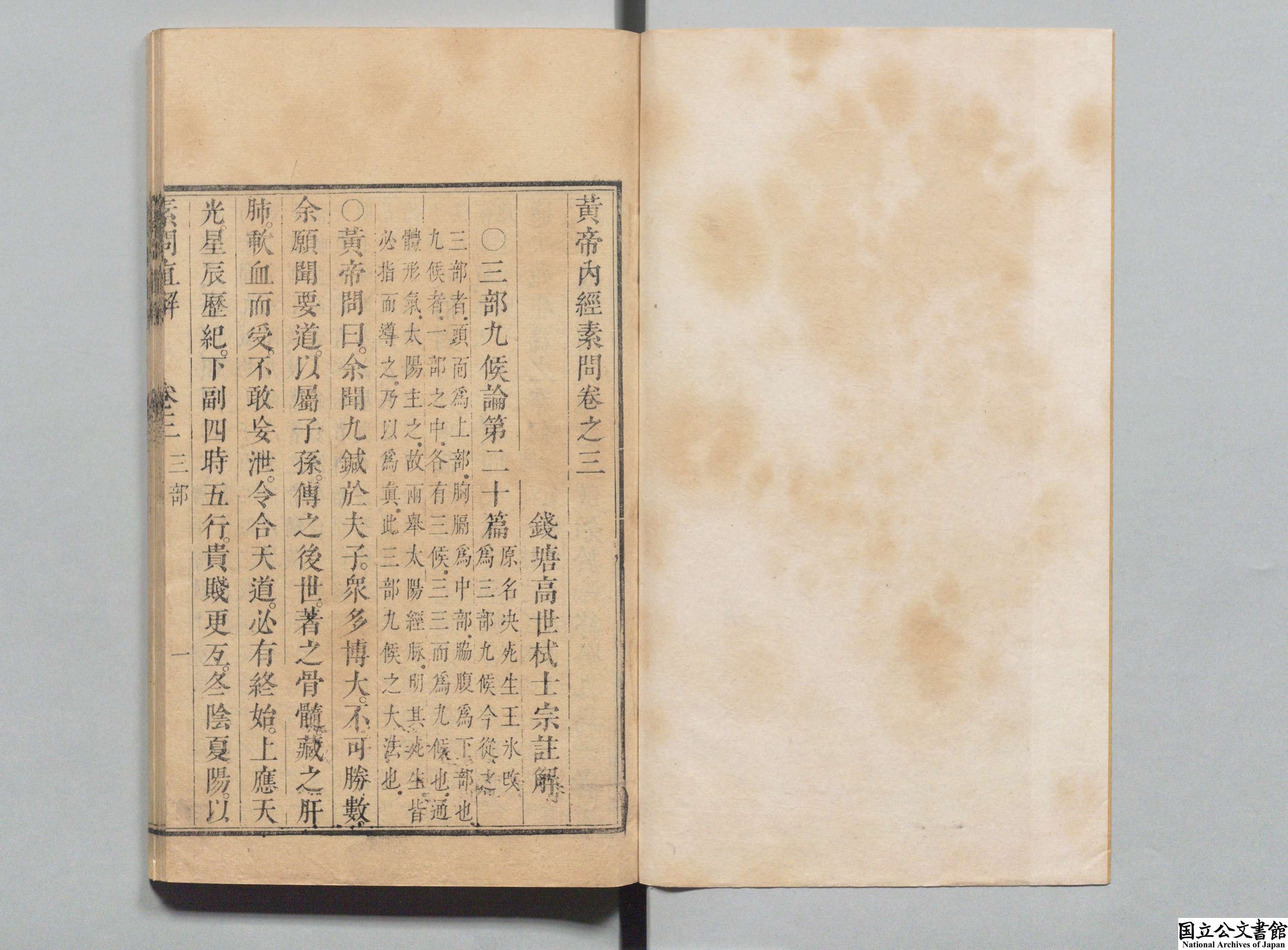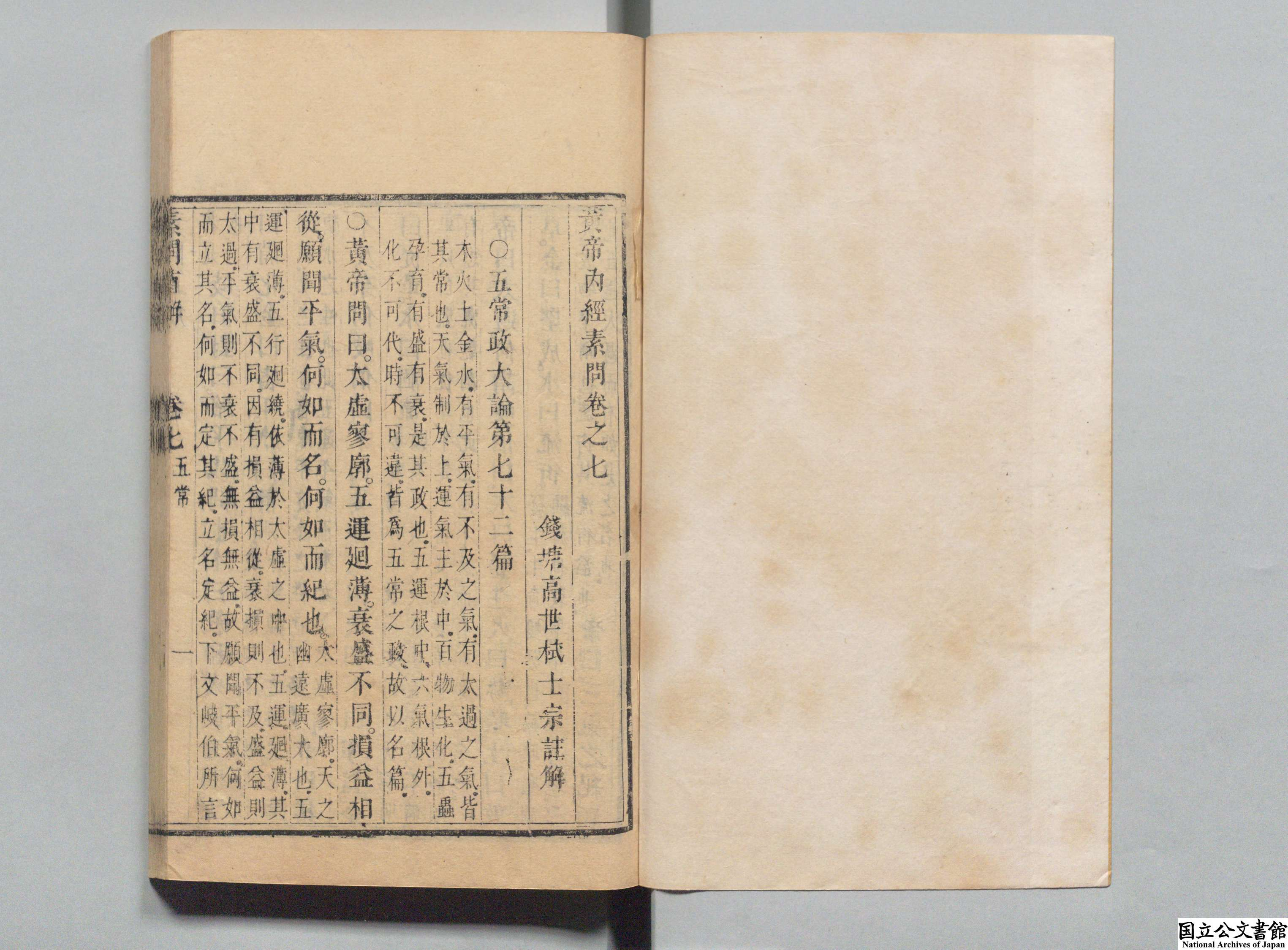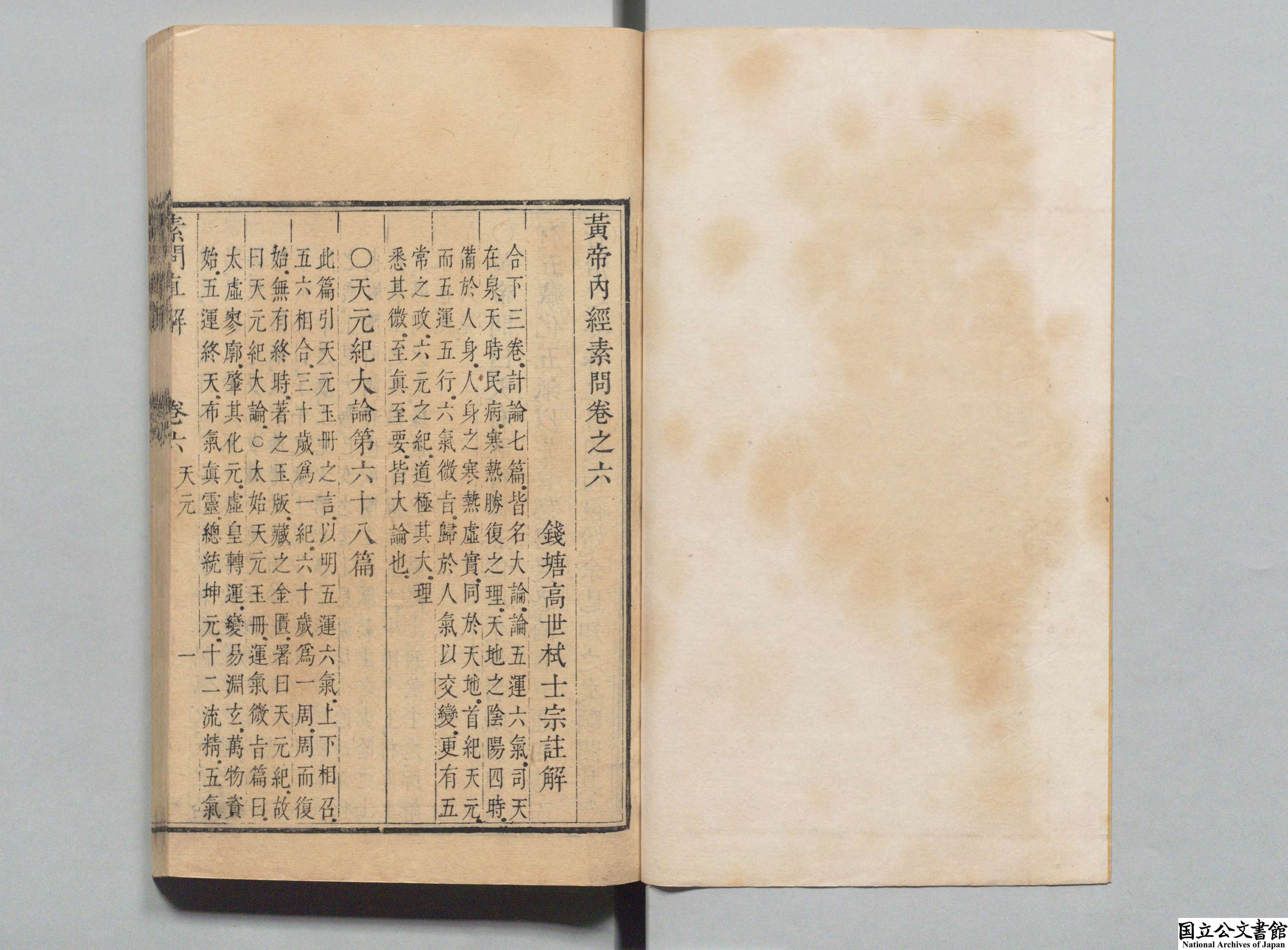 黄帝内经素问直解 全9卷 清·高世栻著 清康熙34年 (1695年) 初刻本 红叶山文库旧藏 日本内阁文库数字化