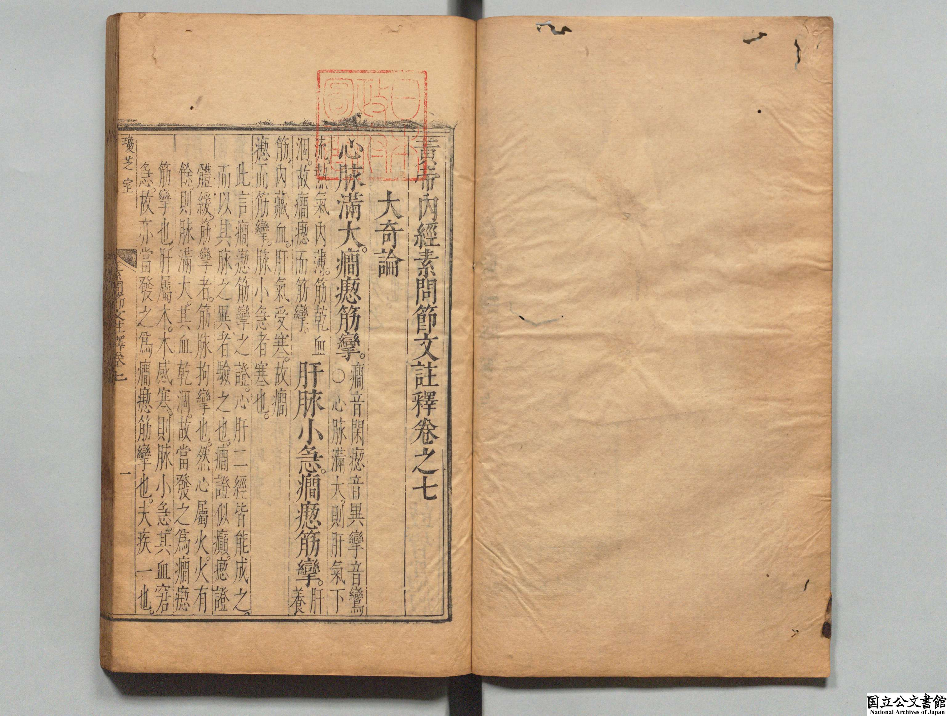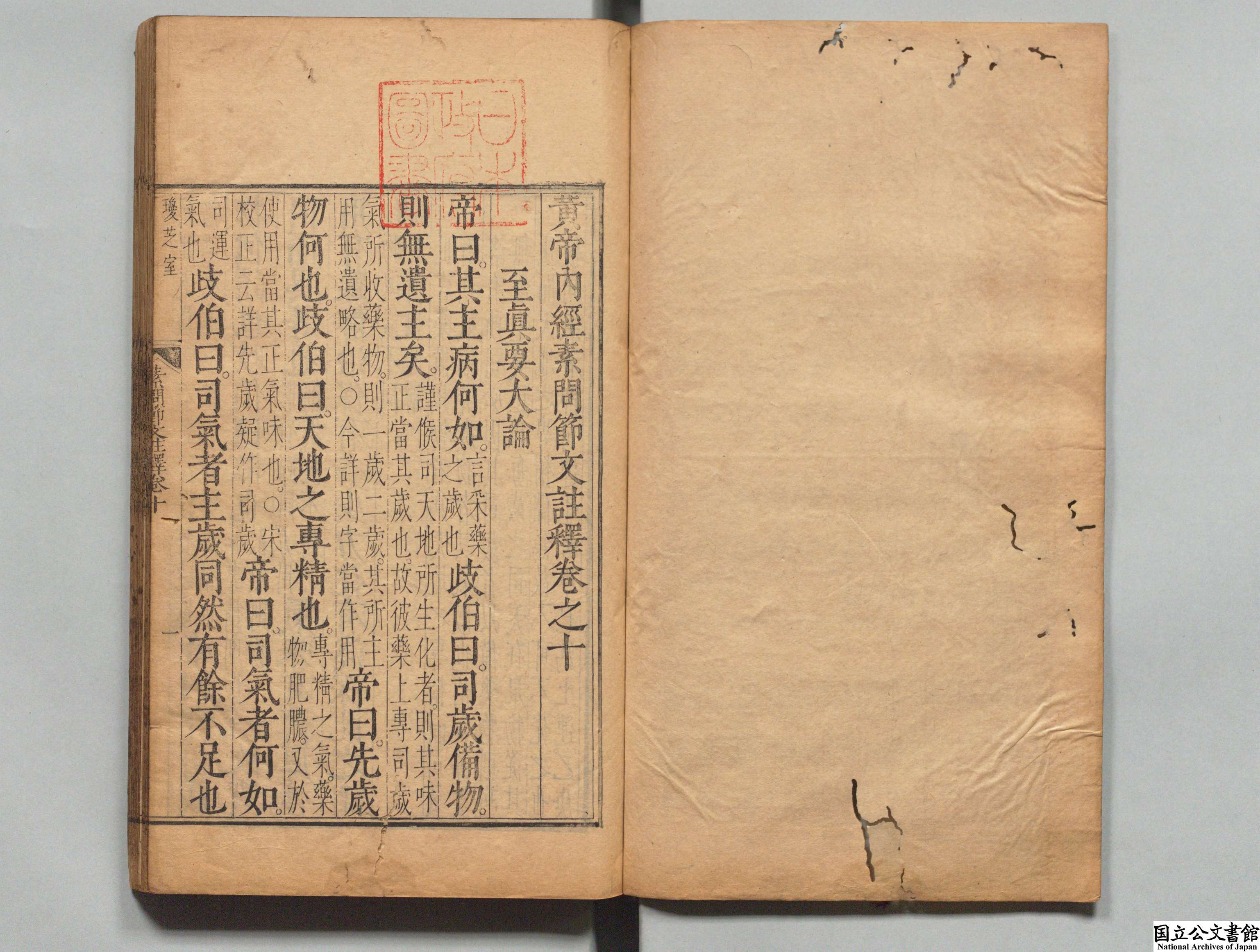 黄帝内经素问节文注释 全10卷 明·素俅撰 明万历47年 (1619年) 琼芝室初刻本 昌平坂学问所旧藏 日本内阁文库数字化