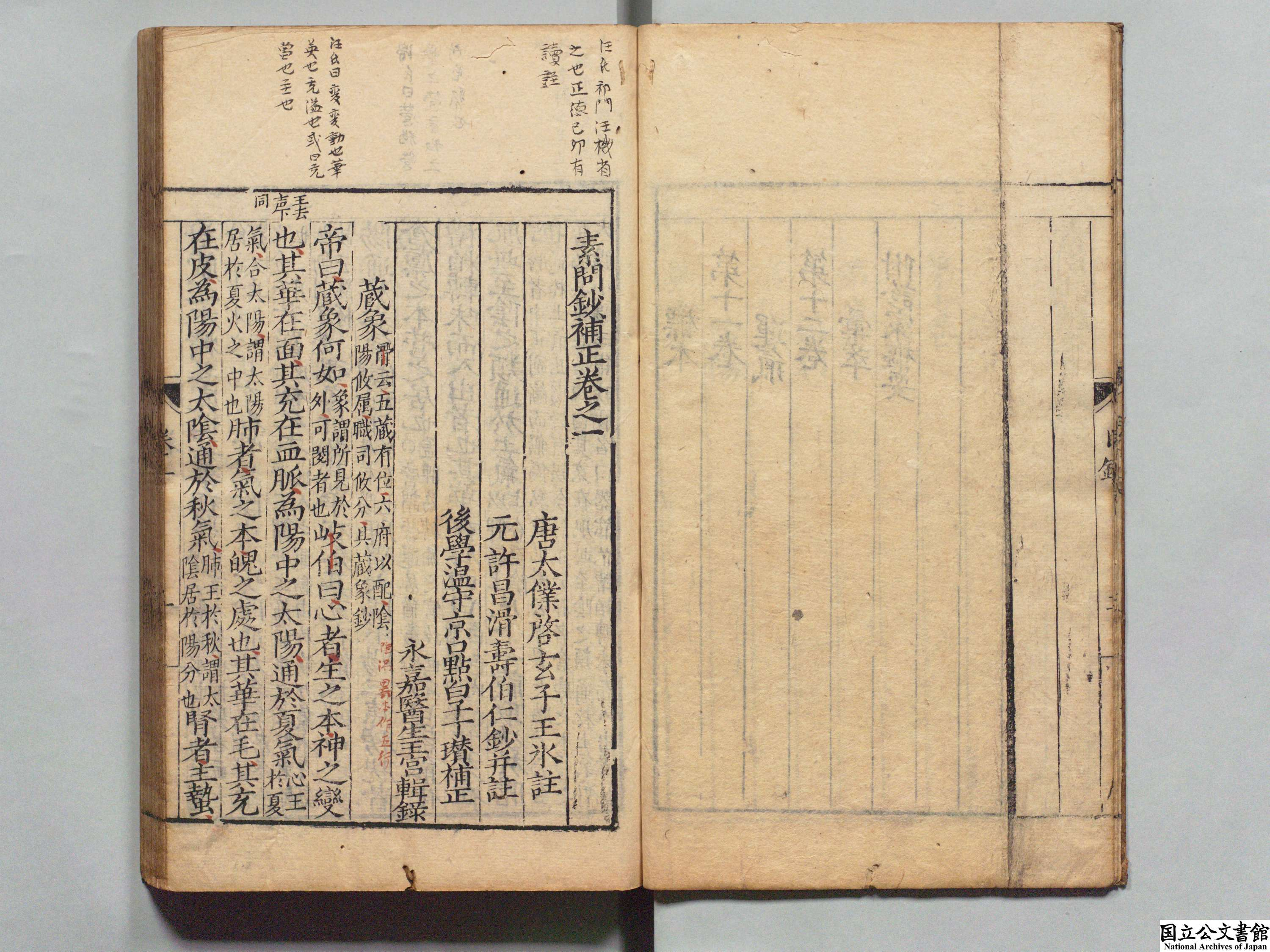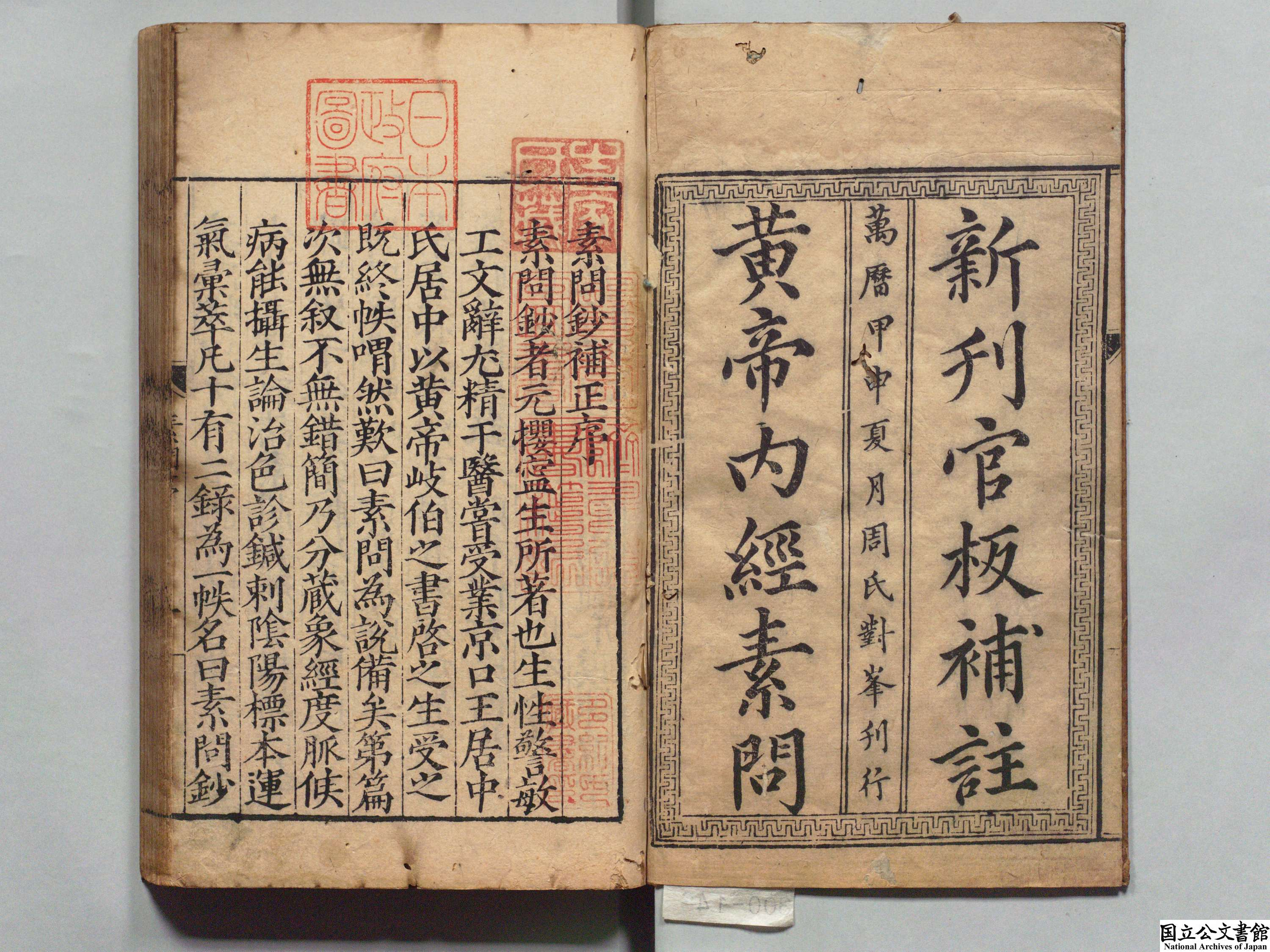 素问钞补正 全11卷 元·滑寿注释 明·丁瓒补正 明·王宫编 明万历12年 (1584年) 周对峰刊本 江户医学馆旧藏 吉田意庵旧藏 日本内阁文库数字化