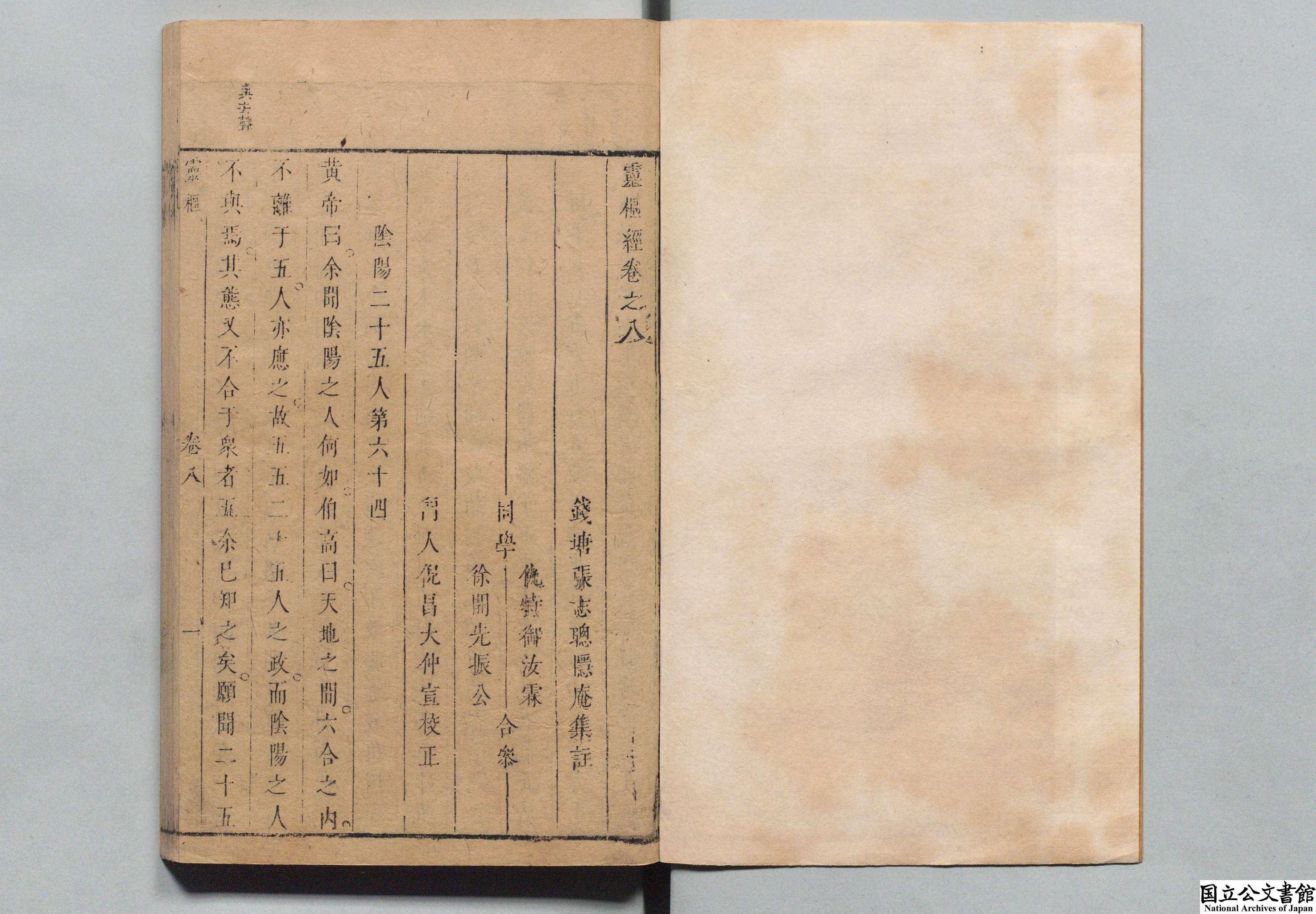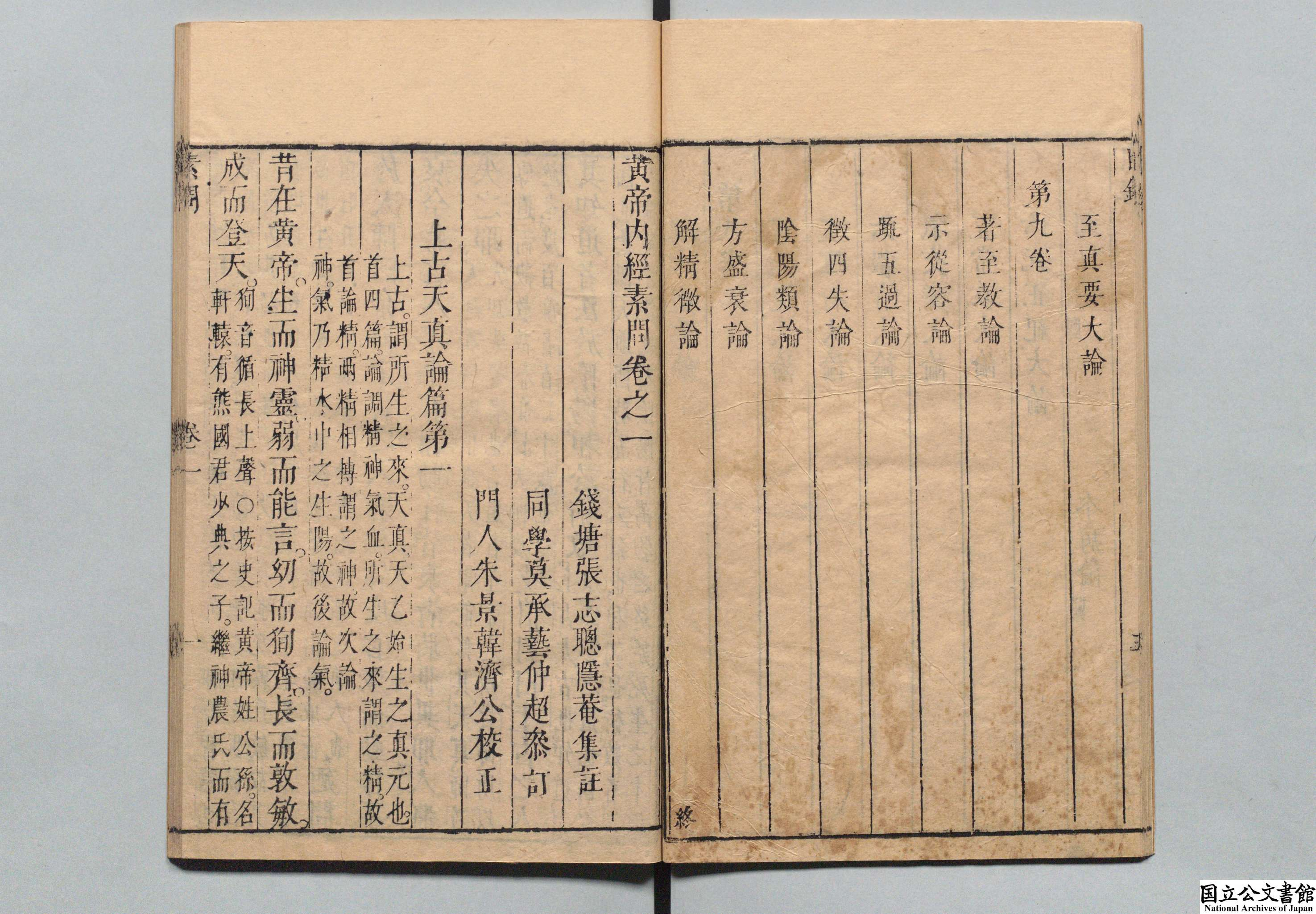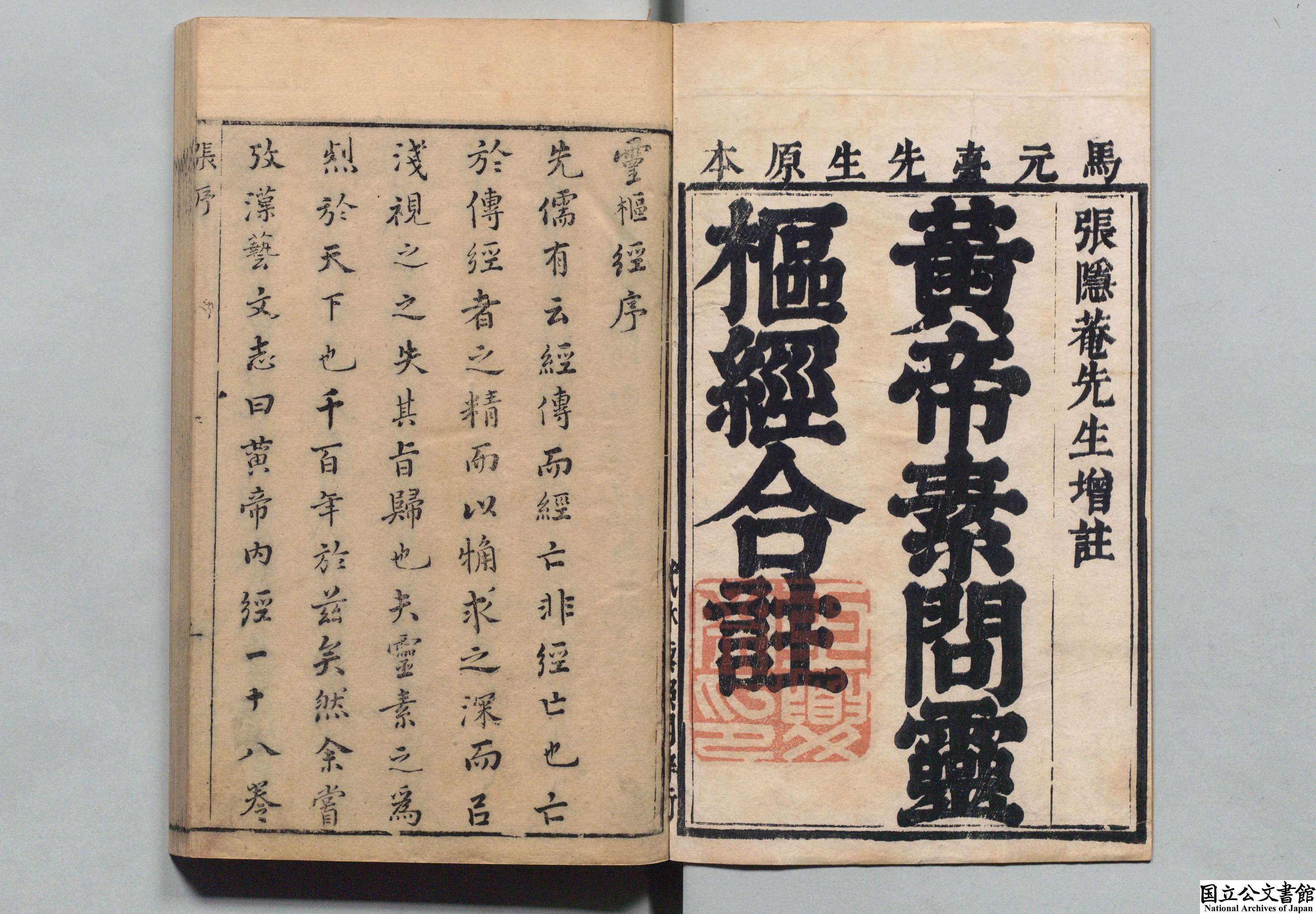 黄帝内经素问灵枢合注(黄帝内经素问集注、黄帝内经灵枢集注) 全18卷 清·张志聪著 清康熙11年 (1672年) 初刻本 红叶山文库旧藏 日本内阁文库数字化