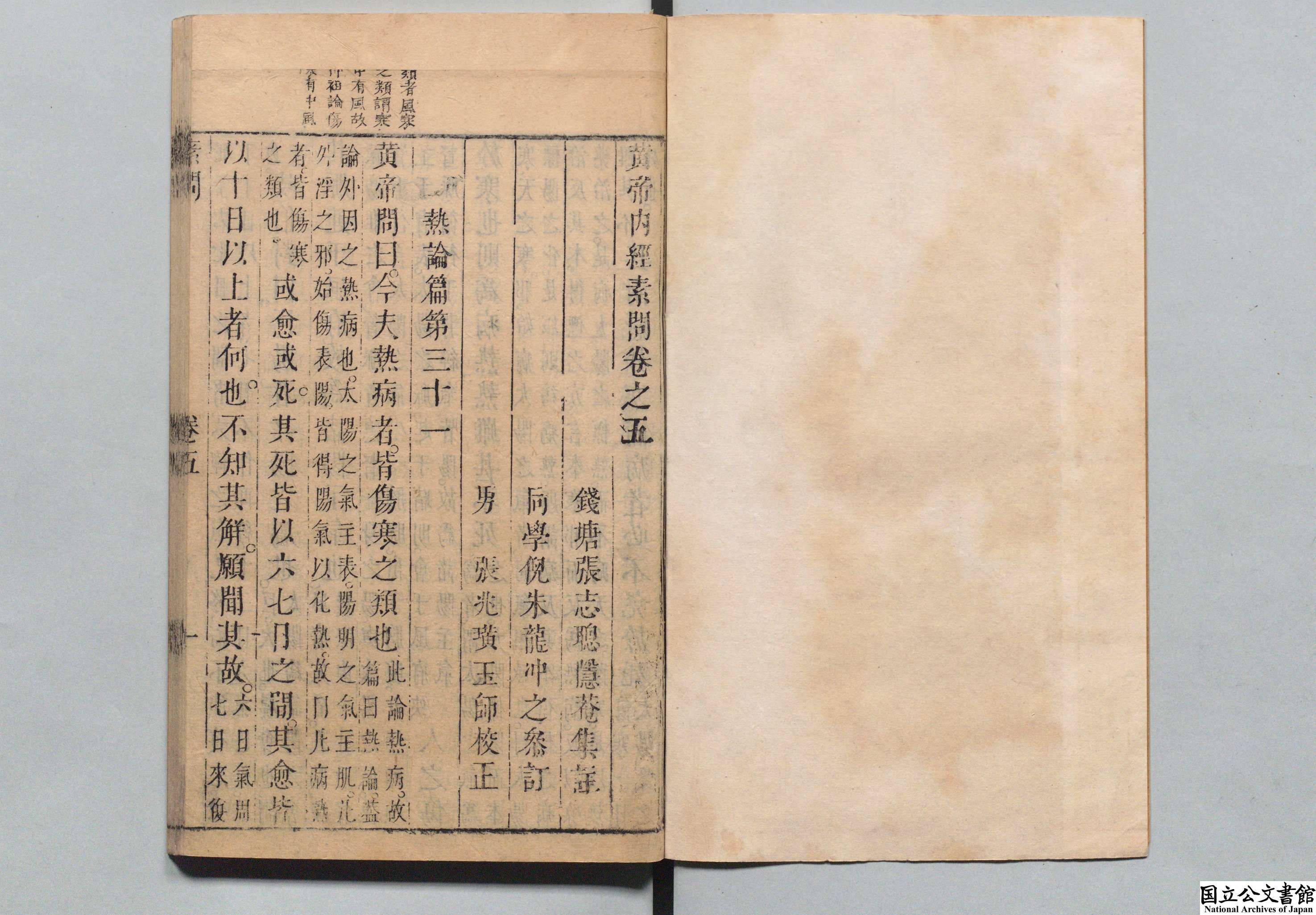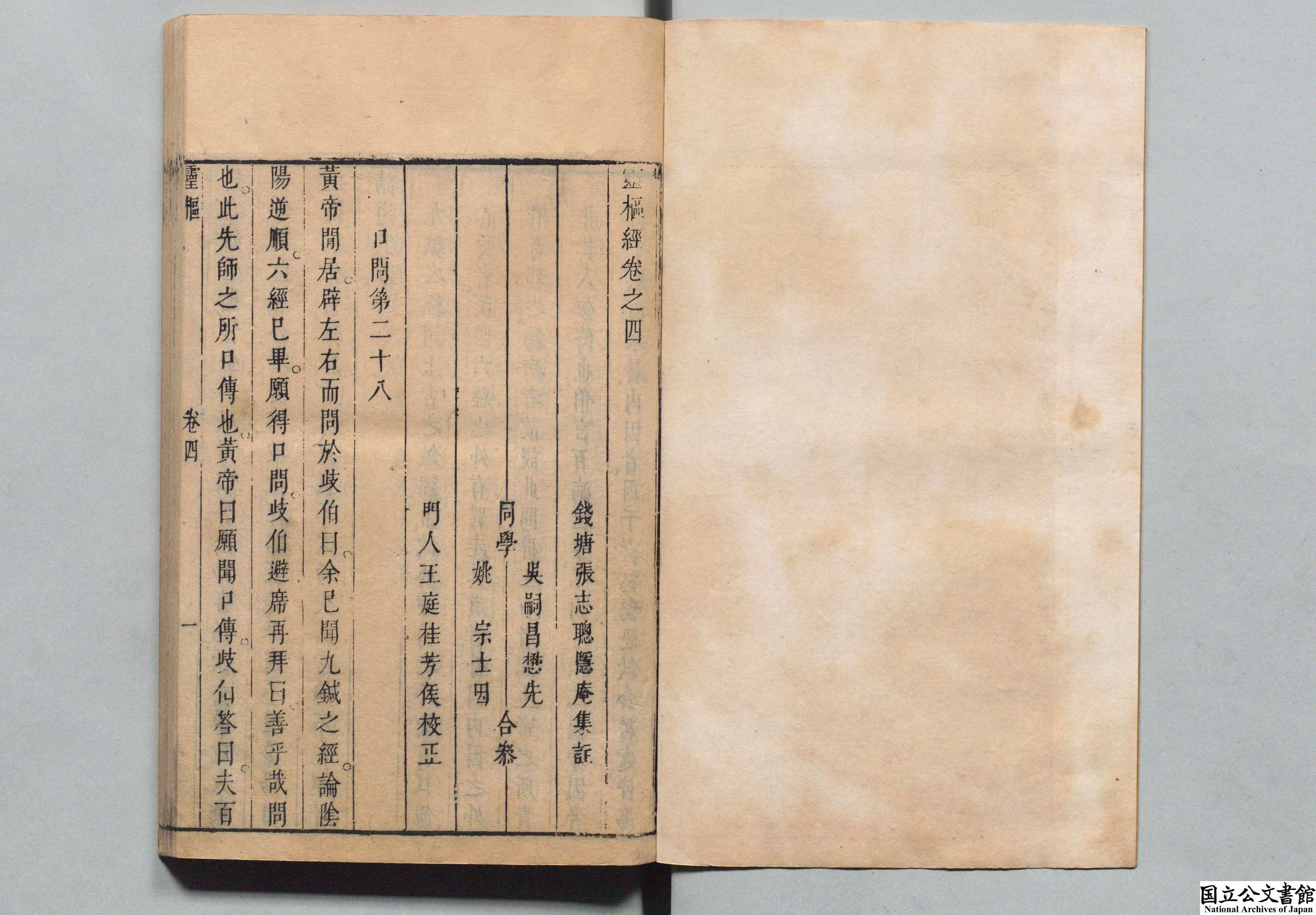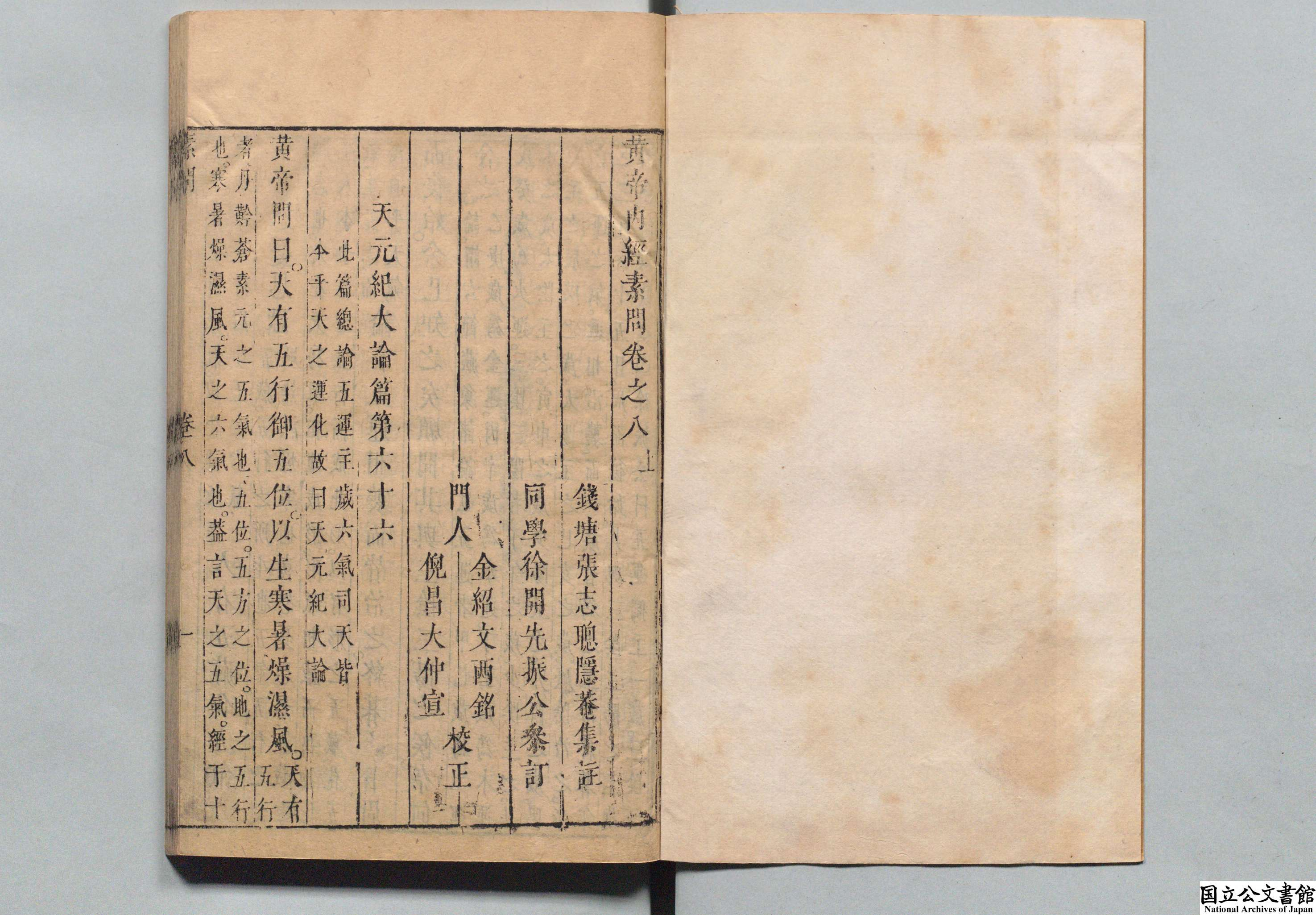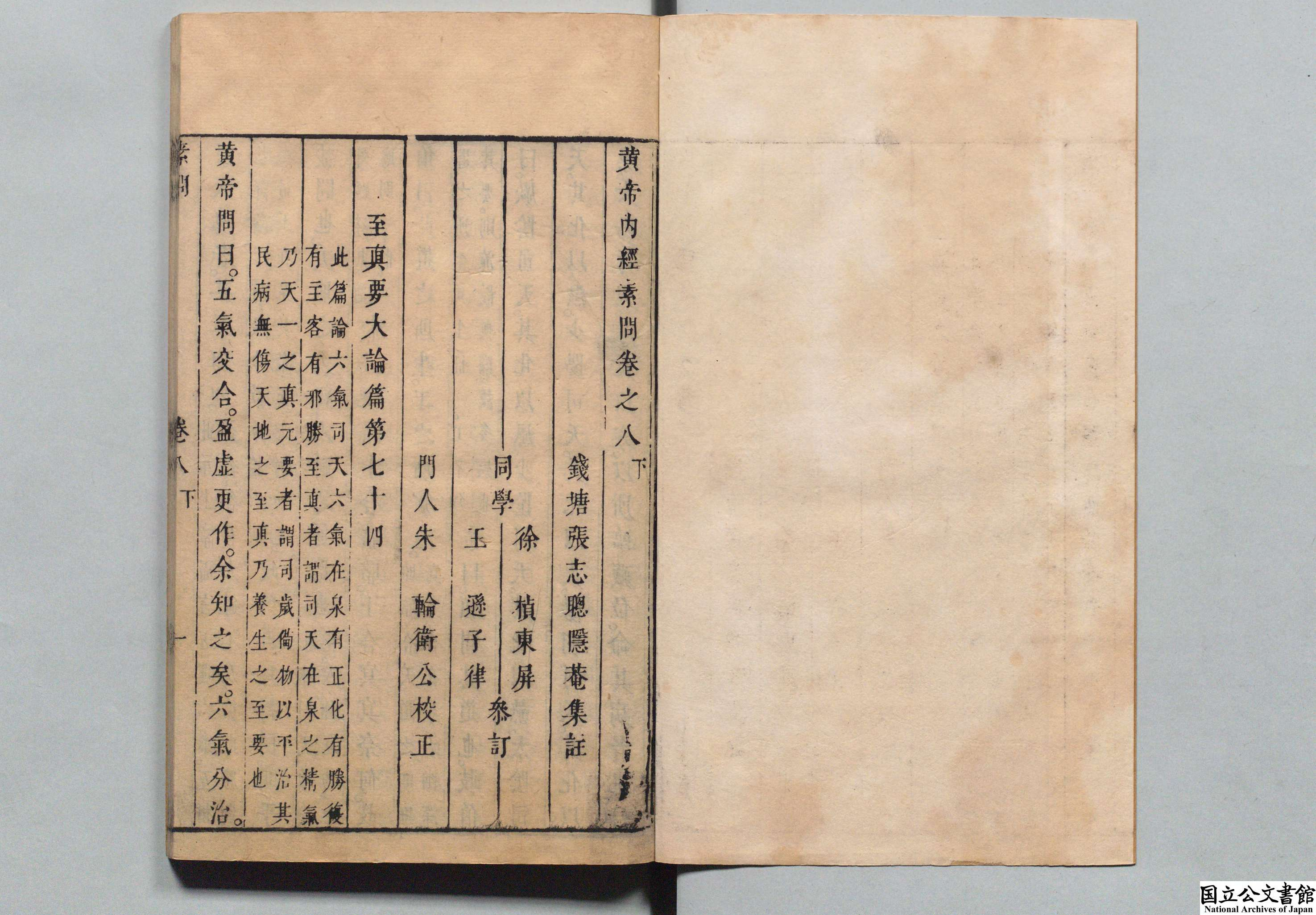 黄帝内经素问灵枢合注(黄帝内经素问集注、黄帝内经灵枢集注) 全18卷 清·张志聪著 清康熙11年 (1672年) 初刻本 红叶山文库旧藏 日本内阁文库数字化