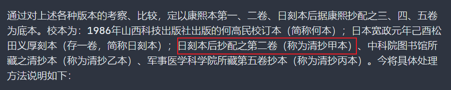 刻本和抄本有很多方药,使用的剂量都不一样,这些地方如果有差异的话,最好还是需要提供脚注的,否则影响很大。