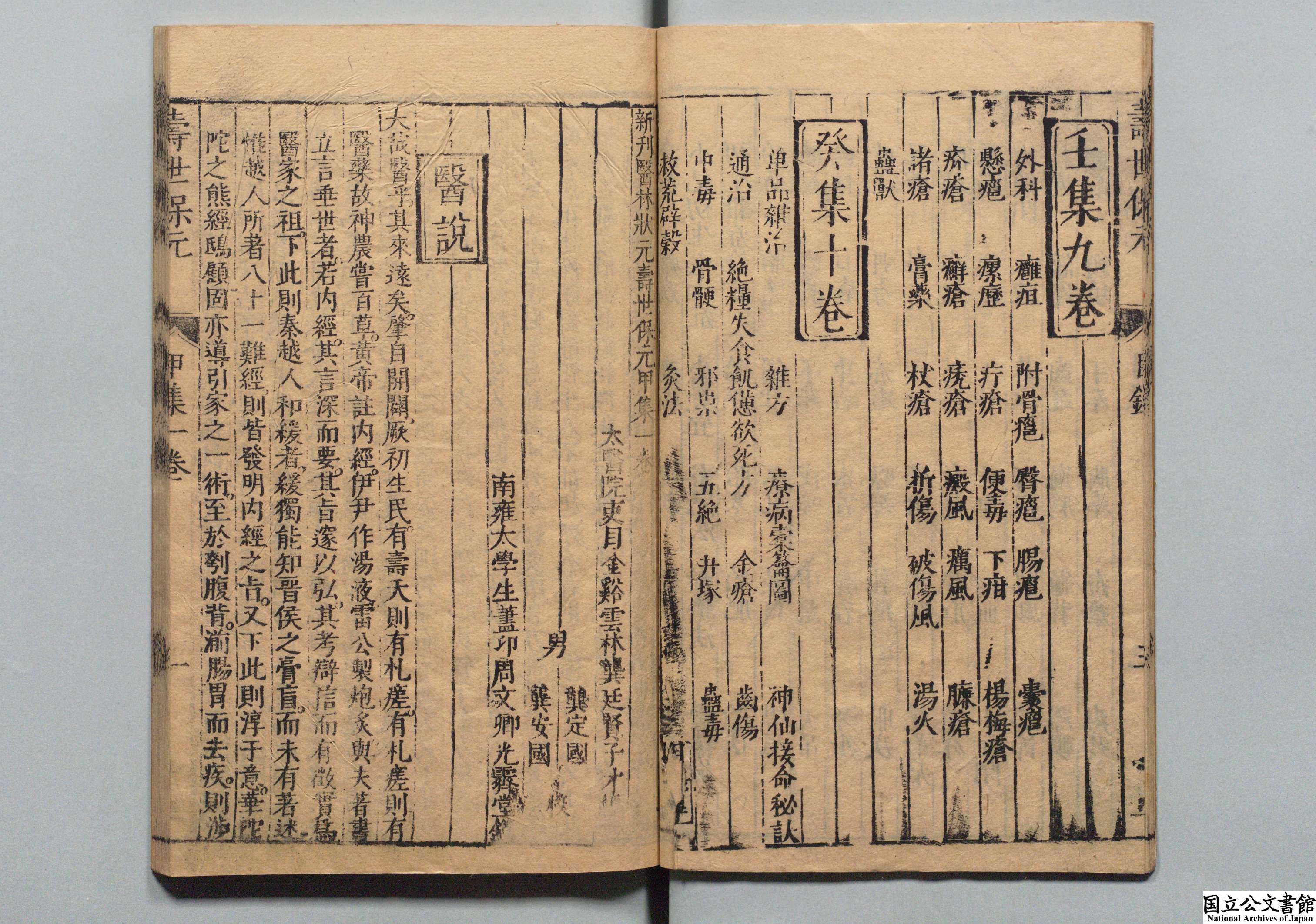 新刊医林状元寿世保元 全10卷 明·龚廷贤编撰 明大业堂刻本 红叶山文库旧藏 日本内阁文库数字化