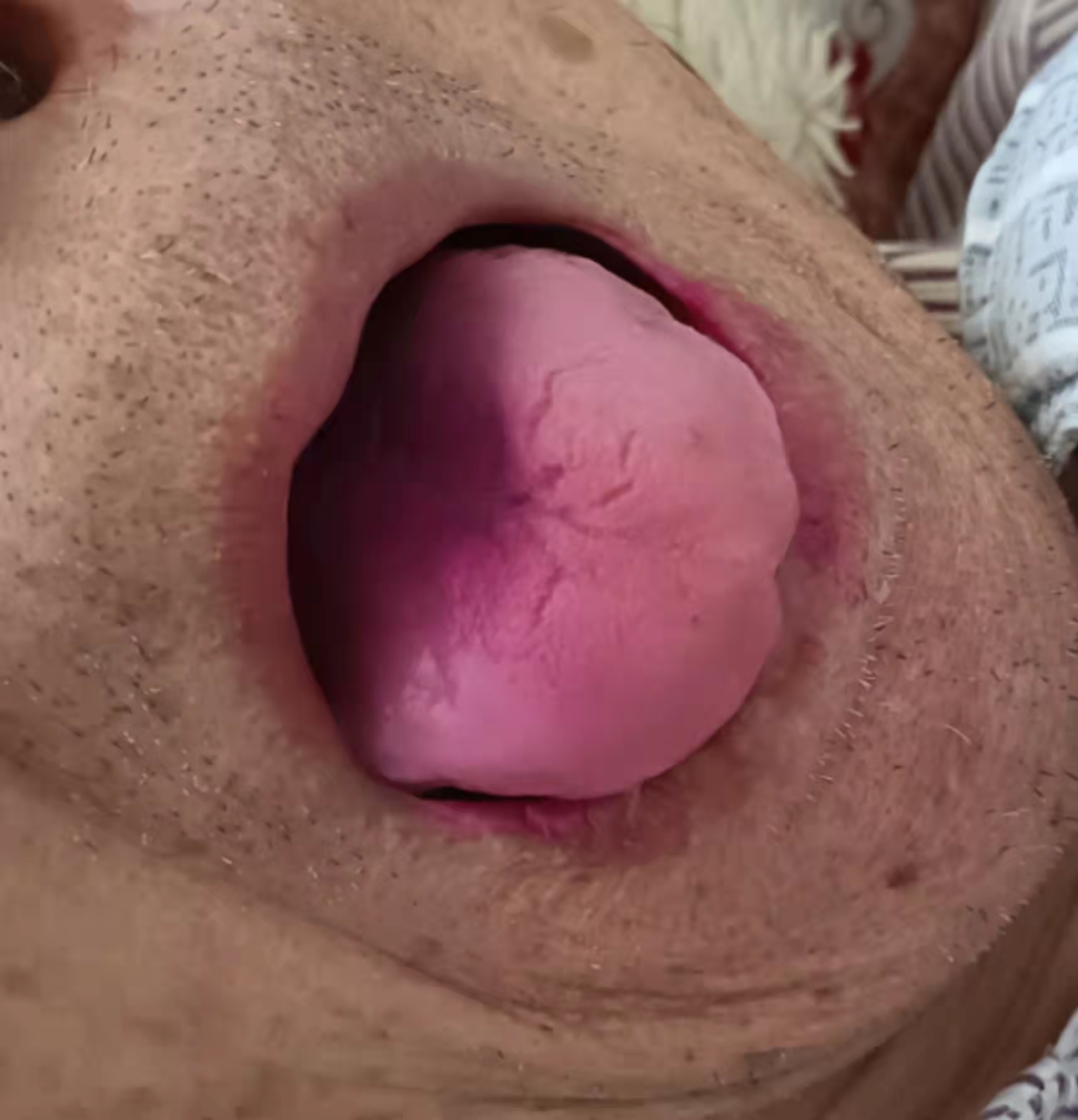 整个人看上去像是很干的感觉,嘴唇很干,皮肤没光泽,人也瘦了很多。人很焦躁。另外,解开他衣服,有看到父亲胸口的皮肤上感觉有一点一点的血癍。