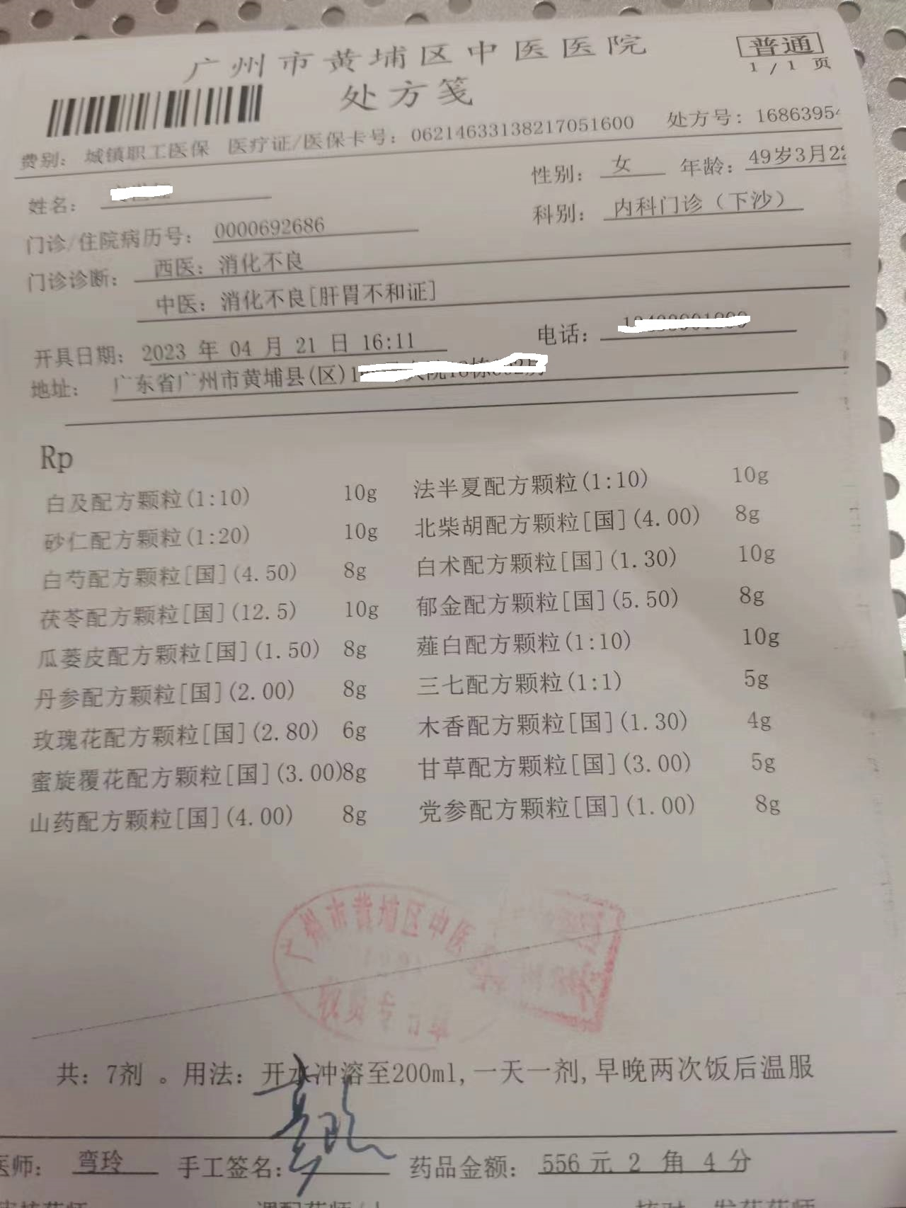 我看这位中医第二次加了党参和淮山去了佛手,第三次问我打不打隔我说不打了她又去掉了旋覆花把白术又加量了,她的治疗方向是没问题的吧!