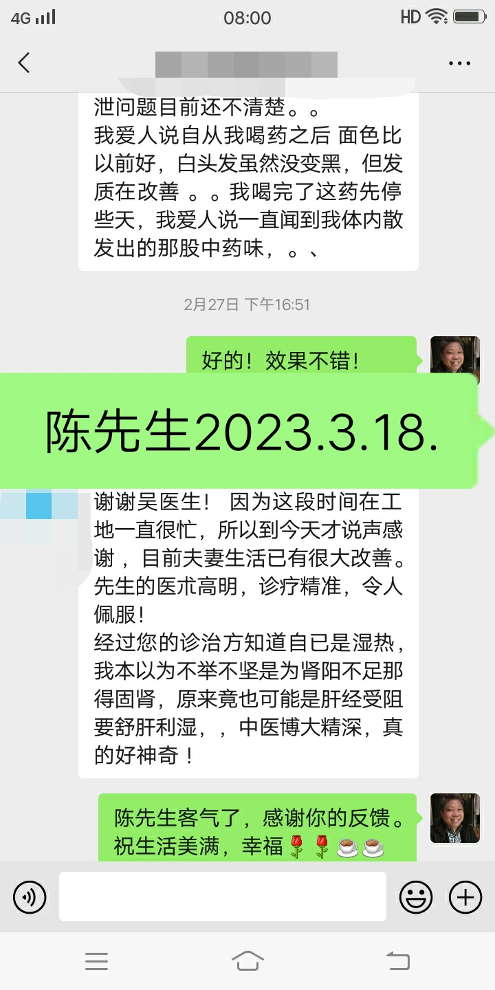 2023.3.18.反馈:谢谢吴医生! 因为这段时间在工地一直很忙,所以到今天才说声感谢 ,目前夫妻生活已有很大改善。