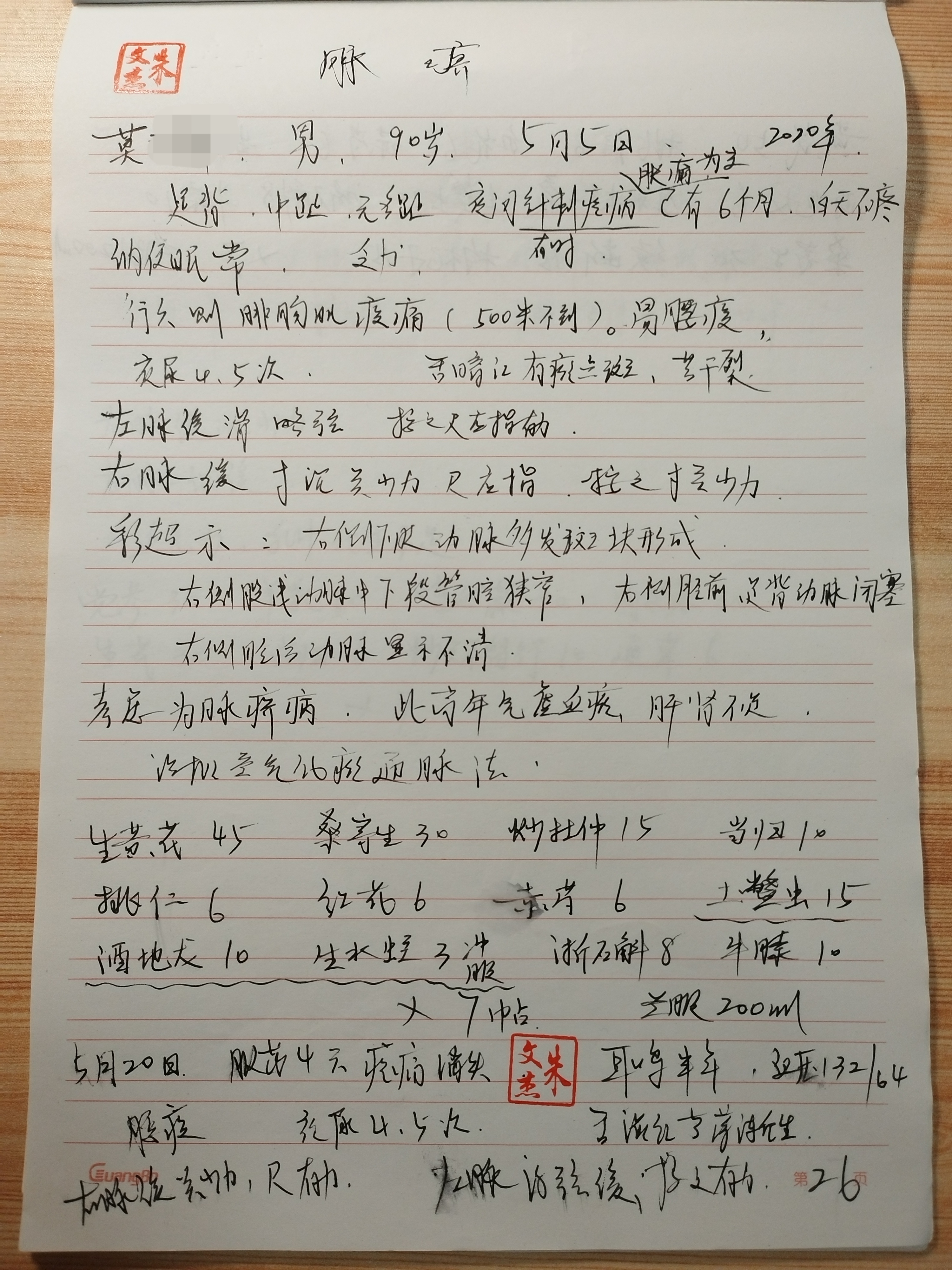 中医的脉痹,包括足背动脉闭塞等疾病。三方化裁,益气化瘀通脉法,近期效果满意。