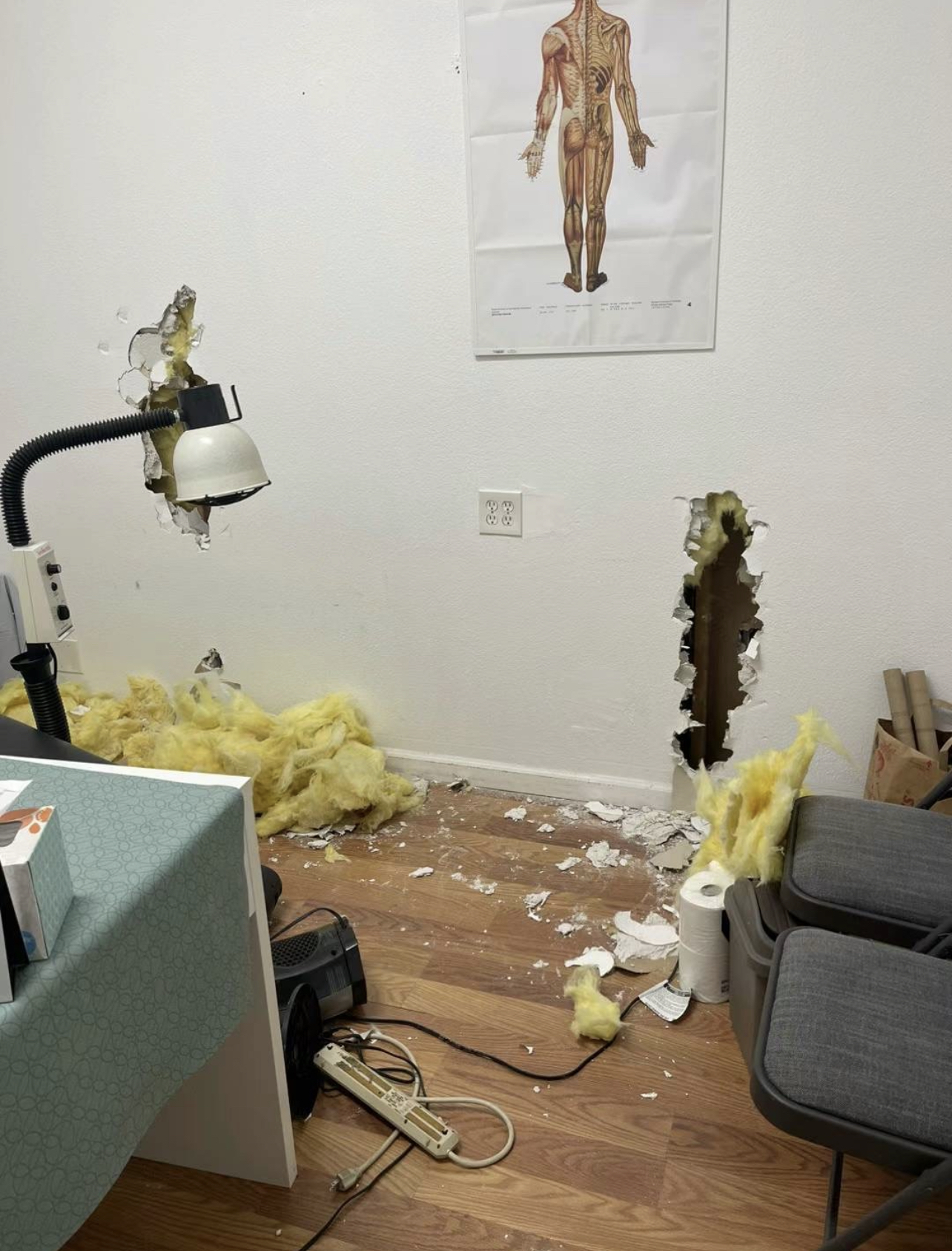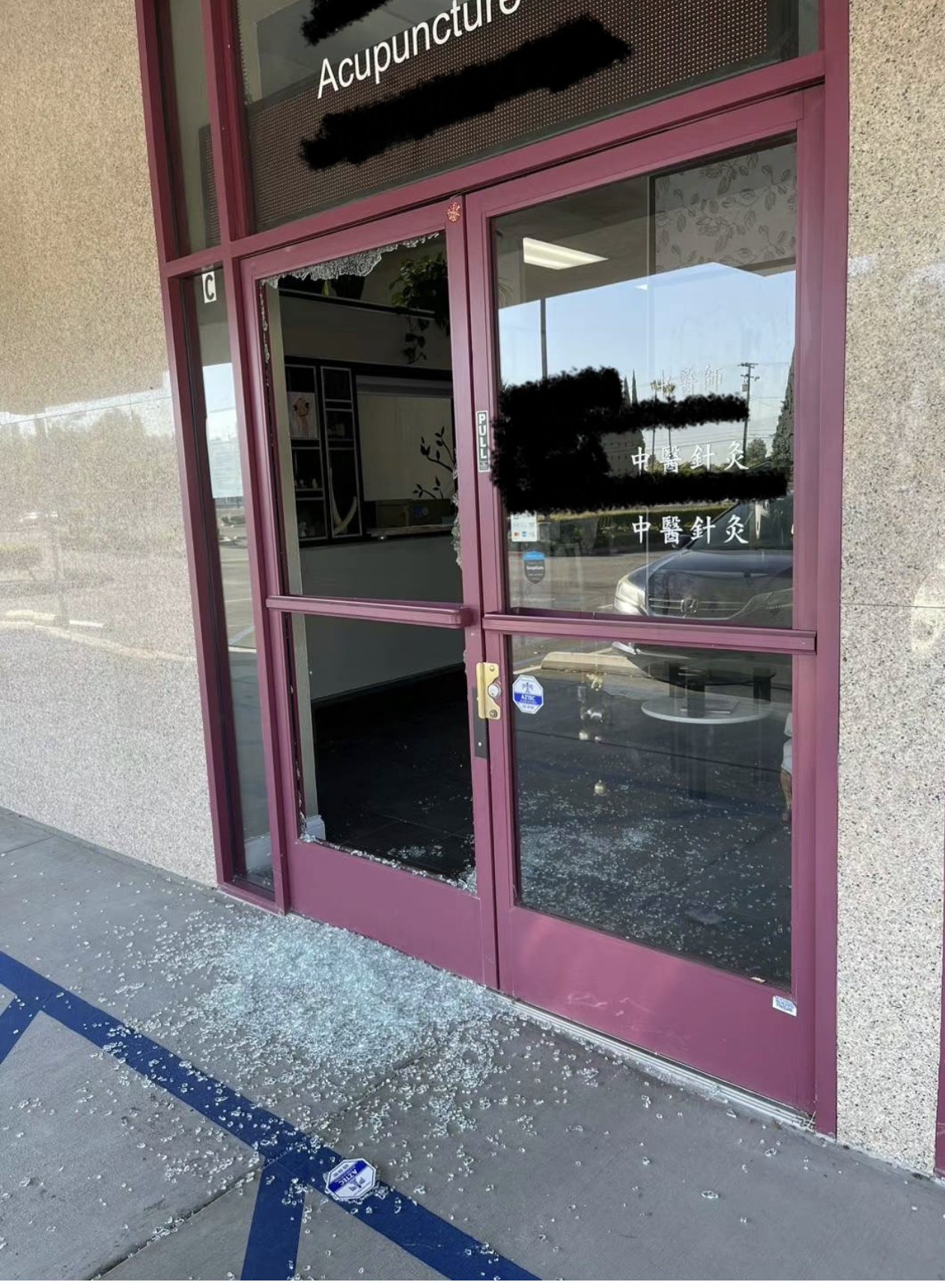 第二件事情是我一个中医朋友寄了几张照片给我 (看图)。是他在朋友圈里面看到的,这件事情就是上个礼拜发生的,照片中各位可以看到在洛杉矶华人区的一间中医诊所被人打碎玻璃,歹徒入室窃盗了,目前不晓得偷了什么值钱的东西,这苦主中医师没说,一般来讲,此地的中医诊所很少被人入室窃盗,因为店裡没什么现金啊,比珓值钱的东西大概就是一些药草吧,但是歹徒会为了这么区区几千块钱的药草来窃盗吗?而且歹徒认识中草药吗?似乎也不太可能,不过令人好奇的是这诊所的墙被打了好几个洞,看来不像是随便打的洞,不知道歹徒为什么要在墙上打洞啊?