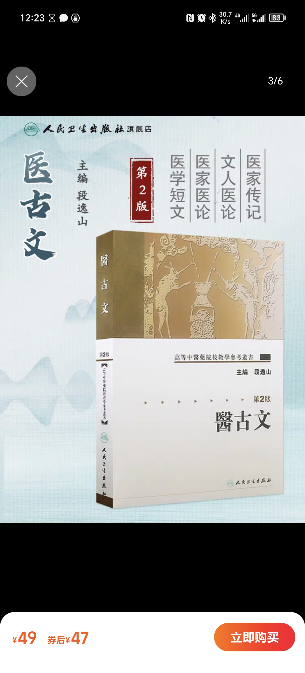 嗯,谢谢,买医古文是想拓展一下知识面,增加一下阅读古文的能力。买的这个《中医基础理论》要得不?
