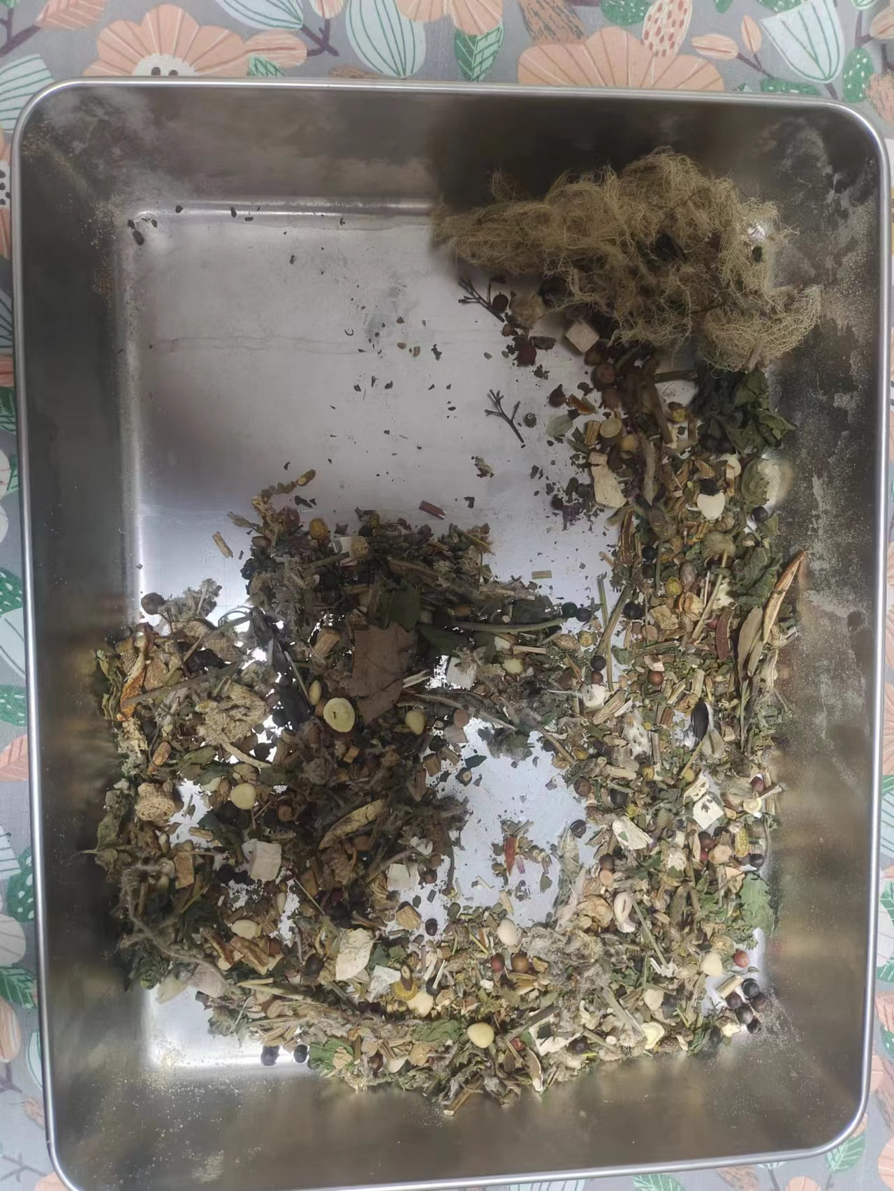 梦回杏林 闻名全坛 核心会员 注册 2013/11/15 帖子 18906 获得点赞 12041 声望 113 所在地 2023/09/07 #5 感觉好像有这几种药材: 一、带壳苡仁(或草珠子)??? 二、芦苇茎 三、竹茹 四、白术(或木香) 五、甘草 六、茯苓 七、党参(或银柴胡) 八、桃仁 九、陈皮 十、紫苏 十一、桑叶 十二、苍耳子(有肾毒)